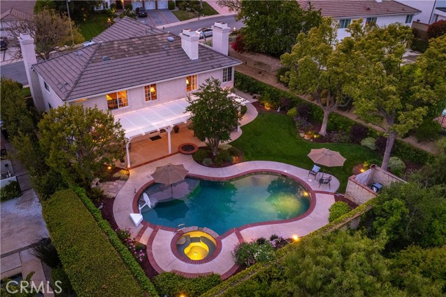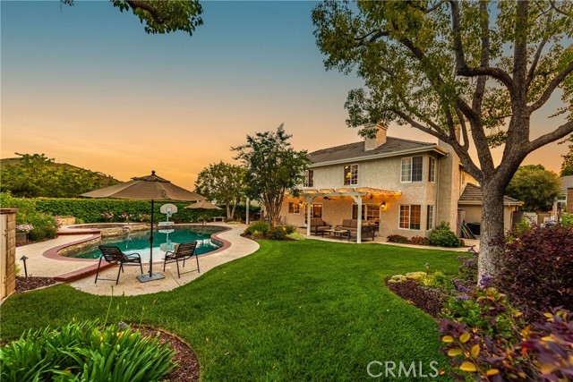 Welcome to this exceptional estate located in the prestigious Morrison Sutton Valley. Blending traditional elegance with modern upgrades, this exquisite 4-bedroom, 4-bathroom estate offers approximately 3,544 sqft of beautifully curated living space on a ¼-acre private lot with mountain views. Walk through a grand double-door entry into a soaring foyer with a dramatic curved staircase and rich wood flooring that sets the tone for refined living. The formal living room is a statement in itself, featuring vaulted ceilings, a beautiful fireplace, arched windows that bathe the space in natural light, and a seamless flow into the spacious dining area framed by a custom archway. The heart of the home is the beautifully remodeled chef s kitchen which features a massive center island, crisp quartz countertops, white custom cabinetry, designer pendant lighting, and top-tier Wolf and Sub-Zero appliances. An adjacent breakfast area and open-concept family room with built-ins, crown molding, and a cozy fireplace offer effortless comfort and style. Upstairs, discover a light-filled loft with built-in cabinetry perfect as a home office, library, or music room. The luxurious primary suite is a calming retreat with vaulted ceilings, large windows showcasing scenic views, and a double sided, marble-surround fireplace. The ensuite bath is tastefully appointed with dual sinks, marble flooring, custom cabinetry, a luxurious jetted tub and a walk-in shower. Each of the secondary bedrooms is spacious and versatile, while additional bathrooms have been tastefully updated with rich custom vanities, stone countertops, and upscale fixtures. Additional upgrades include: Marvin wood clad windows & doors, newer HVAC systems, new roof, new pool equipment, and much more! The resort-style backyard is truly breathtaking framed by lush landscaping, blooming gardens, and full privacy. A sparkling freeform pool with a Baja shelf and elevated spa, and plenty of deck space make it perfect for sunny SoCal living. Host unforgettable gatherings under the patio cover strung with ambient caf lights, or unwind while enjoying mountain views. A manicured lawn, mature trees, a fire pit and an additional sitting area complete the outdoor experience. This stunning estate is more than just a home it's a lifestyle. With impeccable upgrades, timeless style, and a location that offers both convenience and natural beauty, this property is a rare offering in one of Oak Park s most desirable communities.Interested in this Listing?