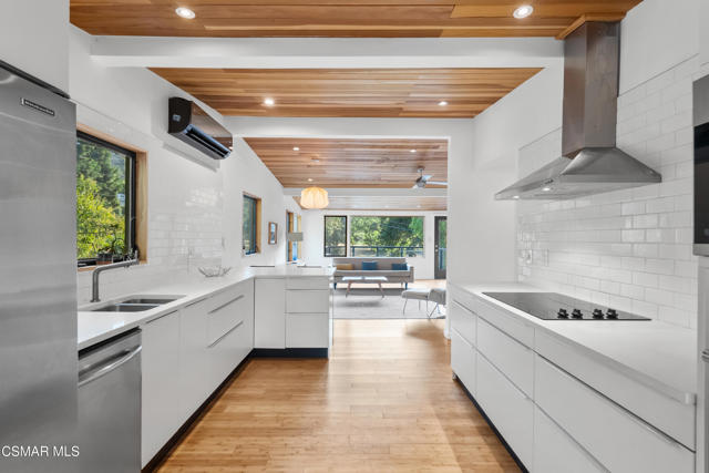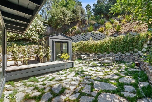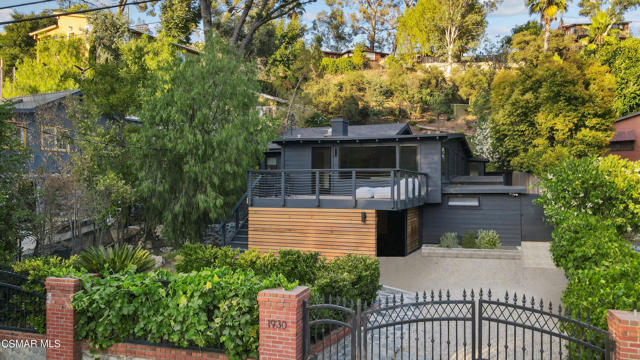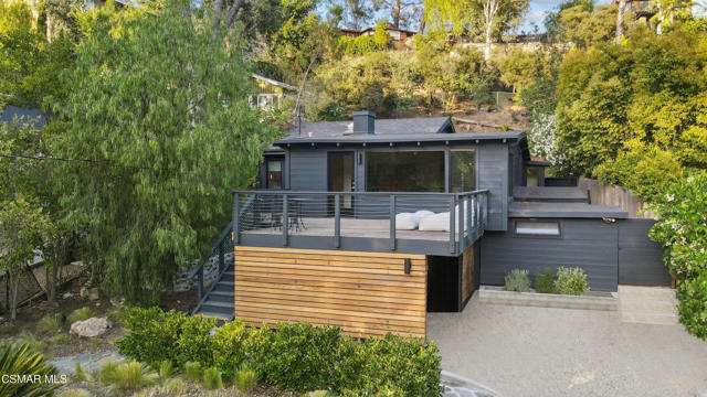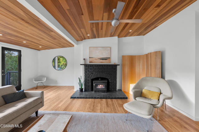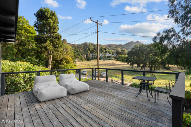 Ideally situated and privately gated near the back entrance of the breathtaking Malibu Creek State Park, this updated single-story modern country gem offers a rare blend of comfort, charm, and functionality. Nestled in the desirable Malibu Lakeside community, this home is a true sanctuary with unique features not often found in the area. Step inside to find a beautifully designed living room showcasing a central brick fireplace, warm bamboo flooring, and stunning redwood ceilings. The open layout flows seamlessly into an updated kitchen adorned with custom cabinetry, light stone-like counters, and sleek stainless steel appliances. Perfect for entertaining, the kitchen opens to both the living and dining areas, all of which lead to a spacious view deck ideal for soaking in the serene surroundings. Recessed lighting and strategically placed skylights fill the home with natural and ambient light throughout the day. The spacious primary suite offers direct access to the backyard and features a luxurious bathroom with dual vanities and an oversized soaking tub. The second bedroom also opens to the yard and includes a large loft, adding character and versatility. A second full bath includes a walk-in shower and a charming clawfoot tub. Outdoor living is maximized with decks at both the front and back of the home, perfect for enjoying the natural beauty the lake area is known for. The generous side and backyard spaces provide flat areas for pets, gardening, or future projects, while a gentle slope with peaceful sitting areas captures panoramic mountain views. A large, functional basement while not included in the official square footage offers endless possibilities as a home office, craft room, wine cellar, or study. Additional features include a gated driveway with covered parking and room for multiple vehicles, and a utility studio/office to suit your needs. Located just minutes from local beaches and conveniences, within the highly regarded Las Virgenes School District, and across from a quaint community park, this property provides not just a home, but a lifestyle. With easy access to hiking, nature, and the tranquility of Malibu Creek, this is a rare opportunity to live in one of Southern California's most coveted and scenic areas.Interested in this Listing?