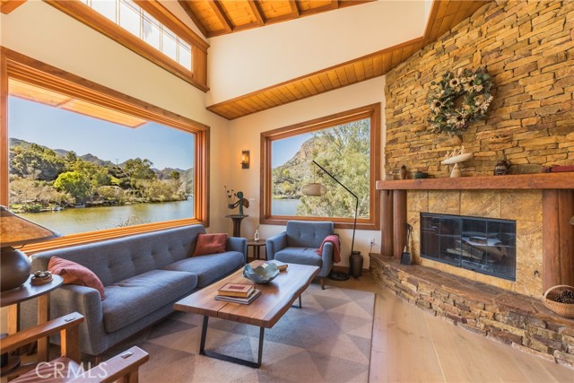Lakefront Living in Los Angeles A Rare Malibou Lake Gem Nestled in one of the most sought-after communities in Los Angeles, just minutes from Malibu and the Westside, this stunning lakefront retreat offers a lifestyle of relaxation, recreation, and timeless charm. Located along the tranquil shores of Malibou Lake, this home blends modern comfort with breathtaking views, all while embracing the warmth and nostalgia of a close-knit community that feels like a scene from sweet Mayberry living. Rebuilt with thoughtful detail in 2014, the home greets you with an amazing stone waterfall before entering into a grand open-air staircase and newly installed white oak wood floors that flow seamlessly throughout. The chef s kitchen features soaring ceilings, travertine flooring, a center island, and premium stainless-steel appliances, perfect for culinary enthusiasts. A fabulous stone fireplace anchors the living area, which flows effortlessly into the family room, separated by a stylish bar and seating area. A convenient downstairs bedroom and bath provide an inviting retreat for guests. Upstairs, the primary suite offers a spa-like escape with a concrete walk-in shower and breathtaking west-facing lake views. A second guest suite with its own bath, plus an expansive deck with multiple seating areas, provides ample space for relaxation and entertaining. Designed for the ultimate indoor-outdoor lifestyle, this home boasts two spacious decks for alfresco gatherings, a modest living vineyard growing several types of grapes, a private sauna, and an above-ground spa, creating the perfect setting for self-care and unwinding. A detached bonus room serves as an ideal home office, art studio, or creative retreat. At the water s edge, a covered dock and floating deck offer easy access to year-round paddle boarding, kayaking, and boating, making every day feel like a vacation. The exclusive Malibou Lake community enhances the experience with hiking and biking trails, pickle-ball and tennis courts, a picnic area, and a charming clubhouse. Whether you re joining in on community social events or simply soaking in the peaceful surroundings, this home offers a truly extraordinary lifestyle. Located within the highly regarded Las Virgenes Unified School District, this exceptional home is a rare opportunity to live in perfect harmony with nature, recreation and community. Make this your lakefront dream of your own!Interested in this Listing?