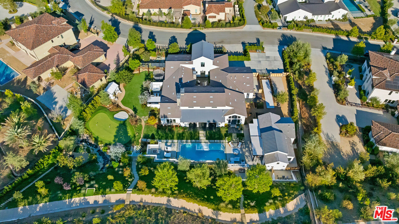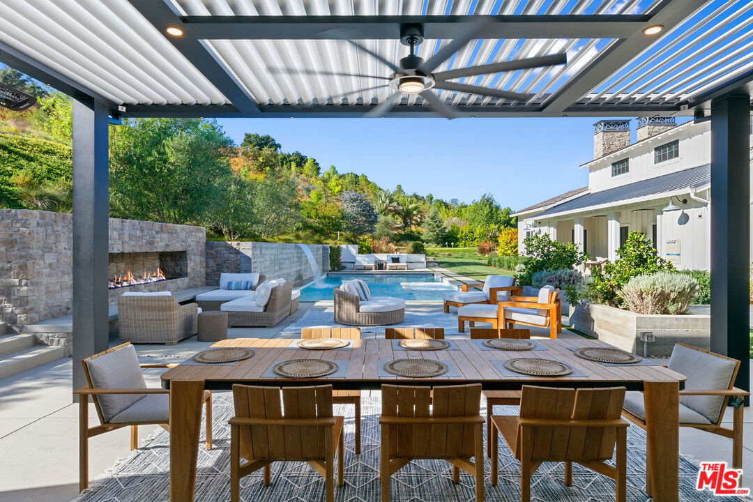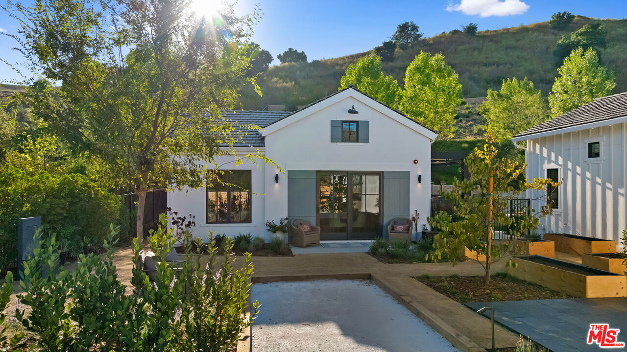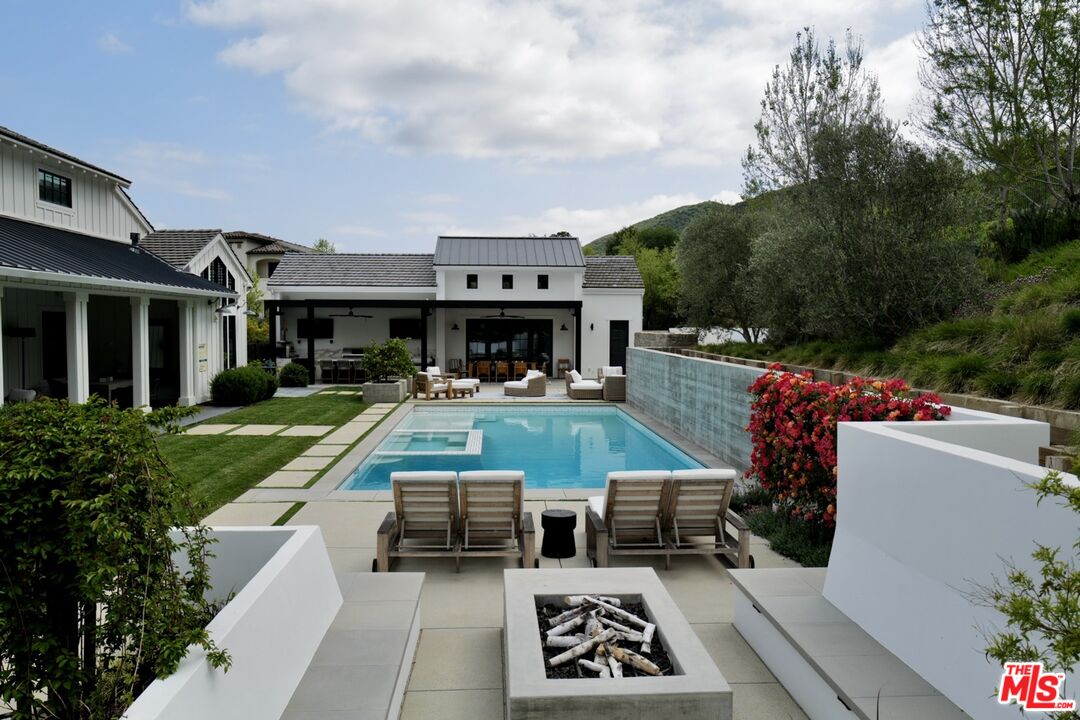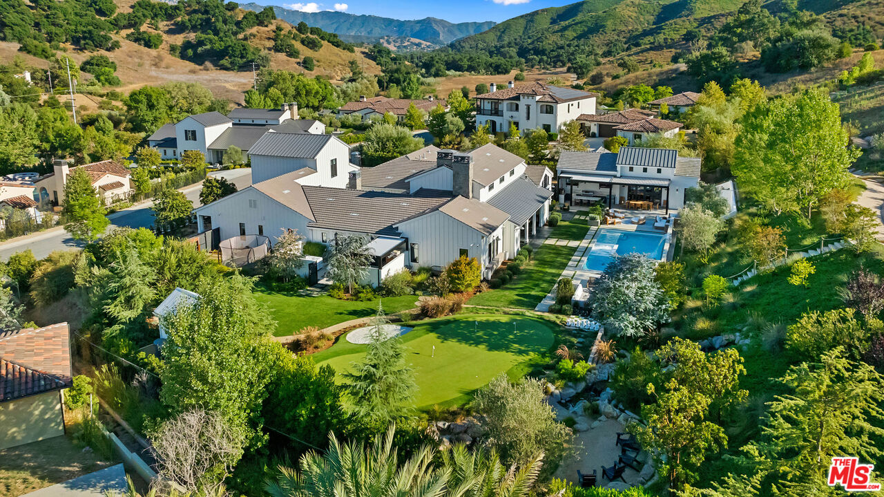 Welcome to a one-of-a-kind modern farmhouse estate located on the border of Calabasas and Agoura Hills, in a private gated community of just seven luxury homes. Offering nearly 2.5 acres of serene, resort-like grounds, this exceptional property combines total privacy and natural beauty with unmatched convenience just two minutes from the 101 and walking distance to Erewhon, Starbucks, and more. Finished in 2024, the estate backs directly onto the Santa Monica Mountains Nature Reserve, with private access to hiking and biking trails, ensuring that no future development will ever disrupt your peace. The main residence, guest house with its own address, pool house, and writer's cottage are all thoughtfully arranged across the property, providing an ideal setting for multigenerational living, creative work, and luxurious entertaining. Inside the main home, you'll find four spacious ensuite bedrooms and two additional half baths. The primary suite is a true retreat, complete with a fireplace, custom walk-in closet with in-house dry-cleaning, and a private spa-style patio featuring a cold plunge, hot tub, infrared sauna, and massage table. At the heart of the home is an expansive great room that opens seamlessly to the backyard, centered around a stunning 18-foot linear fireplace. The chef's kitchen is outfitted with top-of-the-line Thermador and Gaggenau appliances, a grand center island, floor-to-ceiling windows, and cozy gathering spaces including a fireplace, coffee bar, and smoothie bar. A separate bonus area and a second-story, soundproof home theater and music studio round out the interior spaces. The four-car garage includes a full gym and professional-grade golf simulator. Step outside to discover a saline pool with hot tub and waterfall, a peaceful creek with a stone bridge and shaded sitting area, and a fire pit with built-in seating for fifteen. The grounds also include a putting green with four tee boxes and a bunker, an in-ground trampoline, meditation fountain, swings throughout the property, bocce ball court, ping pong deck, outdoor kitchen with Firemagic BBQ and Italian Alfa pizza oven, herb gardens, hillside orchard, and a dog grooming station. The guest house features two separate living quarters, one ADA-compliant each with private patios, full kitchens or kitchenettes, custom bathrooms, and panoramic views of the pool and orchard. A covered outdoor lounge area includes dual TVs, ceiling heaters and fans, and a fireplace, creating the ultimate entertaining space. The writer's cottage offers a loft, air conditioning, and ample storage, ideal as a studio or private office. This home is more than a residence it's a retreat, an entertainer's dream, and a sanctuary all in one. With direct access to nature, modern elegance at every turn, and easy proximity to Calabasas, Malibu, and top-tier schools and amenities, this rare estate embodies California luxury living at its finest. Furnishings available. Shown by appointment only.Interested in this Listing?