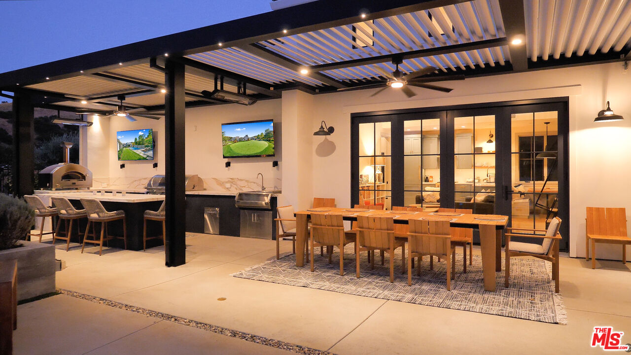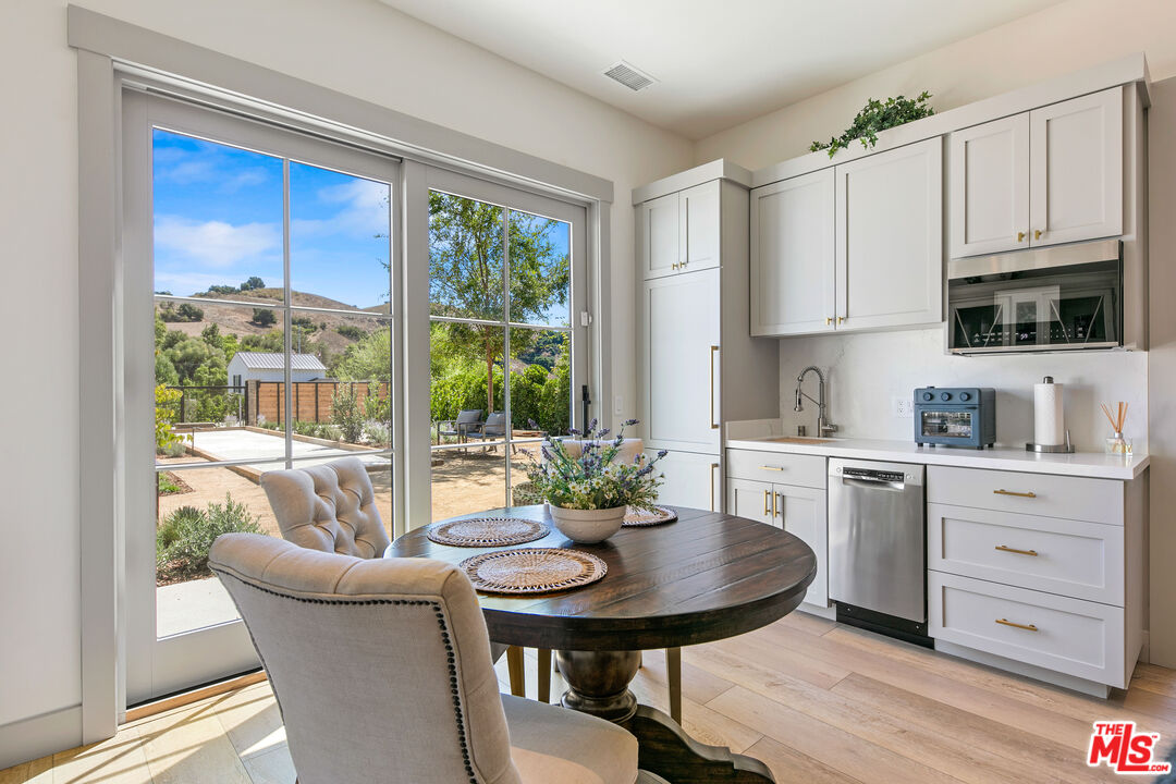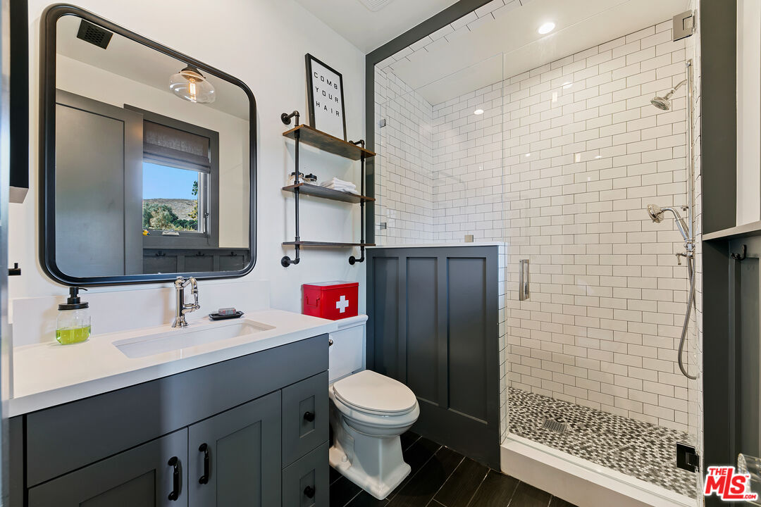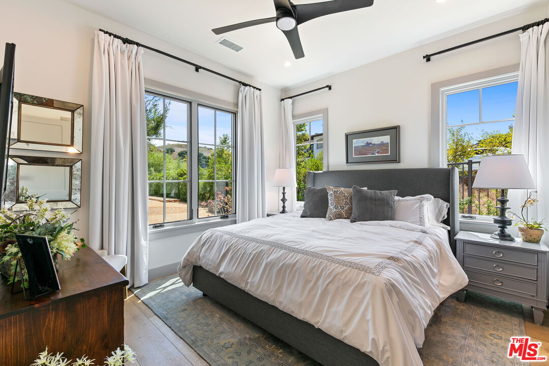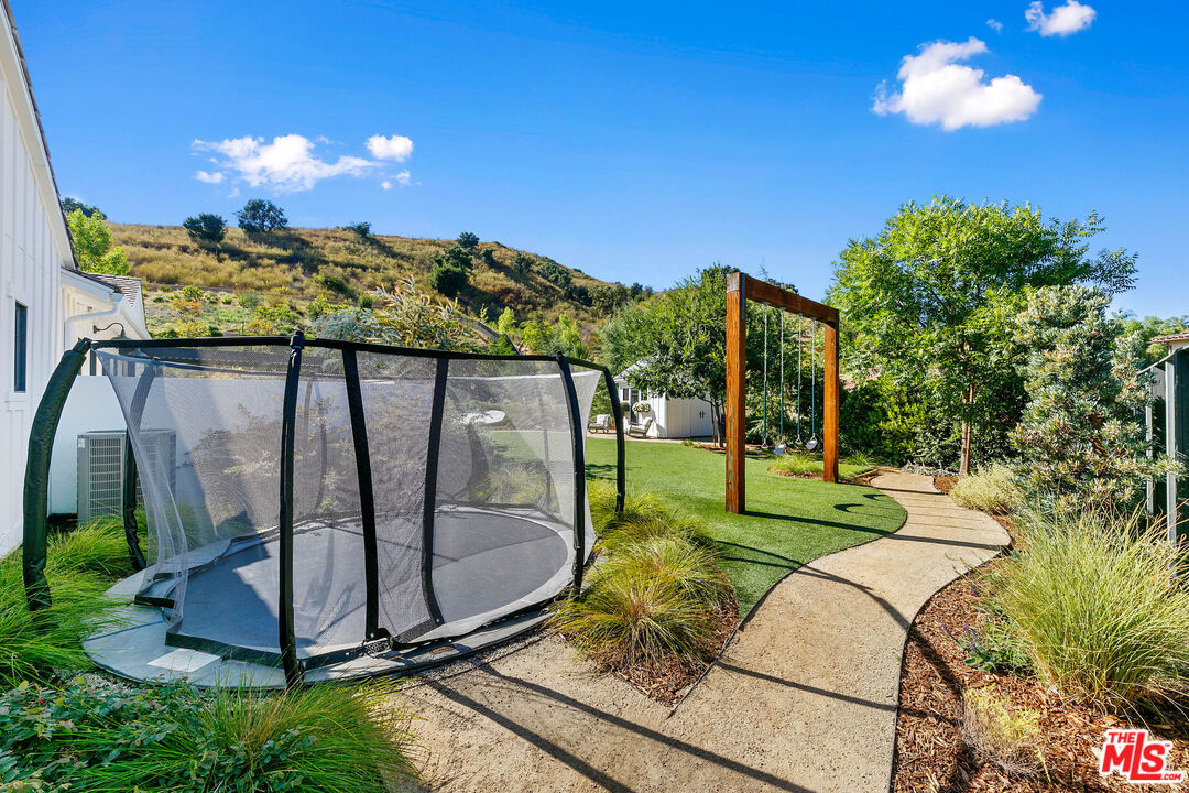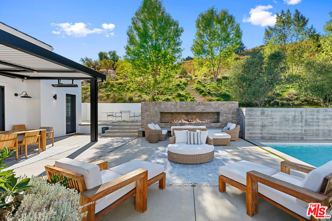 Welcome to a one-of-a-kind modern farmhouse estate located on the border of Calabasas and Agoura Hills, in a private gated community of just seven luxury homes. Offering nearly 2.5 acres of serene, resort-like grounds, this exceptional property combines total privacy and natural beauty with unmatched convenience just two minutes from the 101 and walking distance to Erewhon, Starbucks, and more. Finished in 2024, the estate backs directly onto the Santa Monica Mountains Nature Reserve, with private access to hiking and biking trails, ensuring that no future development will ever disrupt your peace. The main residence, guest house with its own address, pool house, and writer's cottage are all thoughtfully arranged across the property, providing an ideal setting for multigenerational living, creative work, and luxurious entertaining. Inside the main home, you'll find four spacious ensuite bedrooms and two additional half baths. The primary suite is a true retreat, complete with a fireplace, custom walk-in closet with in-house dry-cleaning, and a private spa-style patio featuring a cold plunge, hot tub, infrared sauna, and massage table. At the heart of the home is an expansive great room that opens seamlessly to the backyard, centered around a stunning 18-foot linear fireplace. The chef's kitchen is outfitted with top-of-the-line Thermador and Gaggenau appliances, a grand center island, floor-to-ceiling windows, and cozy gathering spaces including a fireplace, coffee bar, and smoothie bar. A separate bonus area and a second-story, soundproof home theater and music studio round out the interior spaces. The four-car garage includes a full gym and professional-grade golf simulator. Step outside to discover a saline pool with hot tub and waterfall, a peaceful creek with a stone bridge and shaded sitting area, and a fire pit with built-in seating for fifteen. The grounds also include a putting green with four tee boxes and a bunker, an in-ground trampoline, meditation fountain, swings throughout the property, bocce ball court, ping pong deck, outdoor kitchen with Firemagic BBQ and Italian Alfa pizza oven, herb gardens, hillside orchard, and a dog grooming station. The guest house features two separate living quarters, one ADA-compliant each with private patios, full kitchens or kitchenettes, custom bathrooms, and panoramic views of the pool and orchard. A covered outdoor lounge area includes dual TVs, ceiling heaters and fans, and a fireplace, creating the ultimate entertaining space. The writer's cottage offers a loft, air conditioning, and ample storage, ideal as a studio or private office. This home is more than a residence it's a retreat, an entertainer's dream, and a sanctuary all in one. With direct access to nature, modern elegance at every turn, and easy proximity to Calabasas, Malibu, and top-tier schools and amenities, this rare estate embodies California luxury living at its finest. Furnishings available. Shown by appointment only.Interested in this Listing?