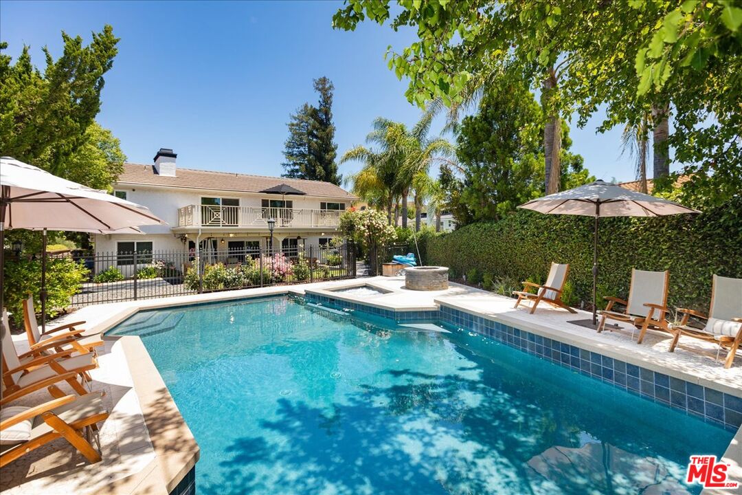 Welcome to 29018 Saddlebrook Drive in Agoura Hills, a quintessential Cape Cod retreat that blends sophistication with relaxed charm. Boasting 3,163 square feet of well-designed living space on an expansive 11,839 square foot flag lot, this home is a rare find in the desirable Morrison East Meadows neighborhood. This property is located within the coveted Las Virgenes Unified School District. Step inside to discover a thoughtful layout featuring five spacious bedrooms and three elegant bathrooms. The formal dining room and living spaces are complemented by updated flooring and plantation shutters throughout, creating a seamless flow for entertaining and everyday living. Culinary enthusiasts will delight in the updated kitchen, equipped with high-end appliances and custom built-ins, while the media/recreation room and playroom offer versatile spaces for leisure.The primary suite is a tranquil haven, featuring a sitting area and private balcony with enchanting views. It also boasts a laundry area. Outdoors, enjoy the serene setting with a saltwater pool, spa, and built-in BBQ ideal for gatherings. Citrus trees including orange, lime, lemon, and pomegranate grace the landscape, adding to the home's unique charm.Modern updates include a newer roof and insulation, tankless water heater, internet wiring, and newer main water and sewage lines. With two laundry rooms, three fireplaces, an electric gate, Tesla 240w charger outside of garage, and ample garage and driveway space, this home combines luxury with practicality, offering an unparalleled lifestyle in Agoura Hills.Interested in this Listing?