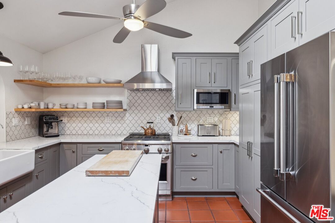 Relaunched & Radiant: Agoura Hills Designer Retreat with Detached Studio & Lush Backyard Oasis. Refreshed with meaningful upgrades and revived energy, this designer 3BR/2BA sanctuary with over 1680 square feet (measured) on a peaceful Agoura Hills cul-de-sac delivers style, serenity, and flexibility in one artfully composed package. Vaulted ceilings and brand-new Milgard windows flood the home with natural light, highlighting warm terra cotta tile and rich hardwood floors. The inviting living room is anchored by a charming fireplace (decorative) with arched-brick firebox, flowing effortlessly into the heart of the home: a custom kitchen with artisan cabinetry, marbleized quartz counters, open shelving, and high-end appliances including a GE Monogram gas range, Bosch refrigerator, and Fisher & Paykel double-drawer dishwasher. Just beyond, a flexible den/lounge creates space to unwind or entertain, with easy access to the backyard. The tranquil primary suite includes California Closets and opens via French doors to the yard. Bathrooms are appointed with floor-to-ceiling artisan tile, and two additional bedrooms offer versatility for guests, office, or play. Step outside and discover your private oasis: a lush, drought-conscious garden featuring a mature lemon tree, grapefruit tree, and avocado tree, plus curated lounge areas for dining, relaxing, or soaking up golden hour. A detached 200 sq. ft. Studio Shed-complete with A/C and a Jacuzzi-brand infrared sauna-adds the perfect flex space for wellness, creativity, or working from home. The finished garage adds more function with epoxy flooring, custom cabinetry, full laundry (LG washer + Kenmore dryer), and an EV charger. With key inspection items already addressed-seismic gas shut-off, GFCIs, attic and HVAC updates, and stucco repairs-this home is move-in ready with peace of mind. All just minutes from favorites like Parma Pizzeria, The Royal Egg Cafe, Canyon Club, Basta, and The Old Place, plus top-rated Las Virgenes schools. This is curated California living, revived and ready to go.Interested in this Listing?
