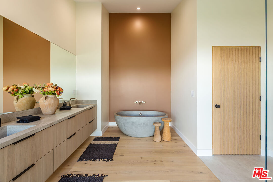 This is the house - your dream home, finally within reach. A masterpiece of design, completely reimagined by visionary Designer Tiaan Schreuder and expertly crafted by Ross Builders, this Old Agoura estate is where Mid-Century Modern elegance meets Scandinavian simplicity, creating the ultimate luxury coastal ranch lifestyle. From the moment you step inside, soaring 14-foot vaulted ceilings with rift white oak beams draw you into an expansive, open living space - perfectly designed for both grand entertaining and effortless relaxation. The bar and gourmet Thermador-equipped kitchen set the stage for unforgettable gatherings, while wide-plank White Oak floors guide you through the home's spacious bedroom suites, each with custom spa-like baths. In the main bedroom suite, a full-size concrete soaking tub becomes the centerpiece of your private retreat, offering a serene space to unwind in ultimate luxury. Every detail has been meticulously considered, from the floor to ceiling White Oak built-ins offering storage beyond your dreams - to the full-size dog shower, because even your furry friends deserve luxury. Step outside to a massive Ipe hardwood dining and relaxation area, set amongst flat, sprawling lawns leading to your private wellness retreat, complete with a Clear Cedar sauna, workout spaces, and more. With four garage spaces and room for a dozen more cars, this property doesn't just check all the boxes - it sets the new standard. This isn't just a house; it's the one. Are you ready to call it home?Interested in this Listing?