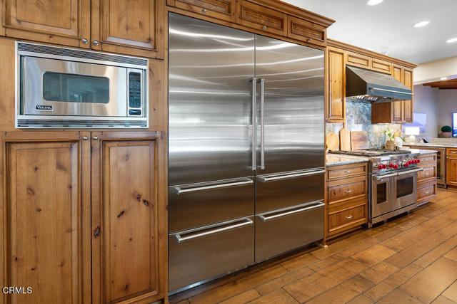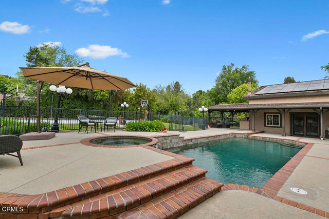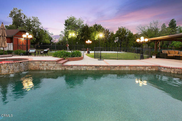 Discover the perfect balance of luxury, comfort, and California living in this stunning single story ranch estate, nestled in the highly sought-after Old Agoura neighborhood. Spanning almost 3,800 square feet on over half an acre, this beautifully upgraded 4-bedroom, 4-bath home offers seamless indoor-outdoor flow and an array of upscale amenities. Inside, you'll find a chef's dream kitchen outfitted with Viking, Wolf, and Sub-Zero appliances, complemented by rich Alder cabinetry and elegant maple flooring throughout the home. A spacious great room provides endless flexibility as a home theater or a family gathering space while a huge loft, currently with 4 computer desks, could also serve as a private gym. Plantation shutters in the living room and all bedrooms add timeless sophistication. Thoughtful upgrades elevate this property, including a large screened-in patio, a renovated pool, and a reimagined outdoor kitchen area with sleek countertops and premium appliances. A built-in outdoor movie projector and sound system make evening pool parties truly unforgettable. Professional-grade basketball hoops and paid for high-efficiency solar panels further enhance the home's appeal. Including luxurious leather couches, a pool table, and multiple flat-screen TVs, plus washer and dryer, this residence offers a turnkey experience. Outdoor living shines with a relaxing spa, a versatile sport court (basketball, pickleball, or tennis), classic horseshoe pits, and a tetherball. The barn/storage building houses an attached chicken coop for fresh farm eggs, while a fenced dog run, stretching from the home to the carport, ensures your pets enjoy both comfort and freedom. Completing the estate is an advanced security system, a spacious three-car garage, a huge covered carport, a dedicated workshop equipped with a fridge and safe, and a detached storage building, perfect for housing a classic or sports car, or for additional storage needs. Perfectly positioned for an active, convenient lifestyle, the home is just steps from Cheeseboro Canyon National Park, with direct access to popular trails for hiking, biking, and horseback riding. Located within the award-winning Las Virgenes Unified School District, Agoura High School is just an easy walk for students. Plus, you're only a 3-minute drive to Trader Joe's and other local shopping options. This is a rare move-in ready estate in one of Agoura Hills' most coveted neighborhoods, surrounded by great amenities and top schools.Interested in this Listing?