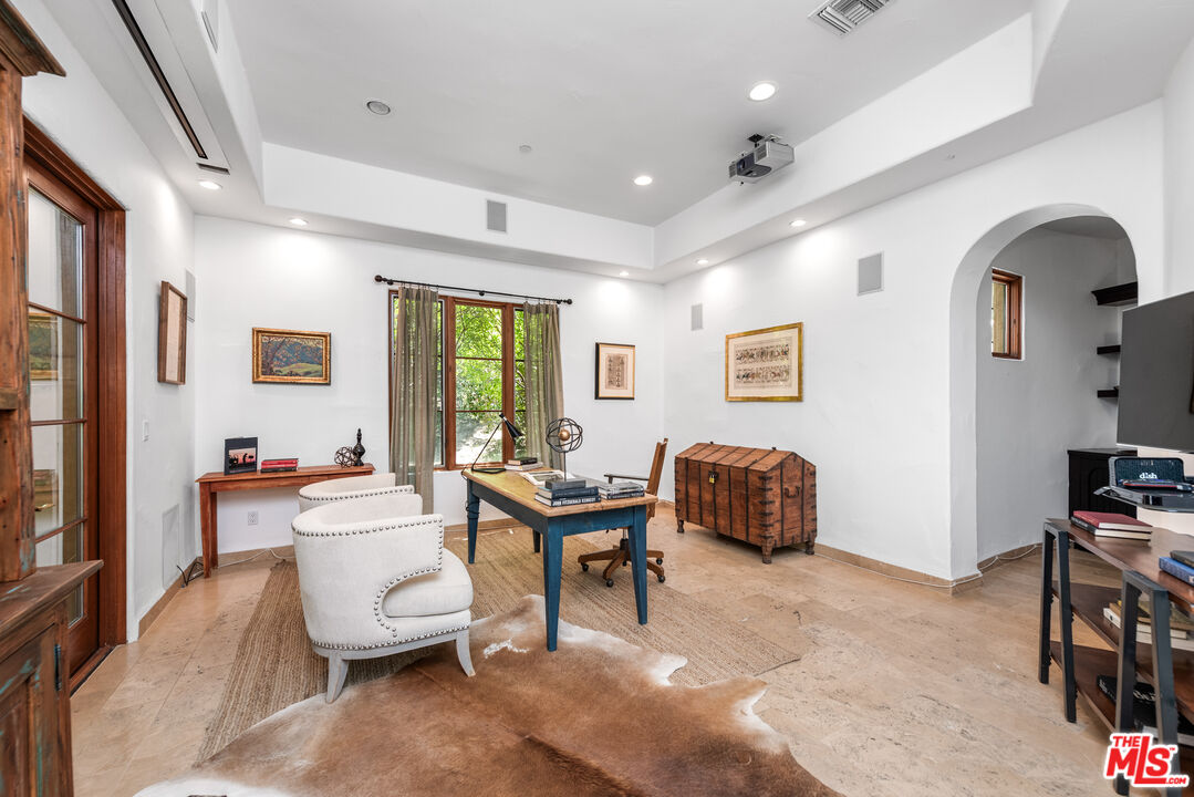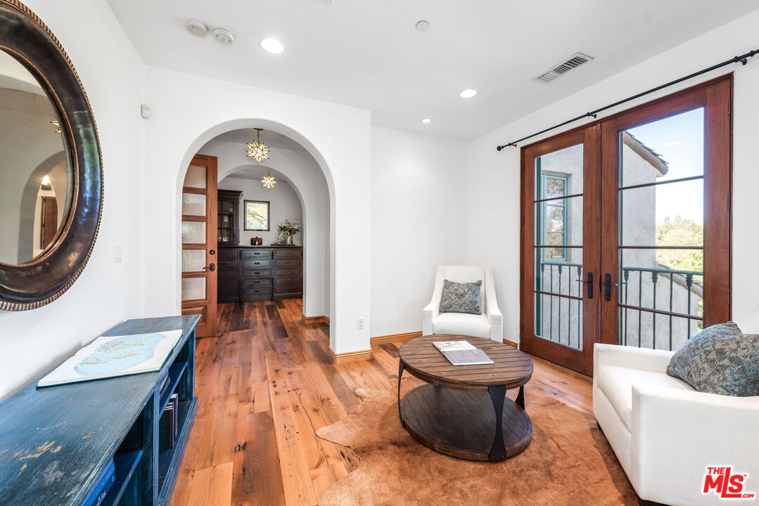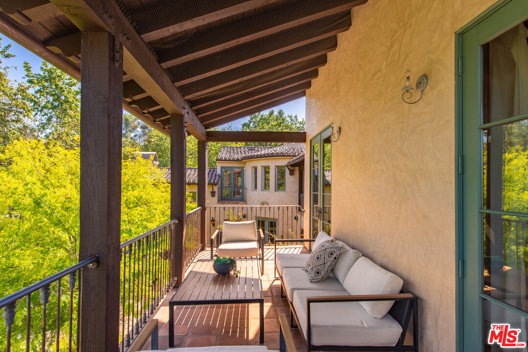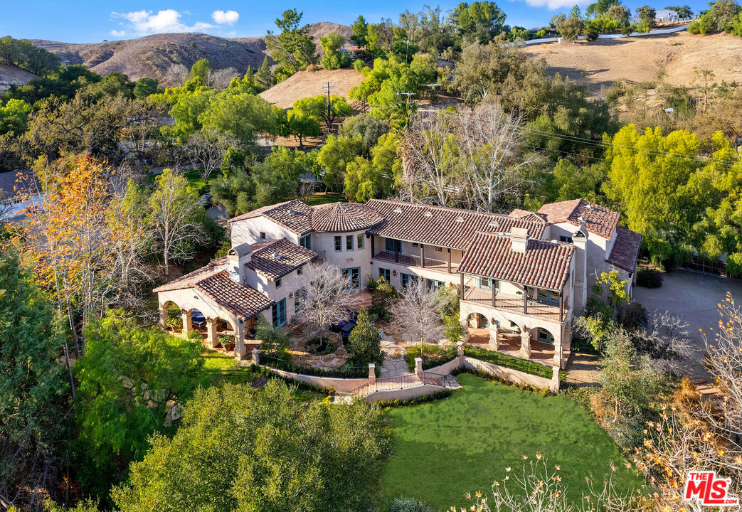 Captivating Spanish Colonial Retreat in Old Agoura Private Equestrian ZonedEstate on Over an AcreAt the end of a peaceful cul-de-sac in the heart of scenic Old Agoura, this exquisite Spanish Colonial Revival residence offers the perfect blend of timeless elegance and modern luxury. Located in one of Agoura Hills' most sought-after equestrian neighborhoods, this private sanctuary is an architectural masterpiece designed for both grand entertaining and quiet retreat. An arched entry welcomes you into a dramatic rotunda foyer, where soaring exposed-beam ceilings and gleaming marble tile floors set the tone for the home's refined interior. With a seamless blend of reclaimed hardwood cabinetry, hand-forged ironwork, and imported stone, every detail throughout the home exudes sophistication and old-world charm. The main level boasts a flexible media room or office and a chef's dream kitchen outfitted with dual Sub-Zero refrigerator/freezer units, a Wolf range with double ovens, and a spacious center island that flows into a formal dining room. Perfectly appointed with recessed lighting and top-tier finishes, the home offers comfort and functionality in equal measure. Upstairs, the luxurious master suite is a true haven, with a sitting room, a balcony, an oversized walk-in closet, and a huge spa-inspired bathroom with a steam shower and a hand-hammered copper soaking tub. Each of the four additional ensuite bedrooms offers privacy and comfort, making this home ideal for families or guests. The property spans over a full acre and is completely private and fenced, with tall hedges and trees, while the house's enchanting porticos, timbered balconies, and multiple outdoor spaces allow for dining, entertaining, or simply enjoying the peaceful surroundings. The landscaping has been completely redone with drought-tolerant plantings and an orchard featuring avocado, lemon, orange, fig, and persimmon trees. There's ample room for a pool and equestrian facilities, with direct access to nearby hiking, biking, and riding trails. All of this is situated within the award-winning Las Virgenes Unified School District and just 20 minutes from the beautiful beaches of Malibu and the shops, restaurants, and cultural experiences of Agoura and nearby Westlake Village and Calabasas. Experience California living at its finest in this one-of-a-kind Old Agoura estate.Interested in this Listing?