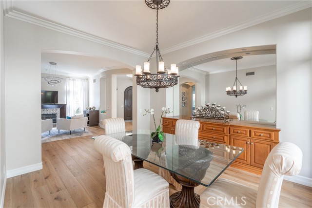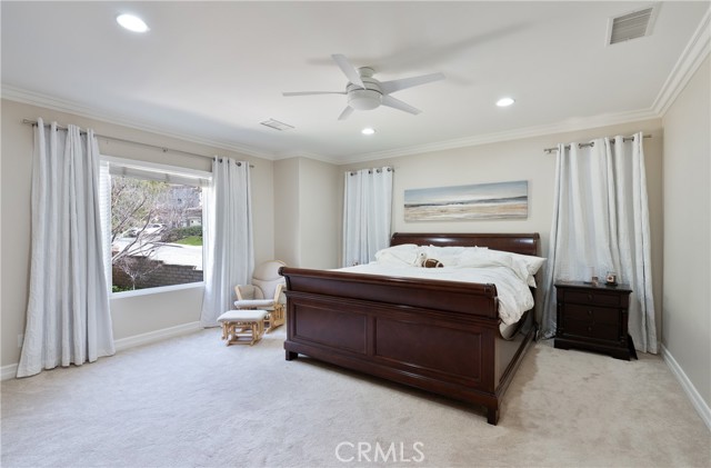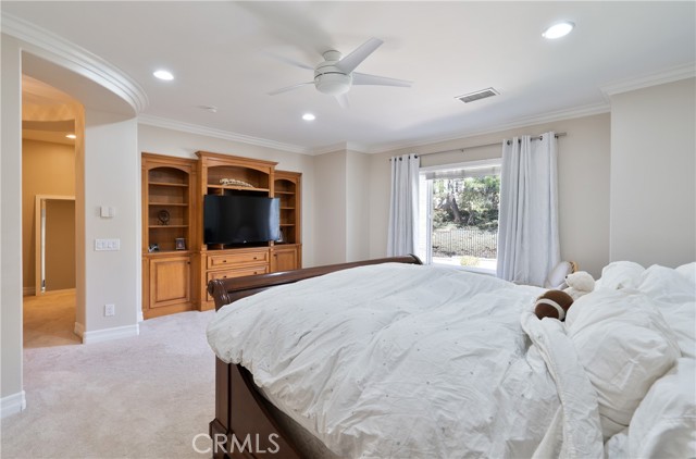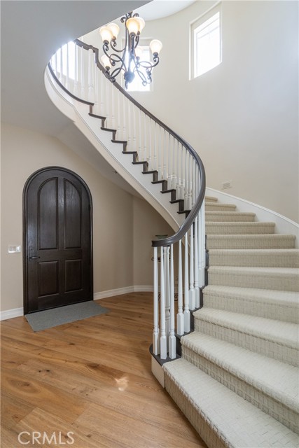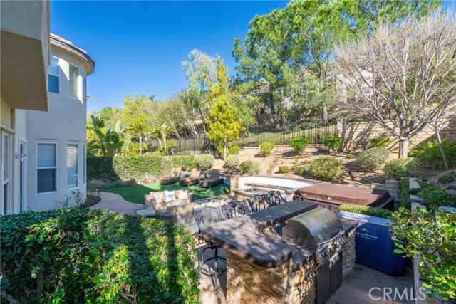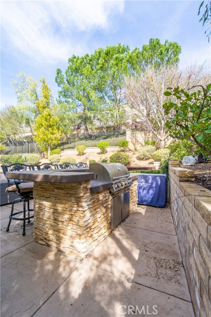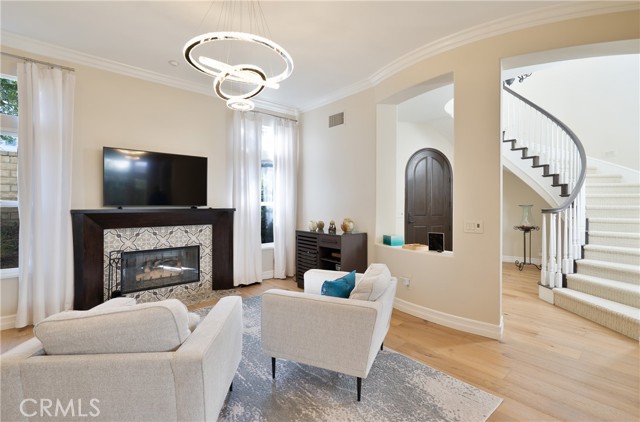 This premier Chambord Home is nestled on a premium corner lot on a quiet cul-de-sac street in a beautiful Oak Park neighborhood. Upon entering, you are greeted by a round entry foyer with curved floating staircase. The entire first floor is wide plank light French oak flooring. The large formal living room with rich stained fireplace mantle and custom tiles flows into the formal dining room with built-in buffet and French doors leading out to a courtyard and fountain. A massive gourmet kitchen opens to the family room with a white quartz fireplace. The kitchen features a large island with bar seating, professional grade stainless steel appliances, double ovens, Subzero refrigerator, separate snack fridge, breakfast nook, walk-in pantry, and Butler s pantry. The first floor also includes a guest bedroom with an en suite bath, a powder room, and a large laundry room. Upstairs, you will find the resort like primary suite with a built-in entertainment center, oversized his and hers walk-in closets, a spa like bathroom with oversized shower with dual showerheads, large, soaking tub, and double vanities. There are three additional bedrooms, two additional bathrooms, a home office area with built-in desk, a laundry shoot, and a huge bonus room with built-in wall-to-wall bookcases and amazing views of Oak Park and the mountains. The backyard is great for entertaining with an above ground spa, outdoor kitchen with built-in barbecue and bar top seating, fire pit with bench, seating, and a turf play area. The garage has a electric car charger that can accommodate up to two cars including Teslas. This home has it all, great location, great schools, near restaurants, shopping, hiking, and biking trails, pickleball courts, the Oak Park Splash Pad, and only 25 minutes to the beach. This is the best opportunity in all of Oak Park.Interested in this Listing?