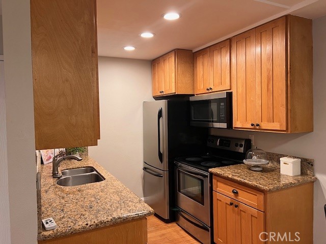 Amazing condo with great location near shopping, Starbucks, restaurants, grocery, easy access to freeway, located in the heart of Agoura Hills. Award winning LVUSD schools and only about 12 miles from beautiful Malibu beaches. This condominium offers beautiful wood flooring throughout the home with an upgraded kitchen that has stainless steel appliances, maple cabinets, and granite countertops. Built-in cabinets in dining room area. This one-bedroom offers a walk-in closet and ceiling fan. This unit is close to the community gated pool, spa, and laundry facility with plenty of grassy areas and pet waste stations throughout. Water, gas, sewer, and landscaping costs included. Gated entry. Storage locker located above assigned carport. Small pets allowed.Interested in this Listing?