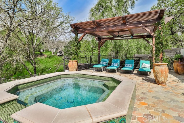 Introducing an exquisite Spanish-style villa nestled on a serene half-acre parcel within a prestigious horse community. Surrounded by lush greenery and majestic oaks, this property promises an unparalleled private retreat. Step through the gated entrance and be greeted by a mesmerizing fountain and meticulously designed outdoor lighting. This distinguished residence boasts six expansive bedrooms, three of which feature luxurious en suite bathrooms. The fully equipped kitchen is a chef's dream, while the inviting living room provides the perfect space to unwind. Adding to the allure, a charming guesthouse awaits, offering one cozy bedroom, a bathroom, and a convenient kitchenette, ideal for accommodating visitors in style and comfort. Outdoors, discover a haven of relaxation and entertainment, complete with a covered pergola adorned with grapevines, ideal for al fresco dining. Fire pits and a barbecue area set the stage for outdoor gatherings, while the Jacuzzi, surrounded by lush fruit trees, offers a tranquil retreat. The pice de rsistance of this remarkable property is the breathtaking infinity pool and spillway, providing stunning views of the vineyard and surrounding landscape. With its luxurious amenities and captivating surroundings, this Spanish-style villa presents an unparalleled opportunity for discerning buyers seeking elegance, tranquility, and timeless beauty. Don't miss your chance to experience the magic of this extraordinary retreat.Interested in this Listing?
