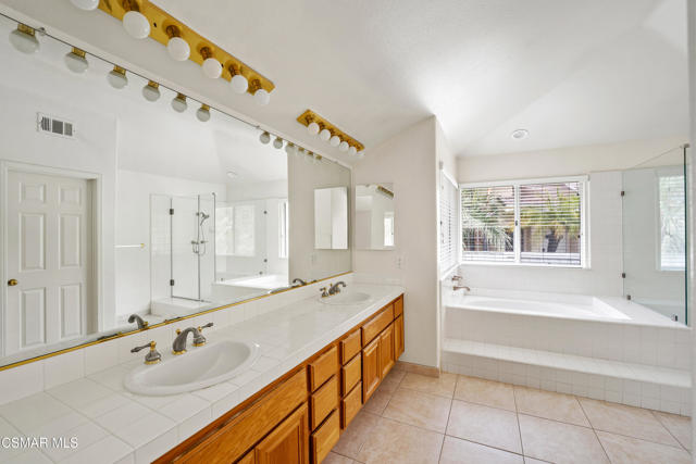 Located in the prestigious Hillcrest Estate community, this Oak Park gem offers an ideal blend of suburban tranquility and urban convenience. Perfectly positioned in the city's heart, this residence is within close proximity to an array of restaurants, shops, and a Starbucks. This luminous home boasts an open floor plan with vaulted ceilings, flooding the interior with natural light. The well-maintained 3-bedroom, 2.5-bathroom home features elegant upgrades, including exotic walnut hardwood floors, a new roof, and a built-in alarm system. The updated gourmet kitchen, equipped with granite countertops, professional-grade Thermador stainless steel appliances, and travertine flooring, flows seamlessly into the adjacent breakfast nook, family room, and backyard. The family room, adorned with a marble and travertine fireplace, offers a picturesque view of the beautifully landscaped backyard, designed for effortless entertaining. The private backyard is a true oasis, featuring a large built-in barbecue area with an outdoor refrigerator, mature vines draping the walls, and a charming corner fountain that evokes a vacation-like ambiance. The spacious primary bedroom showcases vaulted ceilings, a double-sided fireplace, and a luxurious en-suite bathroom with dual sinks, a walk-in closet, a large tub, and a separate shower. Upstairs, two additional bright and generously sized bedrooms have access to a full bathroom with a bathtub/shower combo. Attention to detail is evident throughout, from the stone walkway and patio to the mature landscaping and recessed lighting, all contributing to the home's warm and inviting atmosphere. With top-rated schools, hiking, biking trails, and parks nearby, this residence perfectly combines comfort, prime location, and convenience.Interested in this Listing?