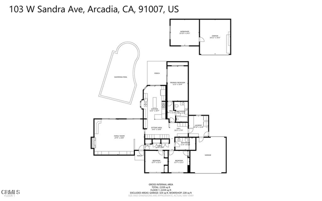 Welcome to 103 West Sandra Avenue where timeless charm meets practical sophistication in one of Arcadia's most coveted neighborhoods. This exceptional home, on a tree-lined, cul-de-sac street, offers about 2,088 square feet (buyers to verify) on a 9,810 square foot lot. Step into the spacious living room with custom built-in cabinets and two sliding French doors that open to the sparkling pool and spa. The living room features includes a brick fireplace and bar with a built-in wine cooler. Next you will enter the gourmet kitchen which boasts custom wood cabinets, island with cabinets, stainless steel appliances,built in bench seat for dining nook with a sliding French door to the covered patio area. Flowing through the kitchen is the media/den area also with custom wood built-in cabinets and a work station. Next you enter a hallway, to your right are two bedrooms and one bathroom, to your left is the primary suite and straight ahead is a large separate laundry room with access to the garage and back yard. In the primary suite is a sliding French door that leads out to the private covered patio, pool and spa, barbeque and covered gazebo. Additional features of this exceptional property, includes a two car attached garage with an additional one car garage door at the back of the garage that opens to the backyard leading directly to another two car garage currently used as storage. Plus there's an additional attached bonus room used as an office with beautiful custom built-in wood cabinets throughout. This house is in the Arcadia school district.Interested in this Listing?