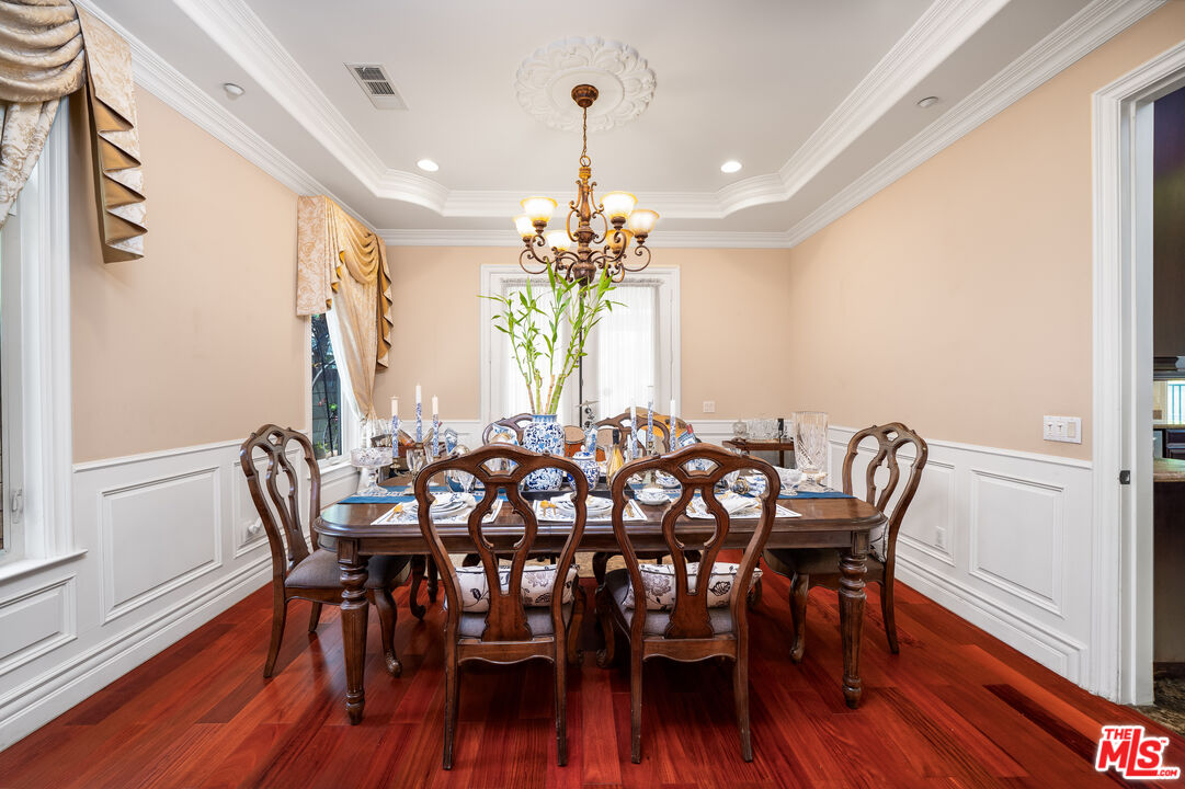 Welcome to 1036 Louise Ave, a stunning Arcadia residence that blends timeless architecture with elegant design. A grand foyer greets you with a sweeping staircase, detailed wrought-iron railings, and polished stone flooring that sets the tone for the rest of the home. The formal dining room features crown molding and a decorative ceiling centerpiece, offering an ideal space for entertaining. Rich wood finishes and custom details carry throughout the home, from the built-in shelving to the coffered ceilings. Generous windows bring in natural light and provide views of the beautifully maintained backyard. The living areas offer both comfort and sophistication, with multiple spaces for relaxation and hosting. The spacious primary suite features elegant window treatments and a private en-suite bathroom with double vanities, stone surfaces, and a deep soaking tub. Step outside to enjoy a sparkling pool, manicured landscaping, and a private patio perfect for outdoor living. With a gated driveway, distinctive garage doors, and prime location in Arcadia, this home offers refined curb appeal and timeless charm.Interested in this Listing?