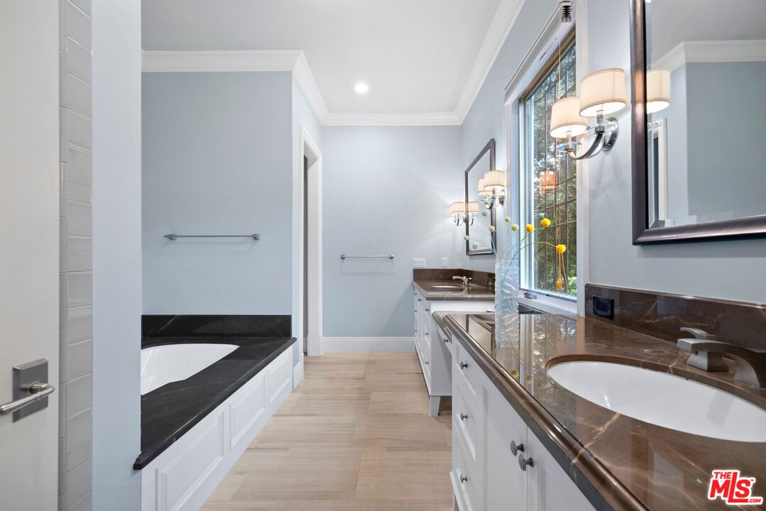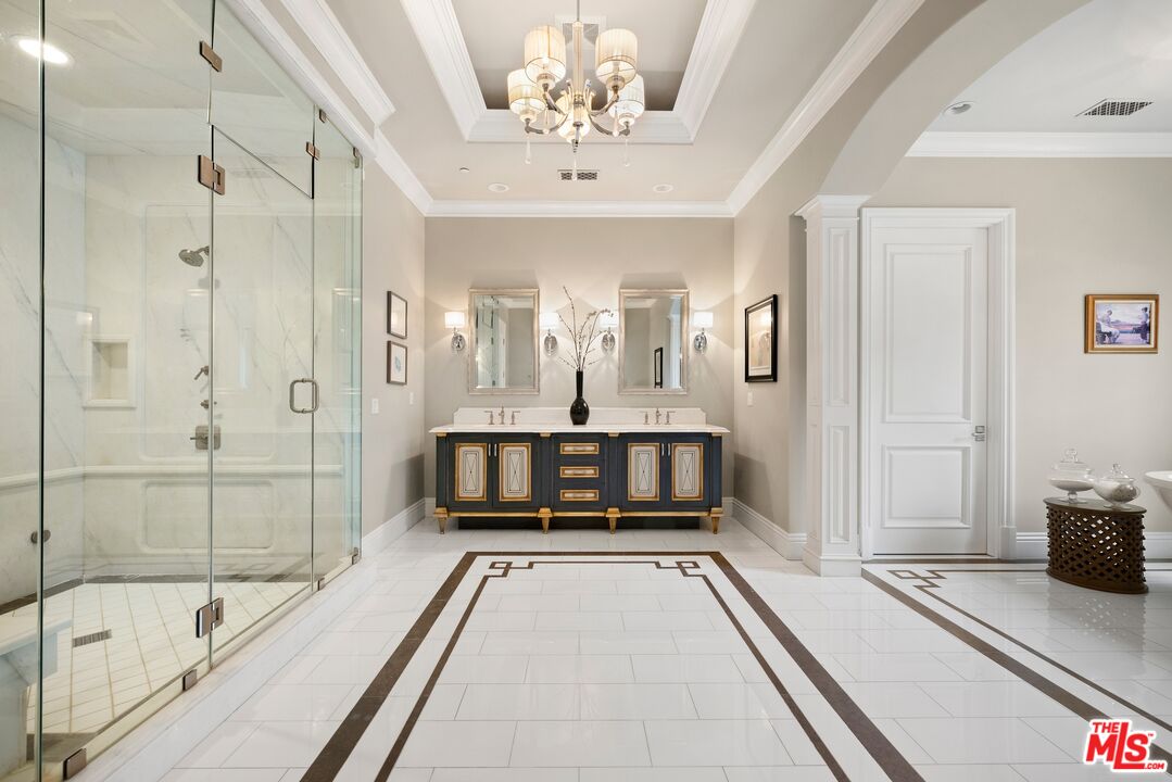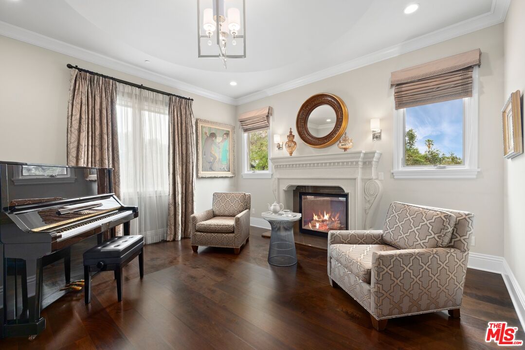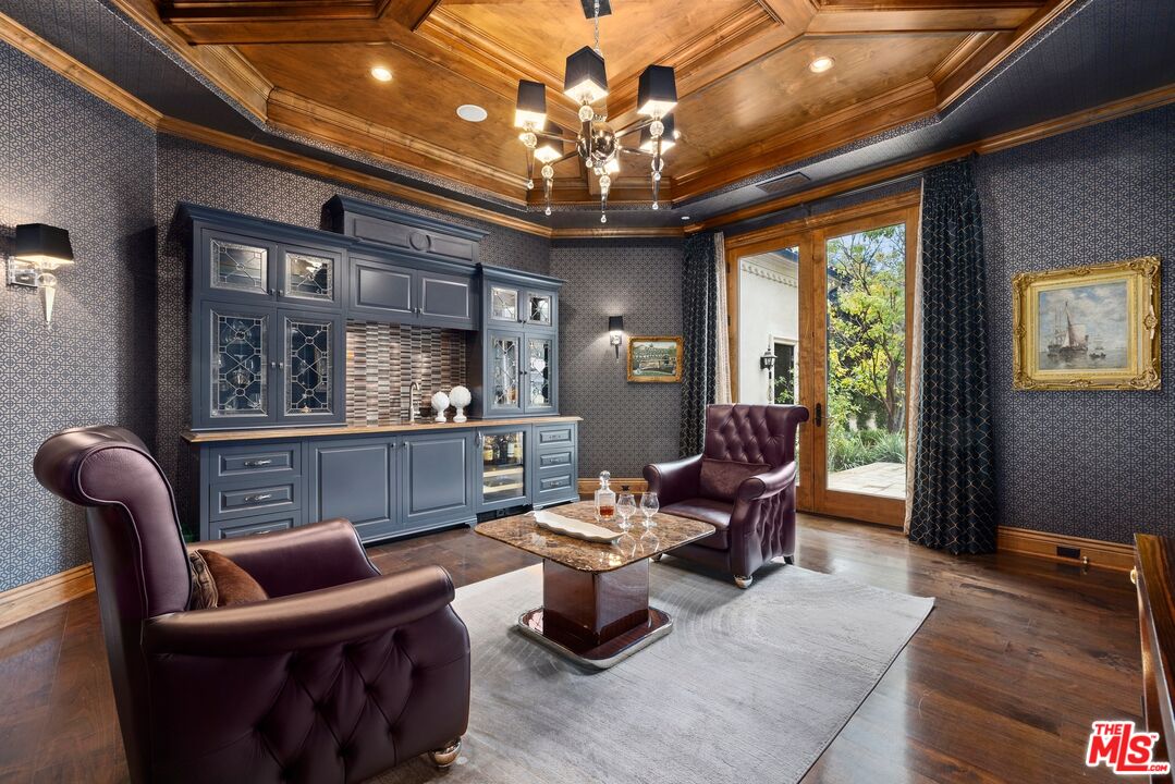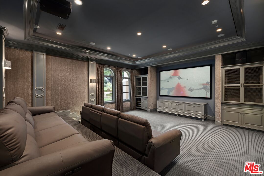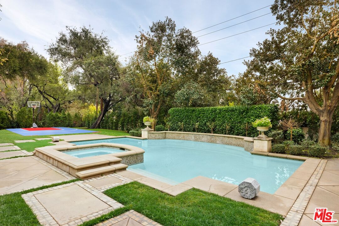 Set back from the street on three-quarters of an acre of carefully manicured grounds, a masterfully crafted Italian Renaissance marvel promises a life of luxury and elegance in this coveted Upper Rancho neighborhood. True to its name, Fallen Leaf Road is home to a variety of mature towering trees, creating a shaded paradise that is both enchanting and peaceful. This Robert Tong-designed estate, custom-built by Mur-Sol Construction, epitomizes European architecture with its facade a celebration of classical influence and style, from romantic archways and Corinthian columns to ornate wrought-iron finishes. Inside, discover custom millwork, intricate crown molding, wainscoting, rich wood floors, and beautifully paneled walls throughout. A grand double-height foyer leads to the formal living room, highlighted by decorative built-ins and two sets of custom arched French doors opening to the outside. Nearby, the formal dining room continues the timeless style of this pristine residence. Designed for entertaining on a large scale, the gourmand's kitchen is a culinary masterpiece, appointed with chef-grade appliances including a Sub-Zero refrigerator and freezer, Wolf range, a separate wok kitchen, large island with warming drawer, eat-in breakfast area, and an abundance of cabinetry and counter prep space. The adjacent family room features lofty 22-foot ceilings and sliding glass to the backyard for seamless indoor-outdoor flow. Other important amenities include a wood-paneled library/study with fireplace, a cigar lounge with wine refrigerator, and a large theatre for screening award-winning films. Upstairs, the lavish resort-inspired primary suite includes a separate piano sitting room, two fireplaces, and a large luxurious spa-like bathroom with double glass-enclosed shower, dual-sink vanity, pedestal soaking tub, and two toilet rooms. Secondary bedrooms are spacious and light-filled, with Juliet balconies, en-suite baths, and natural light. A gym/yoga room is perfect for wellness, meditation, exercise, and dance. Outside, dine and entertain al-fresco in the outdoor living/dining room amidst a tasteful arrangement of plantings, reminiscent of spending an afternoon in Versailles. A serene pool and spa are accompanied by a pool house, complete with kitchenette with wine fridge plus a bathroom with shower, perfect for hosting guests, extending parties, and relaxing on warm summer days. There is also a sports court with basketball hoop and plenty of grassy lawns to roam and play. Welcome to this ideal location near parks, golf courses, schools, and the 210 Freeway, just moments to Santa Anita Park and its adjacent public gardens, Old Town Pasadena, and Downtown Los Angeles.