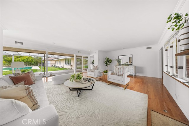 Welcome to this elegantly upgraded residence located in the prestigious Highland Oaks neighborhood of North Arcadia. Set on a generous 18,413 sq.ft. lot (approx. 0.423 acres), this 5-bedroom, 5-bathroom home offers 3,293 sq.ft. of sophisticated living space thoughtfully designed to accommodate both everyday family comfort and effortless entertaining. Step through grand double doors into a bright, inviting living room, where rich hardwood floors, crown molding, and a classic fireplace create a warm, refined ambiance. Floor-to-ceiling glass doors frame views of the beautifully landscaped backyard and offer seamless access to the outdoor retreat complete with a shaded pergola patio, an additional sparkling pool, and a fully permitted ~300 sq.ft. pool house with its own bathroom, ideal for guests, a home studio, or a private office. The chef s kitchen is a functional showpiece, upgraded with granite countertops, travertine tile flooring, and custom cabinetry. It flows directly into a cozy dining area with a fireplace and serene pool views, making every meal feel like a special occasion. Adjacent, the spacious family room also enhanced with hardwood floors and a third fireplace offers a relaxed space for gathering, and direct access to a full bath provides added convenience. The primary suite serves as a tranquil sanctuary, featuring hardwood flooring, a walk-in closet, and picturesque views of the lush backyard. The home s well-planned layout enhances privacy and versatility: one wing includes three secondary bedrooms and two upgraded bathrooms, while a separate wing houses two additional bedrooms and three remodeled baths perfect for multi-generational living or guest accommodations. Additional highlights include a flexible office that can easily be converted into a sixth bedroom, a reading nook or lounge area, recessed lighting throughout, and a detached two-car garage with an extended driveway that fits up to six vehicles. The state-of-the-art four-zone HVAC system ensures optimal comfort year-round. Mature fruit trees and professional landscaping further enhance the expansive front and rear yards, creating a private and serene outdoor setting. Situated within walking distance to top-rated Highland Oaks Elementary and Foothills Middle School, and just a 5-minute drive to Arcadia High School. Convenient freeway access and proximity to dining and shopping make this upgraded Highland Oaks home a rare and exceptional opportunity.Interested in this Listing?