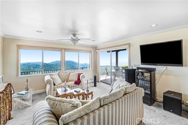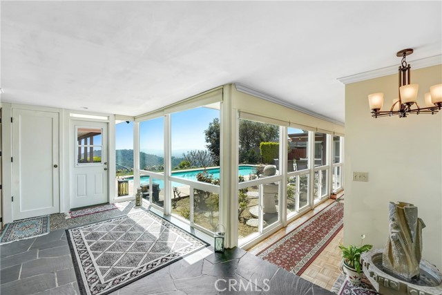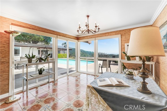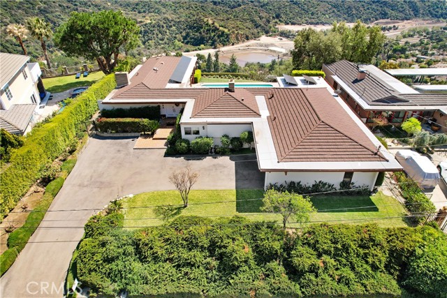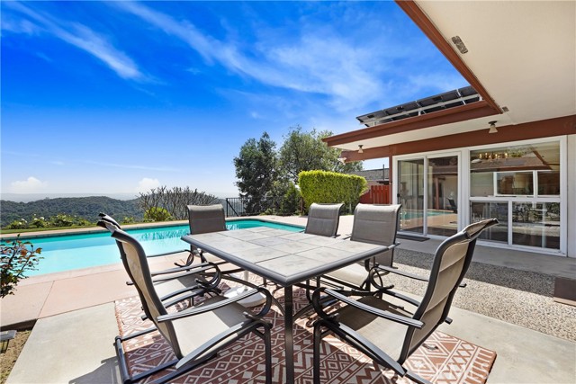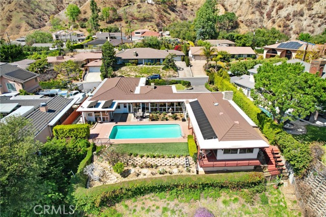 Best View in Arcadia with Incredible View of City Lights, Hills and Mountains, this Beautiful Mid-Century single-story home was built in 1959 and is located in Arcadia s well-known Highland Oaks neighborhood and is in Arcadia s highly-rated school district. As you enter through the double doors of this 2,731 sq. ft. home, you will find a gorgeous slate tile entryway with a small interior fountain and stunning views including a sparkling 4-foot deep pool, beautiful rose gardens, green turf, multiple patios and wood deck. This home has 3 large bedrooms and 2 full bathrooms, a formal step down living room with a gas fireplace, a step- down family room with more views of the pool, rose gardens, 2 small exterior fountains and access to the outdoor patio perfect for enjoying the pool and entertaining guests. The family room and formal dining room share several updated floor to ceiling dual paned windows and a double-sided gas fireplace. The galley-styled kitchen has been updated with beautiful Caesar stone countertops and upgraded kitchen cabinets. There are several storage cabinets throughout this home and a separate laundry room with more storage. The main suite and second bedroom have both been expanded to include a full living room/sitting area with more fantastic views from windows and sliding glass doors to access the pool, patios and wood wrap around deck. This well-maintained home has been updated with PEX plumbing, a whole house water filtration system, paid off solar panels, new garage door, and Tesla charger port in the 2 car garage. The long driveway is perfect for multi-car and off street parking. Located on a quiet, private, cul de sac street, this single-story hilltop view home is truly one of a kind. Over 1/2 Acre lot.Interested in this Listing?