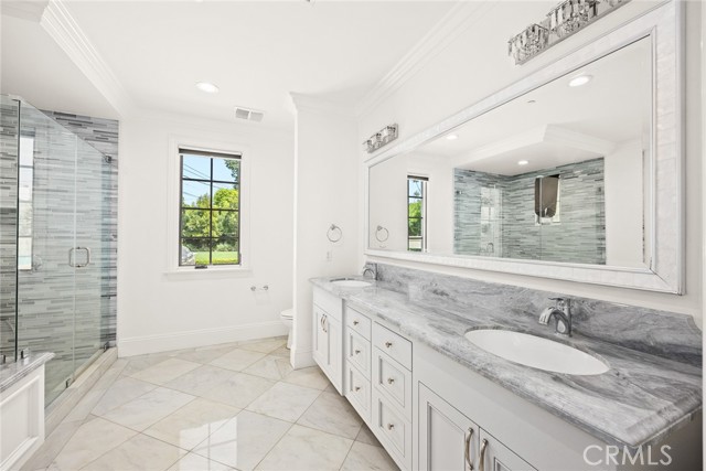 This sprawling, Mediterranean luxury estate sits on nearly an acre along one of the prettiest streets in Arcadia. The gated property has a park-like feel, with two stone fountains, two pools, landscaped flower beds, hardscaped walkways & patios, plus plenty of grass for Fido. Built in 2018, no expense was spared in the construction & design of this gorgeous 11,679 sqft home. Inside the front door, you'll find soaring ceilings, a dramatic staircase, beautiful chandeliers, custom millwork, marble tile & hardwood floors, plus huge windows that fill the space with natural light. The stunning chef s kitchen features a Wolf gas range, paneled appliances, a glass tile backsplash, marble countertops and a massive island with seating for a crowd. There s even a butler s pantry with more storage and a bonus range, fridge & sink. The home is an entertainer s dream, with bars and drink stations available in nearly every gathering space. Outside, there s a unique central courtyard with a lanai, a fireplace and dining & dancing space on the stone patio. The smaller plunge pool in the side yard feels very private and includes a waterfall. The main pool & spa in the backyard is surrounded by a patio made for lounging, with a state-of-the-art outdoor kitchen just steps away. Back inside, the primary bedroom boasts a walk-in closet that looks like a boutique and a balcony overlooking the backyard. The spa-like marble ensuite includes a beautiful dual- sink vanity, a soaking tub and separate frameless glass shower. Each guest bedroom has an ensuite, and all of the bathrooms include marble or quartz countertops and custom-tiled showers. The private office off the foyer has coffered ceilings and a floor-to-ceiling walnut bookcase, and don t forget about the home theater upstairs and the rec room off the pool deck, complete with a built-in sauna. This one-of-a-kind estate is zoned to excellent schools, with parks, golf courses and hiking trails close by, too. You ll be just 5 min from all the shopping & dining along the 210 Fwy, 15 min from Pasadena and half an hour from downtown L.A.Interested in this Listing?