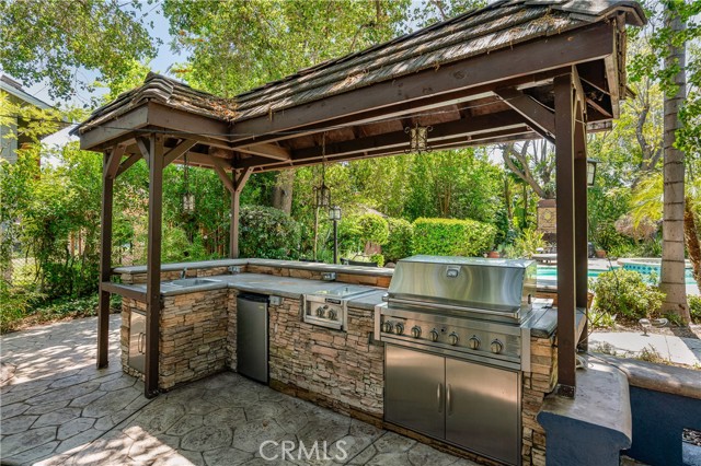 Welcome to 28 W Sycamore Ave, a rare gem tucked away in the prestigious Santa Anita Highlands of Arcadia. Set on a magnificent 33,454 sq. ft. lot, this elegant estate offers exceptional privacy, timeless design, and an entertainer s dream backyard that feels like your own private retreat. Tastefully remodeled and thoughtfully maintained, the home boasts a recently renovated kitchen that is both beautiful and functional, featuring expansive windows that flood the space with natural light, granite countertops, premium stainless steel appliances, a bar-style counter, a spacious dining nook, and a unique built-in indoor brick barbecue area perfect for year-round entertaining. Inside, you're welcomed by a grand double-door entry and skylit foyer that opens into a bright and inviting living room with fireplace and a formal dining space ideal for hosting. The family room, framed by full-height glass walls, invites you to relax while taking in tranquil views of the lush outdoor landscape. The home s layout offers smart separation of space: three bedrooms and three bathrooms are located in one wing, while a fourth bedroom and bath in its own private wing make for an ideal guest suite, home office, or in-law quarters. The luxurious primary suite is a private sanctuary, complete with a cozy fireplace, walk-in closet, deep soaking tub, glass-enclosed shower, and high-end stone finishes. Step outside into a resort-style backyard designed for unforgettable moments: a beautiful pool and spa, outdoor fireplace, entertainment-ready patio with BBQ, indoor sauna, and a peaceful garden path that winds past a tranquil water feature, leading to a gazebo and sport court surrounded by mature fruit trees. Additional highlights include hardwood flooring, plantation shutters, recessed lighting, and a spacious basement ideal for a wine cellar or additional storage. This home combines privacy, luxury, and timeless California living in one of Arcadia s most prestigious neighborhoods. An incredible opportunity not to be missed.Interested in this Listing?