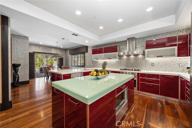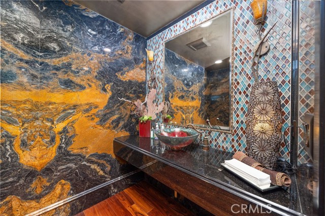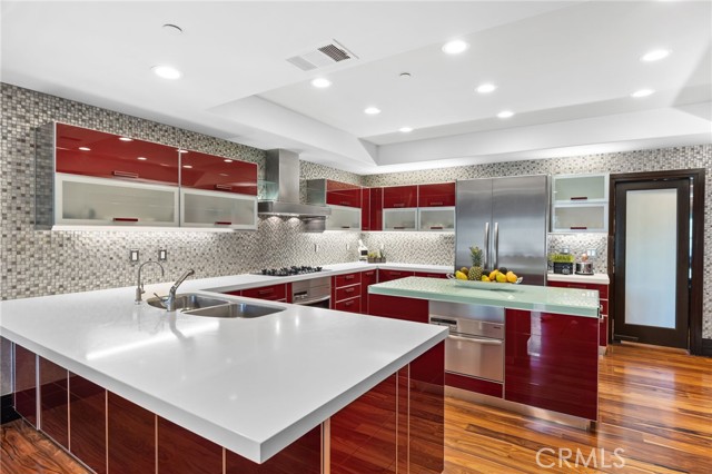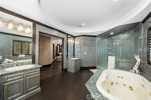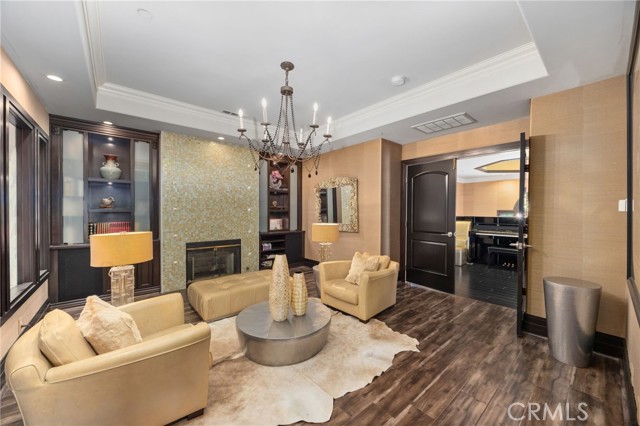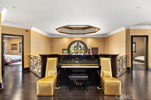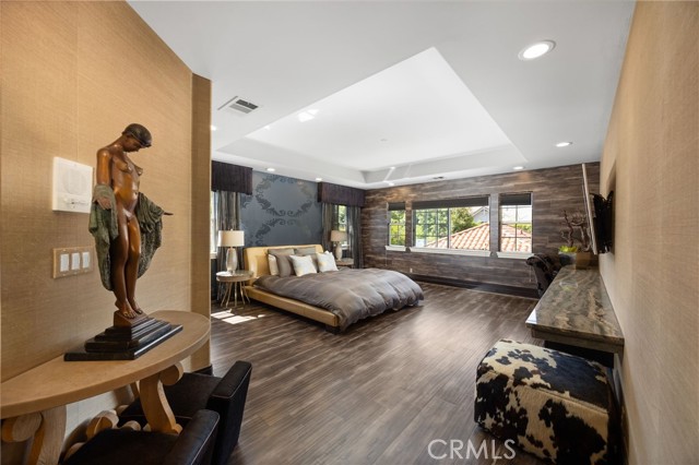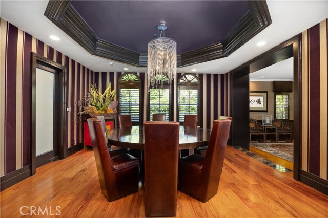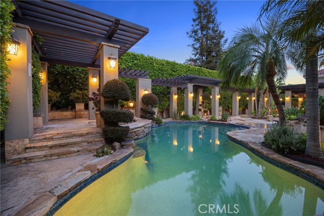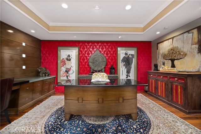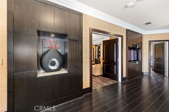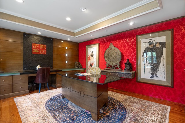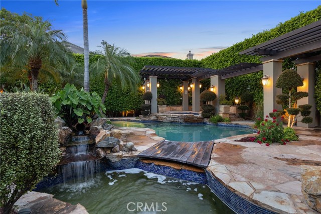 Welcome to an extraordinary estate where elegance and grandeur meet in perfect harmony. Tucked behind a private gated entrance, this architectural masterpiece spans 6,184 square feet on a 19,304-square-foot lot with a coveted south-facing orientation. Every detail reflects refined luxury, offering an unparalleled blend of timeless design and modern sophistication. Arrive through a fully gated circular driveway with dual entrances, leading to a double-height entry where a gold-leaf staircase spirals beneath an opulent chandelier. Exquisite hardwood floors, gallery-style hallways, and mosaic-tile wall finishes create a seamless blend of artistry and craftsmanship. The sunken formal living room offers refined comfort, while the formal dining room stuns with its Baxter crystal chandelier, domed ceiling, and custom display shelves. The gourmet kitchen boasts Scavolini custom cabinetry, Miele appliances, and a Caesar stone countertop from Israel. An intimate breakfast nook overlooks the koi pond, lush landscaping, and sparkling pool, while a separate Wok kitchen with Gaggenau appliances is designed for grand-scale entertaining. The family room soars with a dramatic 28-foot ceiling and towering windows, filling the space with natural light. A mosaic-tile fireplace adds warmth, while the wet bar complete with a Sub-Zero wine cooler and custom cabinetry sets the stage for effortless entertaining. Step outside through French doors, where a sprawling patio offers relaxation and sophistication. A custom designer office features rich wood-paneled walls and hand-built cabinetry. The state-of-the-art home theater is equipped with immersive surround sound and Crestron automation, offering the ultimate entertainment experience. Upstairs, four sumptuous bedroom suites provide private retreats. The grand master suite is a sanctuary of luxury, featuring a fireplace, two walk-in closets, and spa-like bath with a jacuzzi tub, glass-enclosed shower, gold-leaf custom vanities, and aqua-glass mosaic accents. Park-like grounds feature mature trees, cascading waterfalls, and lush privacy-enhancing foliage. Lounge by the resort-style pool and spa, gather around the outdoor fireplace, or stroll through the lavish gardens immersed in serenity. This isn t just a home; it s a statement, an experience, a legacy. Indulge in Southern California s pinnacle of luxury living and make it yours today.Interested in this Listing?