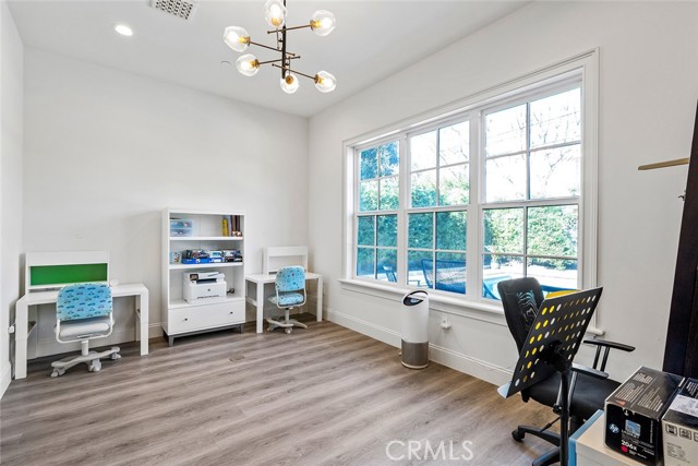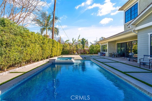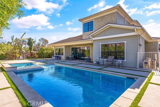 Discover this stunning Cape Cod-style home, newly built in 2021, located in the prestigious Lower Rancho neighborhood. Spanning 4,103 square feet of refined living space on a generous 11,243 square foot lot. Offering 4 spacious bedroom suites and 4.5 bathrooms, this home seamlessly blends timeless design with modern luxury. Upon entering, you re greeted by soaring ceilings and an abundance of natural light that illuminate the beautifully designed living and dining areas, ideal for entertaining. The gourmet kitchen features custom two-tone cabinetry, top-of-the-line stainless steel Bertazzoni appliances, and a large wok kitchen, perfect for meal preparation. The cozy breakfast nook overlooks the professionally landscaped backyard, complete with a sparkling saltwater pool and jacuzzi featuring app-controlled functionality and heating options. This home includes a formal living room with a fireplace and upgraded Frame TV, a spacious family room, a bonus game room, and a private study or office, providing flexible living space for every need. A convenient guest suite is located on the main floor. Upstairs, the primary suite is a luxurious retreat, showcasing a stunning wood accent wall and a spa-inspired bathroom with dual sinks, a walk-in shower, and a freestanding tub. Additional amenities include a SONOS surround sound system, a powder room, a laundry room, an attached two-car garage with EV charging, a water softener, and a security system with cameras. Smart Home features include app-controlled lighting, a security alarm, and garage access. This is a rare opportunity to own a beautifully crafted home in one of the most desirable neighborhoods. Schedule your showing today!Interested in this Listing?