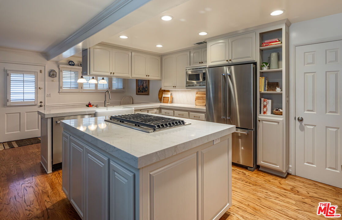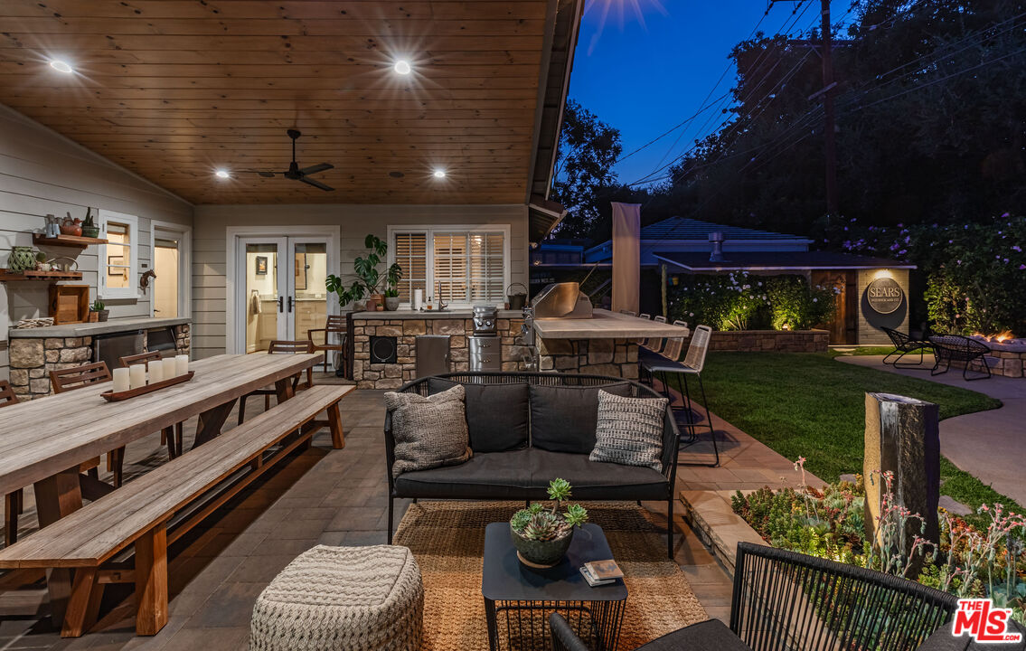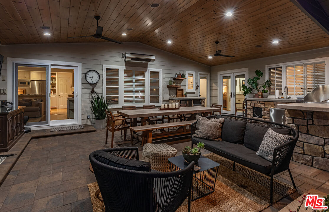 Located in one of Arcadia's most desirable neighborhoods, this beautifully updated single-level home blends timeless charm with resort-style outdoor living. Nestled on a tree-lined street in the heart of the prestigious Hugo Reid community, this property offers both privacy and proximity to award-winning schools, parks, and backs up to the Arboretum. Step inside to discover a light-filled interior featuring an elegant living room with a classic fireplace, crown molding, and views of the manicured front yard. The bright, modern kitchen is the heart of the home - complete with a spacious island, new stainless steel appliances, and abundant cabinetry, perfect for both everyday living and entertaining. Out back is where this home truly shines. Enjoy a custom-designed pool with a baja shelf and integrated spa, surrounded by lush landscaping and tall privacy hedges. The expansive covered patio is an entertainer's dream, boasting a full outdoor kitchen with built-in BBQ, bar seating, a dining area, outdoor heaters, ceiling fans, and a mounted TV - ideal for year-round gatherings. Additional features include a bonus/office room, a lush, beautifully maintained lot with mature trees and vibrant landscaping, exceptional curb appeal with a wide driveway and attached two-car garage, and a location that puts you just minutes from Westfield Santa Anita, the Los Angeles County Arboretum, Santa Anita Golf Course, and the highly acclaimed Hugo Reid Elementary School. Whether you're looking for your forever home or the ultimate entertainer's haven, 875 Hugo Reid Drive delivers unmatched comfort, style, and location.Interested in this Listing?
