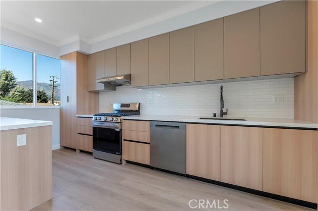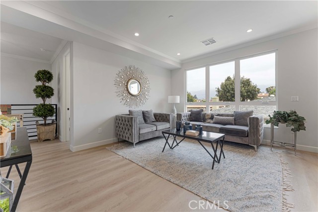 Welcome to an exclusive new community of just three luxury condo homes, where traditional charm meets modern sophistication. Bathed in natural light from tall, expansive windows, this home offers breathtaking views of the San Gabriel Mountains. With 3 bedrooms and 3 bathrooms, the layout is thoughtfully designed for both elegance and comfort. T The second floor offers open-concept living, including a spacious family room, dining area, wet bar, and a gourmet kitchen with premium LG stainless steel appliances and sleek Italian-designed cabinetry, complete with under-cabinet lighting. The third floor is dedicated to the luxurious primary suite, featuring high ceilings, a designer bathroom, and 2 more private bedroom suite. All bedrooms are equipped with custom aluminum closet systems, boasting floating shelves and drawers. The bathrooms are adorned with high-end designer tiles, creating a clean, modern aesthetic throughout. Additional features include a 2-car attached garage with EV charger readiness, solar panels for energy efficiency, and 2 guest parking spaces within the community. Experience the perfect blend of comfort, style, and convenience in this stunning new home.Interested in this Listing?