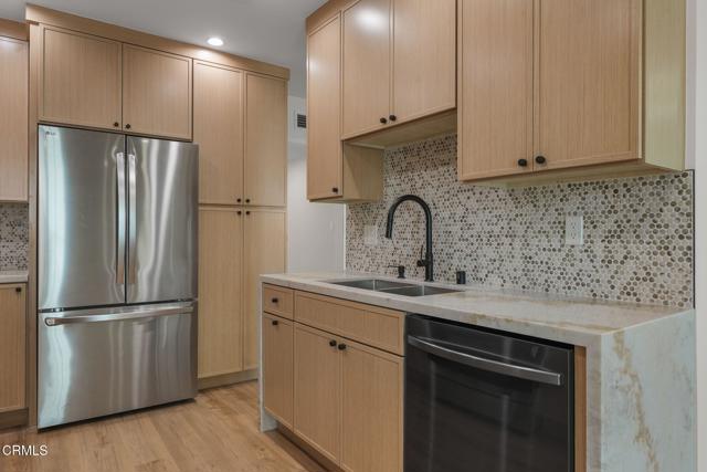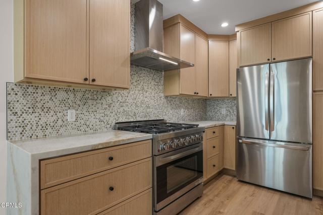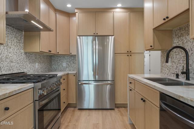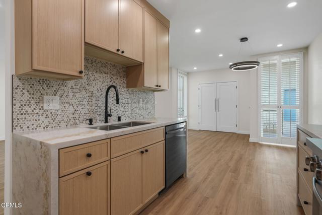 Step into elevated style and turnkey luxury with this impeccably remodeled 2-bedroom, 2-bathroom condo offering 1,316 square feet of refined living in a secure, gated community. Every inch of this stunning home has been thoughtfully upgraded with high-end finishes, blending timeless comfort with contemporary elegance.Inside, you'll find an open and airy layout enhanced by brand new energy-efficient windows and sliding glass doors, plantation shutters throughout, and smooth Level 5 drywall. The living space flows seamlessly onto a refinished private balcony, perfect for morning coffee or evening unwinding. The heart of the home is the designer chef's kitchen, showcasing solid modern slim shaker cabinetry in a warm buttermilk finish, waterfall-edge Macchiato quartz countertops, and a striking Penny Latte porcelain backsplash. Enjoy top-of-the-line chef's grade appliances including a 6-burner gas range, full-sized refrigerator/freezer with filtered water and ice, and sleek modern hardware throughout.Both bathrooms are works of art, featuring Belucci Bianca porcelain tile with bold Nero Herringbone mosaic accents, rainfall showers behind frameless glass, dual-flush toilets, and stylish modern vanities. The two spacious bedrooms each offer walk-in closets, while a new in-unit washer and dryer, upgraded electrical panel, copper plumbing, GFCI safety outlets, and brand-new luxury waterproof vinyl flooring add everyday functionality with peace of mind.Additional features include recessed LED lighting, all-new interior doors and moldings, and extensive built-in storage. The building offers subterranean gated parking with two reserved spots, a lockable private storage room, a sparkling pool, recreation room, and elevator access that opens directly in front of your unit. HOA dues are a low $419/month.A rare, turnkey gem--every surface, finish, and system has been elevated. Welcome home.Interested in this Listing?
