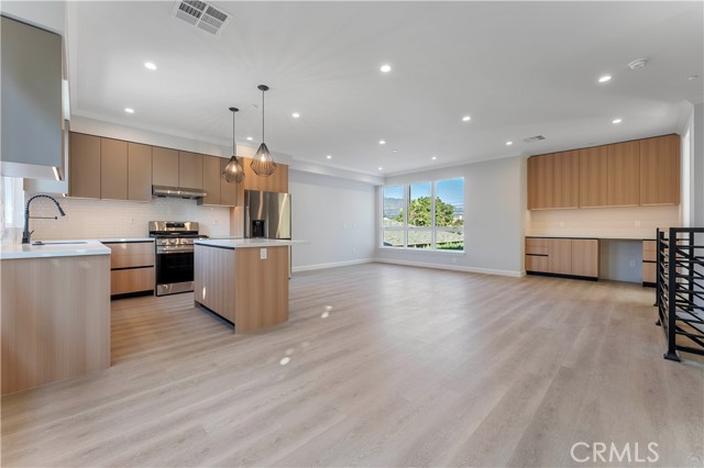 Welcome to an exclusive new community of just three luxury condo homes, where traditional charm meets modern sophistication. Bathed in natural light from tall, expansive windows, this home offers breathtaking views of the San Gabriel Mountains. With 4 bedrooms and 4 bathrooms, the layout is thoughtfully designed for both elegance and comfort. The first floor features a private bedroom suite, ideal for guests or as a home office. The second floor offers open-concept living, including a spacious family room, dining area, wet bar, and a gourmet kitchen with premium LG stainless steel appliances and sleek Italian-designed cabinetry, complete with under-cabinet lighting. An additional bedroom and guest bath are also conveniently located on this level. The third floor is dedicated to the luxurious primary suite, featuring high ceilings, a designer bathroom, and another private bedroom suite. All bedrooms are equipped with custom aluminum closet systems, boasting floating shelves and drawers. The bathrooms are adorned with high-end designer tiles, creating a clean, modern aesthetic throughout. Additional features include a 2-car attached garage with EV charger readiness, solar panels for energy efficiency, and 2 guest parking spaces within the community. Experience the perfect blend of comfort, style, and convenience in this stunning new home.Interested in this Listing?