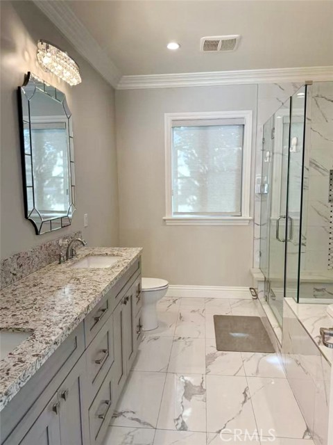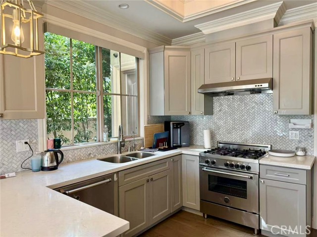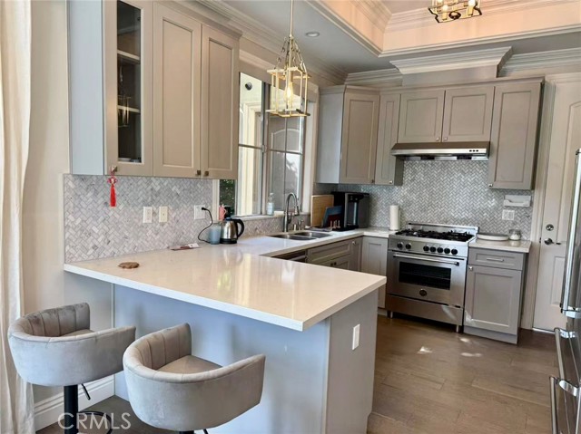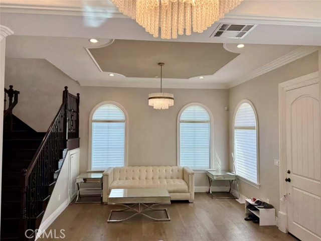 This is a furnished rental. Shorter lease terms are available starting at thirty days (30), however, the price will be subject to change. Actual furnishings/decor may differ due to product changes and enhancements. In a private community of only three units, this luxurious Mediterranean-style, two-story townhouse is nestled in a quiet, south-facing neighborhood that enjoys abundant natural light. Three spacious upstairs suites, and a downstairs powder room. The first floor boasts 10-foot ceilings with 8-foot doors, complemented by large low-E windows, LED recessed lighting, designer crystal light fixtures. The gourmet kitchen is fitted with contemporary cabinets, high-end stainless steel appliances, and flows seamlessly into the living spaces, featuring quality wood flooring downstairs and Berber carpet in all bedrooms. The master suite offers a walk-in closet, an air-jet Jacuzzi-style tub, and a separate shower with designer tile finishes. An attached two-car garage offers direct access to the kitchen, with two additional guest parking spaces at the rear of the property. The professionally landscaped yard is both paved and beautifully maintained. Located just two blocks from First Avenue Middle School in the prestigious Arcadia School District, this home is also within walking distance of Santa Anita Golf Park, and close to downtown Arcadia and supermarkets.