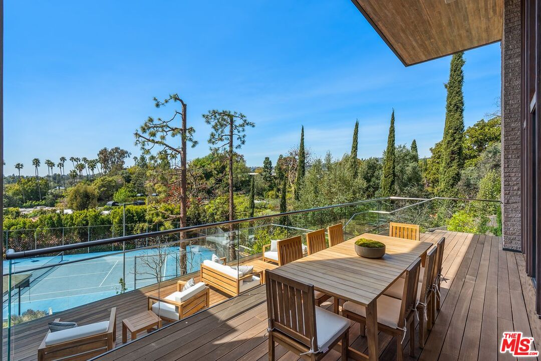 Nestled on a quiet cul-de-sac in one of the most prestigious neighborhoods of Beverly Hills, just above the iconic Beverly Hills Hotel and adjacent to the historic Virginia Robinson Gardens, this extraordinary architectural estate offers a rare opportunity to own a home that is both timeless and thoroughly modern. Originally designed by noted architect Robert Skinner, AIA, this residence has been completely reimagined through an extensive multi-year renovation, blending mid-century modern elegance with contemporary sophistication and luxurious finishes throughout.Set behind private gates, the property spans approximately 28,824 square feet of land, nearly three-quarters of an acre, with an expansive motor court, mature landscaping, and commanding presence. With over 6,000 square feet of interior living space, this five-bedroom, six-bathroom home was curated for those who appreciate thoughtful design, grand scale, and seamless indoor-outdoor living.Upon entry, guests are greeted by a dramatic foyer and soaring 22-foot ceilings in the formal living room. Walls of glass flood the space with natural light and open to panoramic tree-top and city views. A striking copper-faced fireplace anchors the living space, offering both warmth and a bold architectural statement. The open floor plan flows effortlessly into the formal dining room, family/media room, and a sophisticated office, creating ideal spaces for entertaining or quiet reflection.The heart of the home is a state-of-the-art chef's kitchen, featuring a large center island, custom cabinetry, professional-grade appliances, and an adjacent breakfast area that opens directly to the outdoors. Every room has been designed with intentionality and flow, utilizing the finest materialsfrom hand-selected stone to custom millwork and designer lighting.The primary suite is a true retreat, offering a tranquil escape with views stretching out over the city. It includes a luxurious spa-like bathroom with dual vanities, soaking tub, walk-in shower, and an oversized custom walk-in closet. Four additional guest bedrooms provide ample space for family and visitors, each appointed with designer finishes and private outlooks.No detail was overlooked in the comprehensive $9 million+ renovation. The entire home has been updated with today's most desirable features, including smart home integration, advanced lighting and sound systems, and energy-efficient design elements that enhance comfort and style.The outdoor living experience is unparalleled. Designed to feel like a private resort, the grounds feature a newly constructed zero-edge pool and spa, multiple terraces for sunbathing or entertaining, and beautifully landscaped pathways that guide you through lush gardens and tranquil sitting areas. A rare, regulation-size north-south tennis courta coveted luxury in Beverly Hillssits below the home, surrounded by tall hedges and mature trees, offering both beauty and privacy.This is a property that embodies elegance, privacy, and sophistication in every sense. Its locationjust minutes to the best of Beverly Hills yet tucked away in a serene, hidden settingmakes it one of the most desirable offerings on the market today. With its architectural pedigree, world-class renovations, and unparalleled outdoor amenities, this home is more than a residenceit is a work of art designed for refined living.Interested in this Listing?