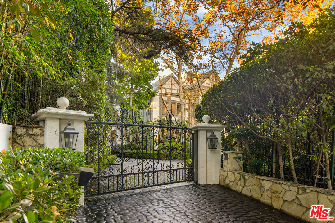 Steeped in Old Hollywood glamour, this extraordinary Beverly Hills estate is more than a home; it's a living piece of cinematic history. Once owned by Harry Warner, co-founder of Warner Bros., this Tudor-style masterpiece has hosted Hollywood royalty, global dignitaries, and some of the most legendary figures of the past century. Adding to its mystique, Marilyn Monroe was rumored to have stayed in the guesthouse, making this estate a true icon of Los Angeles' golden era. Set on a 1.15-acre flat lot with rare street-to-street access, the property offers unparalleled privacy behind three gated entrances. The meticulously landscaped grounds unfold like a private oasis, featuring a north-south championship tennis court, a serene grotto pool and spa, a koi pond framed by lush gardens and romantic fountains, and an expansive lawn perfect for grand entertaining. The charming guesthouse, steeped in its own storied past, houses the a guest suite, offering a private retreat for visitors. Inside, 12,000 square feet of refined luxury blend the romance of Old Hollywood elegance with modern comforts. Exposed rough-hewn beams, intricate hand-carved woodwork, and imported French hardwood floors create an ambiance of warmth and authenticity. The grand arched doorways lead to six opulent bedroom suites in the main residence, alongside an intimate library lounge, billiards room, state-of-the-art screening room, and private fitness center. A professional-grade country kitchen serves as the heart of the home, designed for both intimate family moments and large-scale entertaining. From the cobblestone driveway and porte-cochre to the towering heritage trees and manicured gardens, every detail of this estate reflects unparalleled craftsmanship and prestige. This is not just a residence; it is a rare opportunity to own a true Hollywood legacy, an architectural treasure that continues to captivate and inspire.Interested in this Listing?