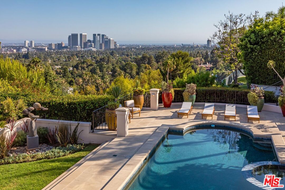 Perched atop a coveted promontory on Billionaire's Row, this extraordinary 3/4 acre estate offers breathtaking panoramic views from Century City to the Pacific Ocean. A grand entrance with soaring ceilings leads to a luminous living room framed by floor-to-ceiling glass. The step-down media lounge, with a posh wet bar and curated gallery wall, flows seamlessly into the home's refined aesthetic. Under a radiant skylight, the formal dining room sets the stage for elegant hosting. The primary suite is a private sanctuary with a spa-inspired bath, dual walk-in closets, and serene outdoor access. Designed for grand-scale entertaining, the expansive dine-in kitchen blends function with sophistication. A signature "Summer Entrance" creates a dramatic arrival, bringing guests directly to the resort-style pool and al fresco dining areas. The lower level offers additional living space, a full mini kitchen, four well-appointed bedrooms, a temperature-controlled wine cellar, and ample storage. Just moments from Rodeo Drive and The Beverly Hills Hotel, this estate is a rare opportunity to own a world-class residence in the most exclusive enclave of Beverly Hills where Hollywood legends and industry titans call home.Interested in this Listing?