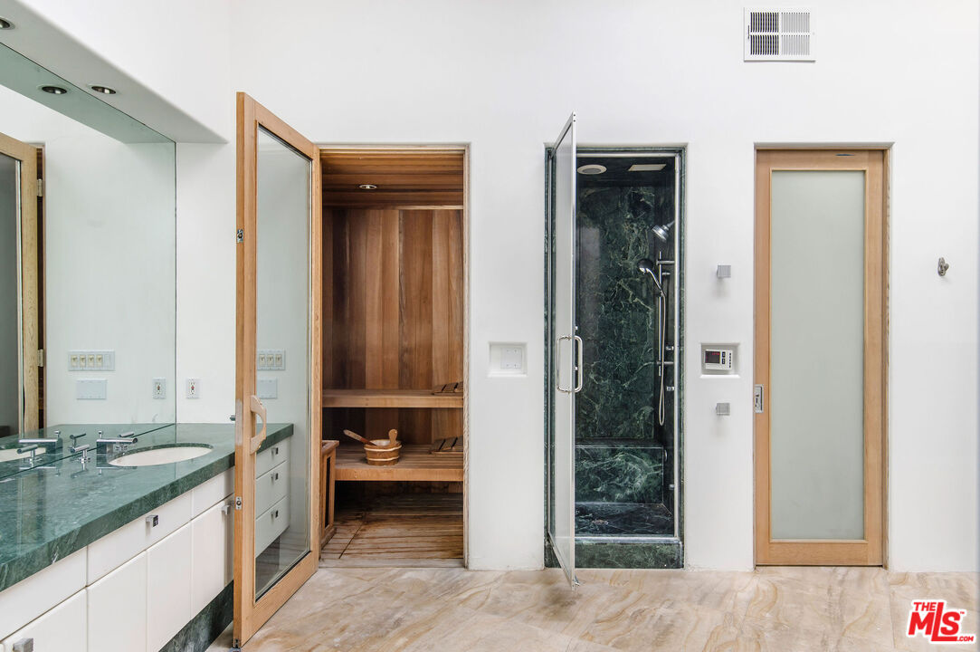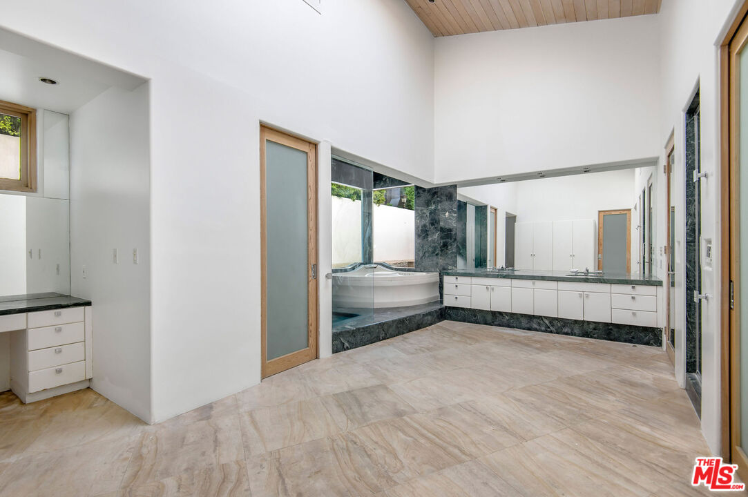 Also avail for lease. Nestled in The Summit, a prestigious 24-hour guard-gated community in Beverly Hills, this spectacular contemporary estate offers an unparalleled living experience with breathtaking panoramic views. Designed by renowned architect Ron Goldman, this custom home combines striking architectural design with seamless indoor-outdoor living. The expansive floor plan features high ceilings, walls of glass, and luxurious French limestone floors that flow throughout, creating a light-filled environment with an effortless connection to the outdoor spaces. The home includes a gourmet kitchen with European cabinetry and granite countertops, an eat-in nook, and spacious living areas, including a family room, media room, and formal dining room. The master suite offers a private retreat with a loft office, steam shower, sauna, and Jacuzzi tub. Additional spaces include a separate maid's quarters and a subterranean garage. Outside, the meticulously landscaped grounds feature an infinity pool and spa, offering stunning views of the city lights and surrounding mountains. Perfect for entertaining, the property seamlessly blends luxury and comfort with its expansive layout, including a tropical courtyard, high-beam ceilings, and a serene poolside setting. This architectural gem is a must-see. Lease term of 18+ months only.Interested in this Listing?