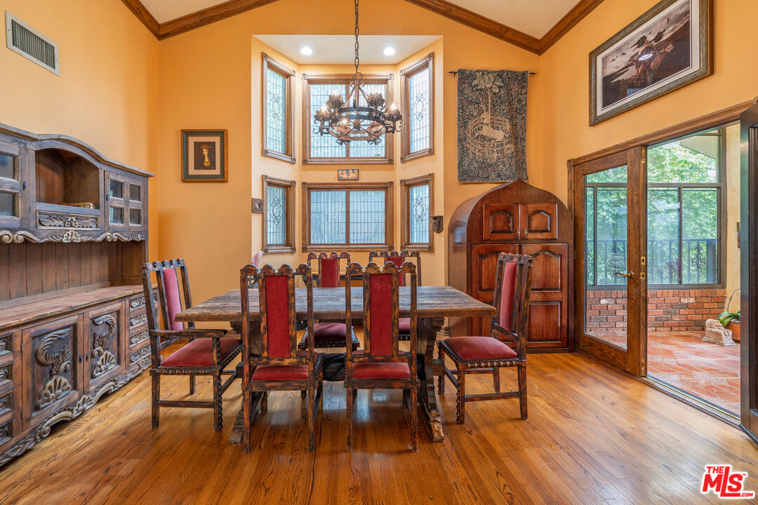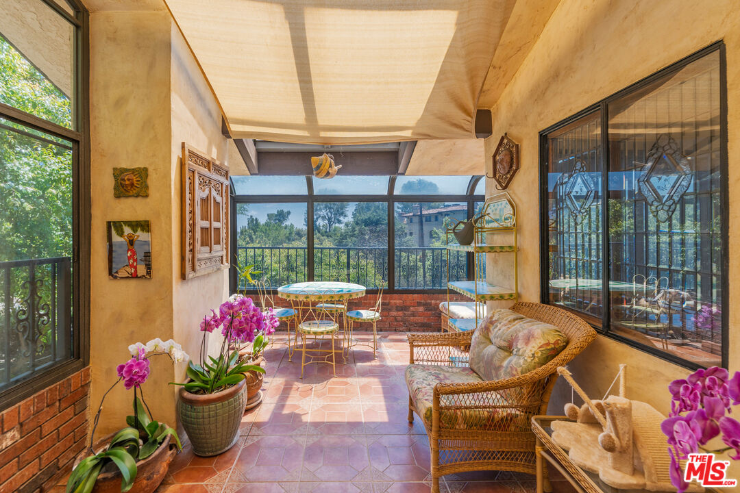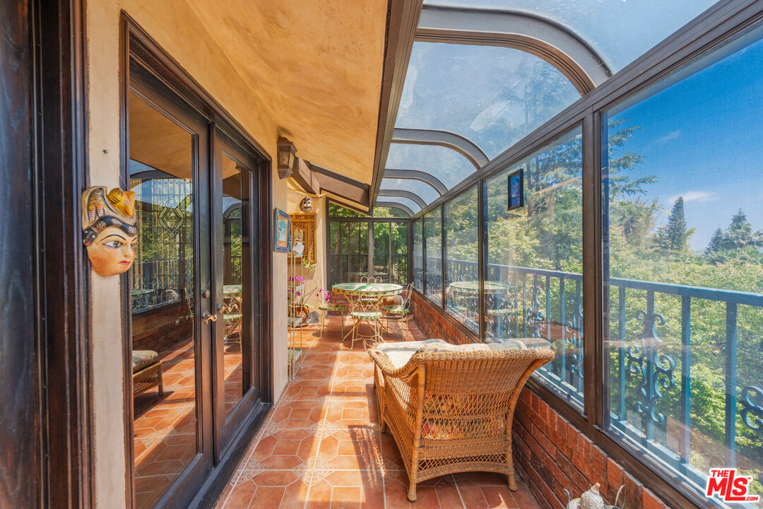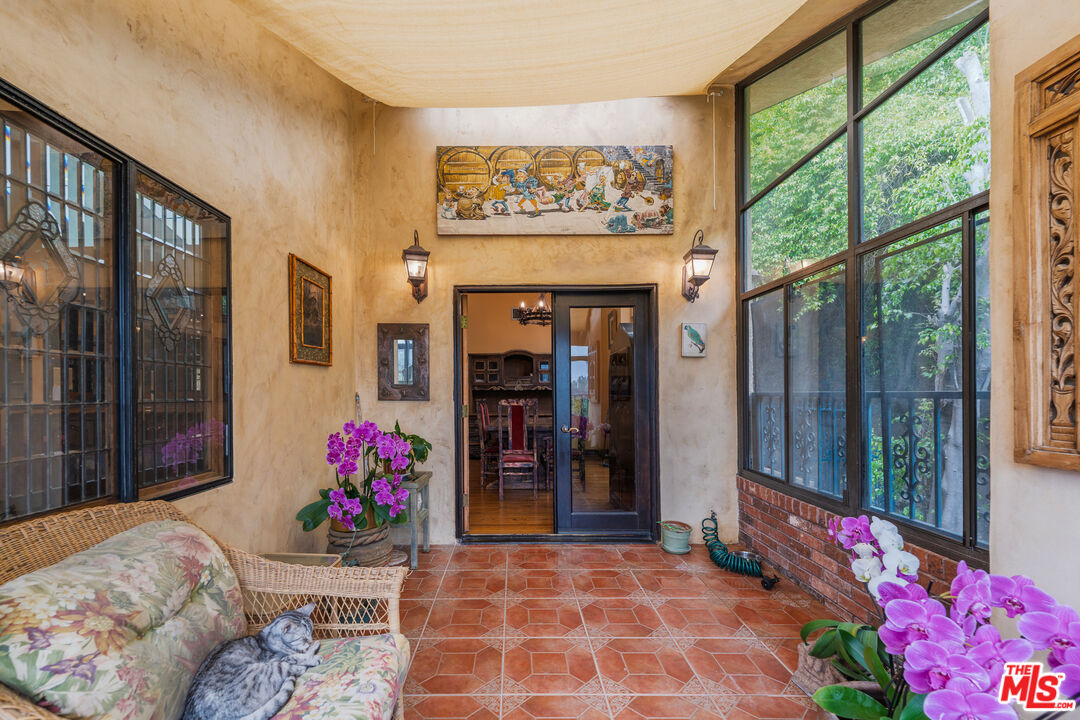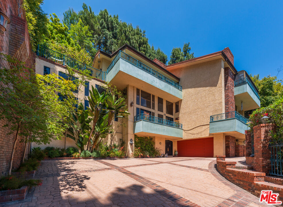Offered for the first time in over three decades, this grand four-story Traditional estate sits atop a gated 13,611 sq ft lot in one of the most coveted hillside neighborhoods of Beverly Hills/Los Angeles. Encompassing approximately 5,300 sq ft, this 5-bedroom, 5-bath residence seamlessly blends timeless design with sweeping canyon and city views from nearly every room. Thoughtfully positioned on the hillside, the home is bathed in natural light through expansive windows and skylights, including one above the kitchen. Original oak floors, leaded and stained glass, marble fireplaces, and detailed craftsmanship add to the home's refined elegance. The formal living room features a marble fireplace and a wet bar, opening into a solarium with panoramic canyon and city views. Additional highlights include an oak-paneled library with fireplace, a formal dining room with beveled glass, and a gourmet kitchen equipped with granite countertops, a Sub-Zero refrigerator, Wolf double ovens, Bosch dishwasher, center island, and a skylit breakfast nook adorned with stained glass accents. The two-story primary suite is a true sanctuary, offering a private library/office, walk-in closets, a spa-style bath, and abundant natural light. A private, winding staircase leads to the upper level, creating a serene and versatile space perfect for an additional office, reading room, or creative retreat. Additional features include a paneled office or bedroom with its own private entrance and exit, a waiting area, and a full bath. This flexible space can be converted back into a guest suite with a small kitchen area if desired. Ideal for visitors, staff, or extended stays. A game room-style den, extra office or bedroom space, multiple full and half baths, a formal library room, wine cellar, laundry room, elevator, intercom system, central vacuum, and a gated two-car garage. Outdoor areas boast a spacious terrace with a dining area, surrounded by mature landscaping and enclosed by a 1030 ft brick privacy wall.Interested in this Listing?