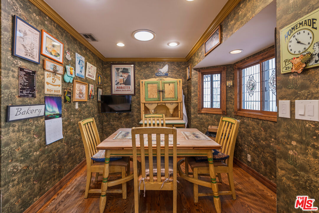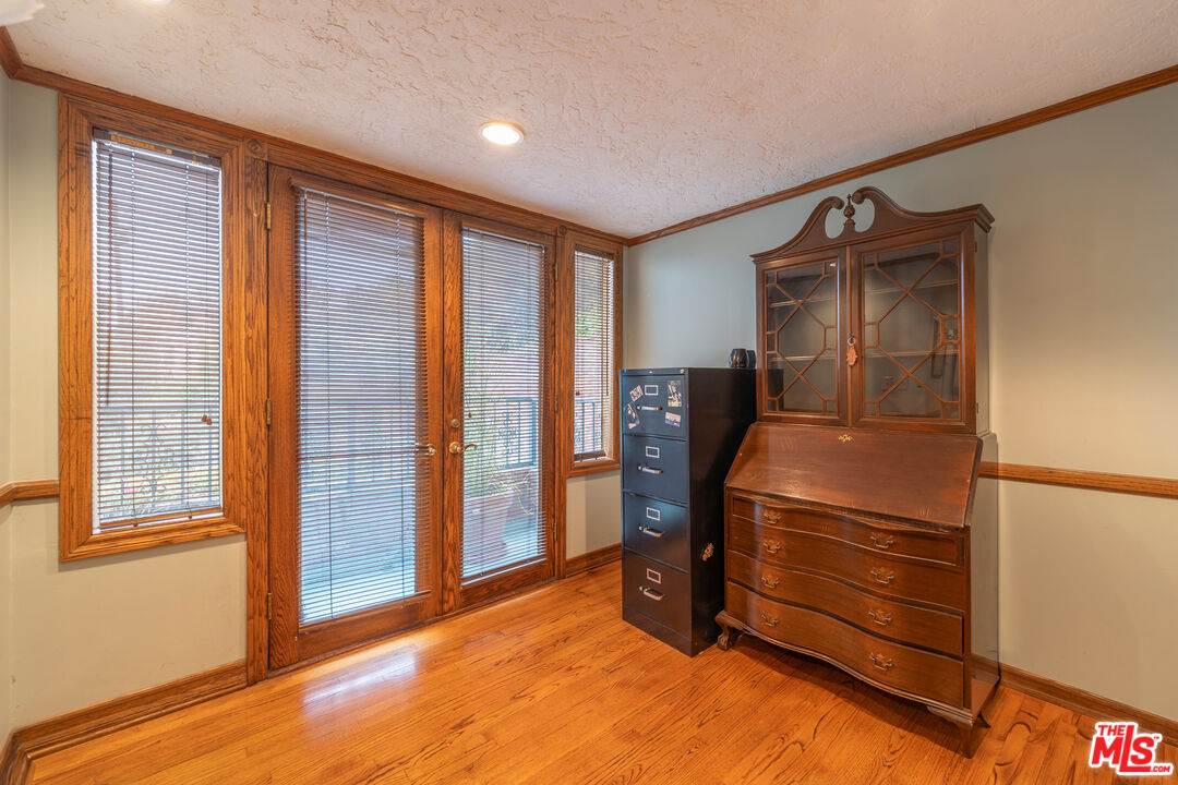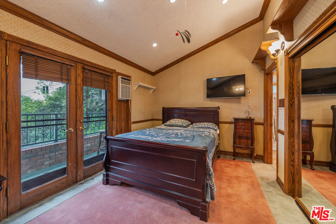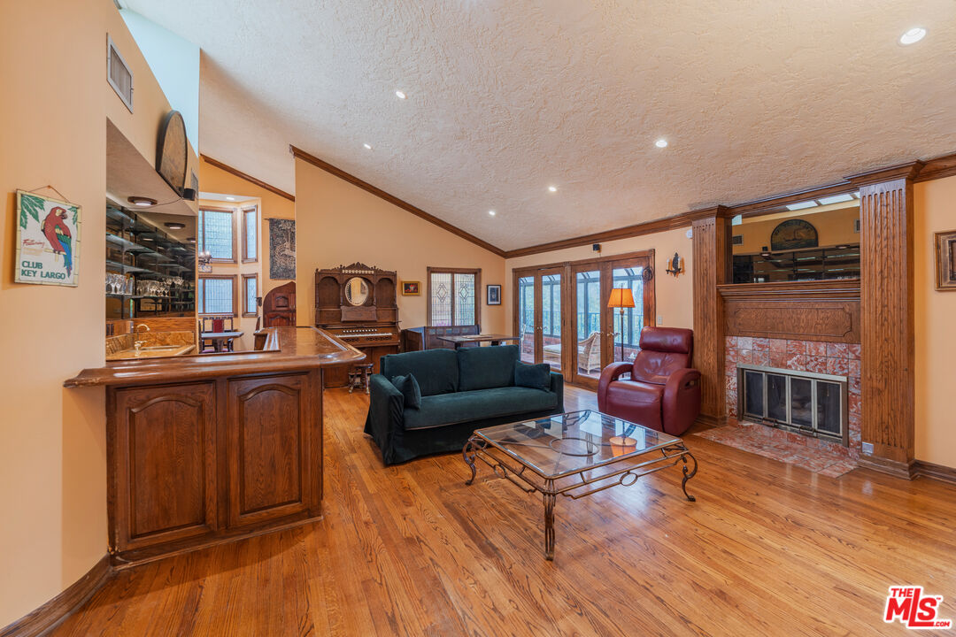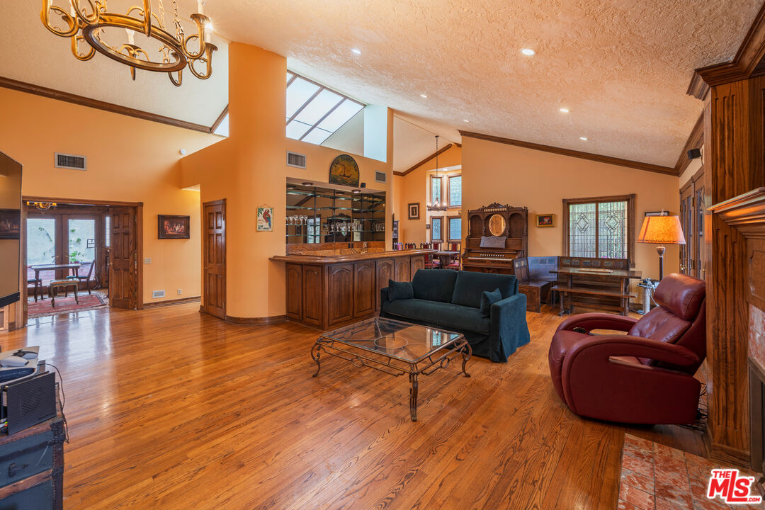 Offered for the first time in over three decades, this grand four-story Traditional estate sits atop a gated 13,611 sq ft lot in one of the most coveted hillside neighborhoods of Beverly Hills/Los Angeles. Encompassing approximately 5,300 sq ft, this 5-bedroom, 5-bath residence seamlessly blends timeless design with sweeping canyon and city views from nearly every room. Thoughtfully positioned on the hillside, the home is bathed in natural light through expansive windows and skylights, including one above the kitchen. Original oak floors, leaded and stained glass, marble fireplaces, and detailed craftsmanship add to the home's refined elegance. The formal living room features a marble fireplace and a wet bar, opening into a solarium with panoramic canyon and city views. Additional highlights include an oak-paneled library with fireplace, a formal dining room with beveled glass, and a gourmet kitchen equipped with granite countertops, a Sub-Zero refrigerator, Wolf double ovens, Bosch dishwasher, center island, and a skylit breakfast nook adorned with stained glass accents. The two-story primary suite is a true sanctuary, offering a private library/office, walk-in closets, a spa-style bath, and abundant natural light. A private, winding staircase leads to the upper level, creating a serene and versatile space perfect for an additional office, reading room, or creative retreat. Additional features include a paneled office or bedroom with its own private entrance and exit, a waiting area, and a full bath. This flexible space can be converted back into a guest suite with a small kitchen area if desired. Ideal for visitors, staff, or extended stays. A game room-style den, extra office or bedroom space, multiple full and half baths, a formal library room, wine cellar, laundry room, elevator, intercom system, central vacuum, and a gated two-car garage. Outdoor areas boast a spacious terrace with a dining area, surrounded by mature landscaping and enclosed by a 1030 ft brick privacy wall.Interested in this Listing?