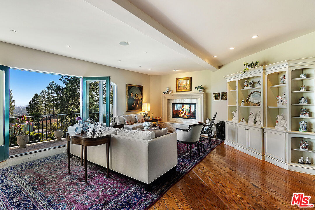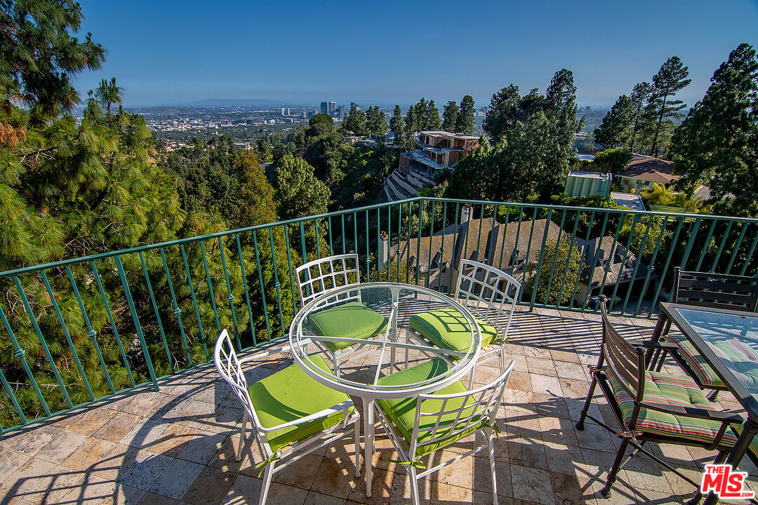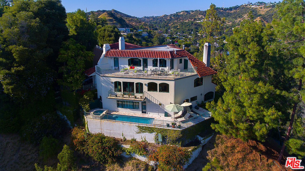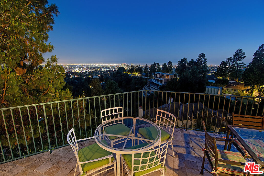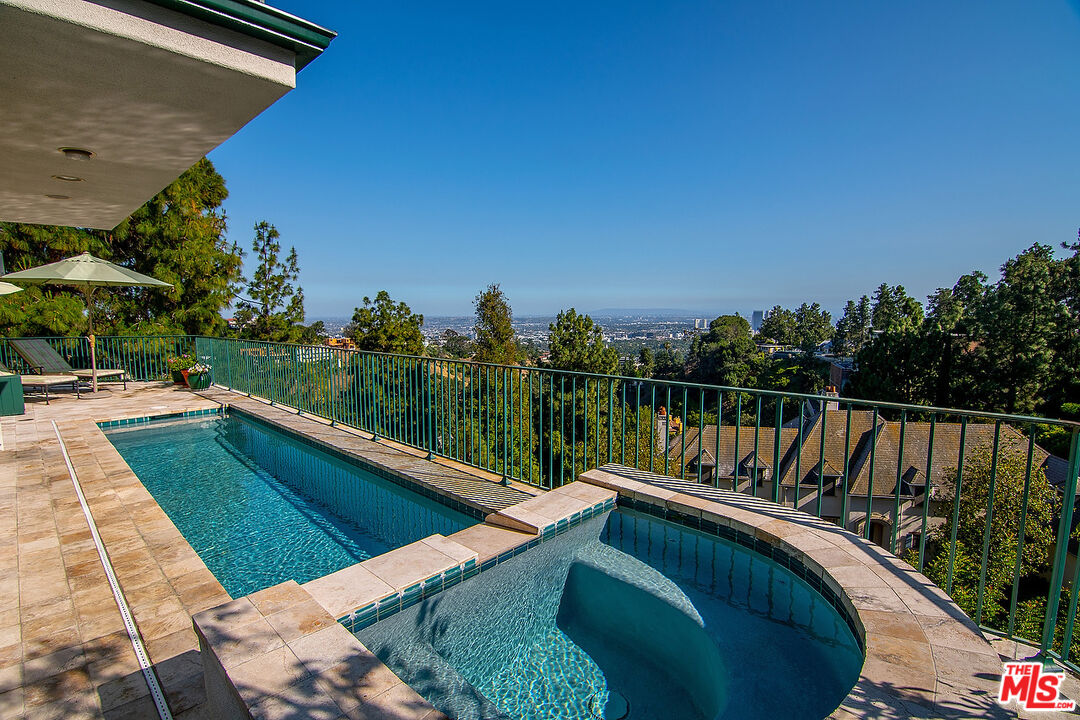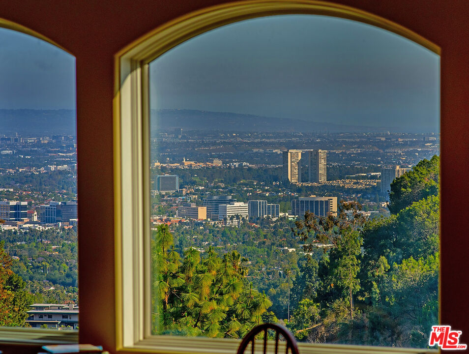 The quintessential private hideaway situated on an over 33,000 sq.ft. lot in Beverly Hills proper w/incredible city views. Enter through gates down a private driveway to the large motor court & 3-car garage. Step into the charming foyer leading into the open living room & adjoining dining area w/fireplace & walls of French doors overlooking the shimmering city views. The spacious country kitchen is complete with center island, professional appliances, & breakfast nook w/fp. Ascend the staircase to the lower level featuring a guest bdrm suite, office w/built-ins, & the tremendous master suite w/fp, dual baths, walk-in closet, & French doors leading to the sparkling lap pool & spa. The top floor offers great space for entertaining including family room w/fp, large built-in bar, & deck overlooking the breathtaking city lights. There is a fabulous detached guesthouse above the garage with private entrance, kitchenette, & bathroom. Quiet & serene living in the City of Beverly Hills!Interested in this Listing?