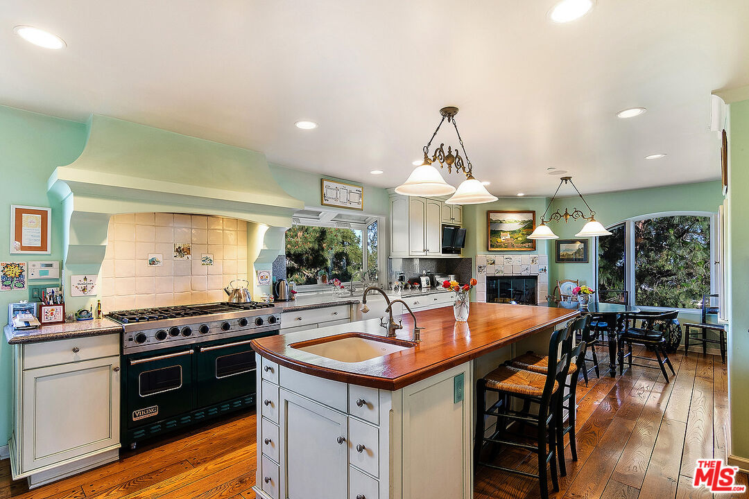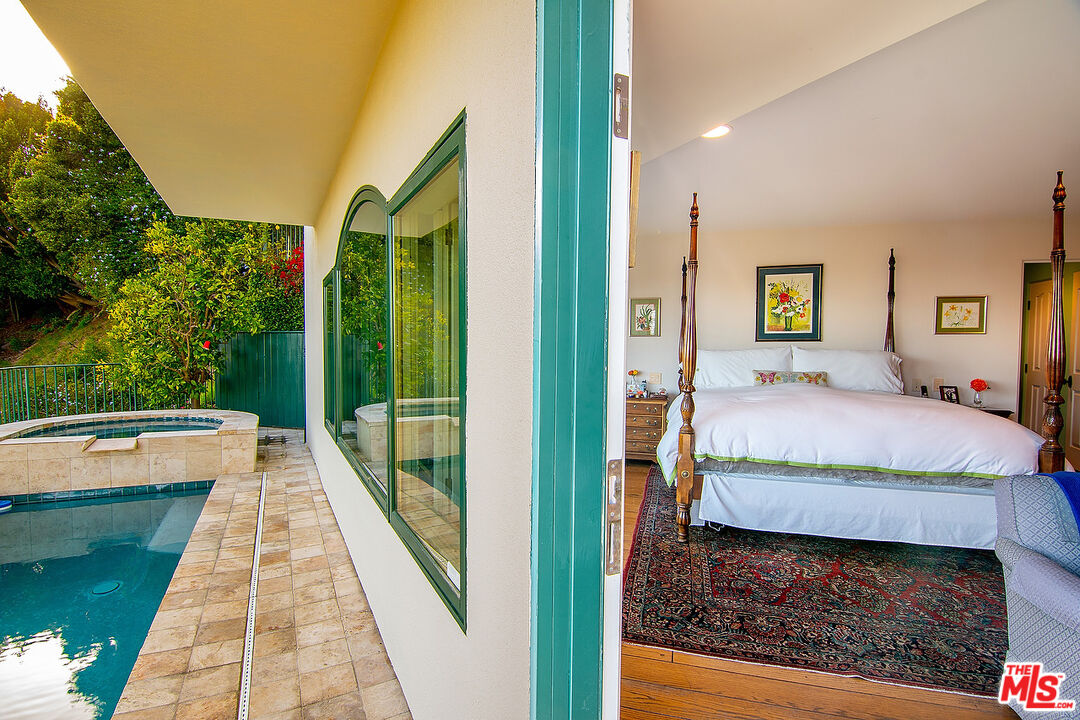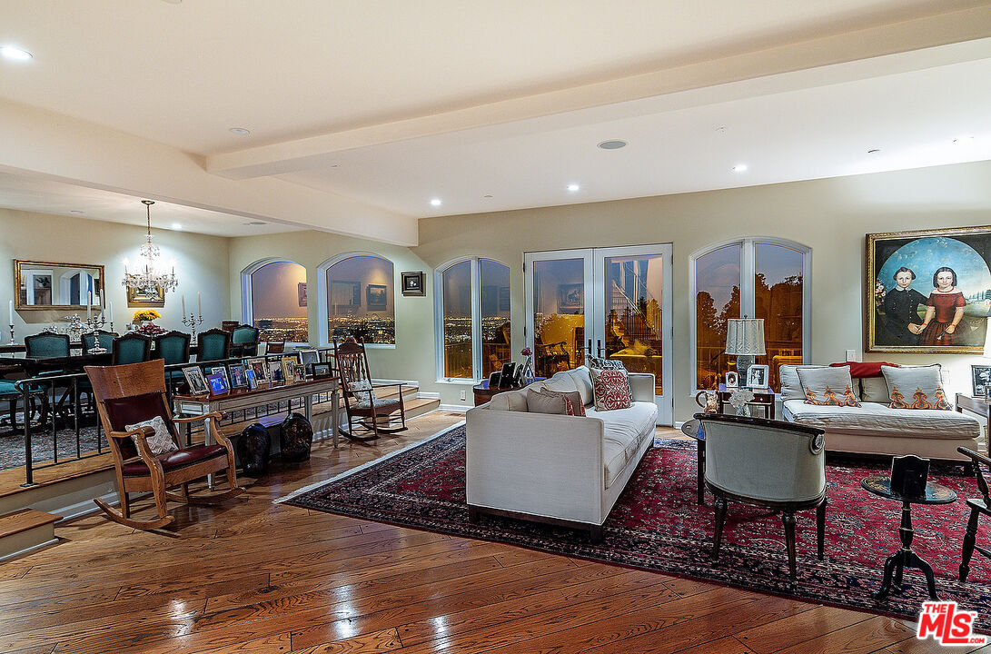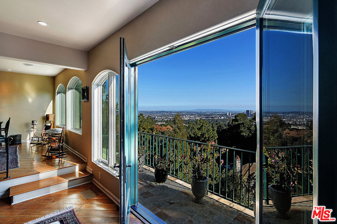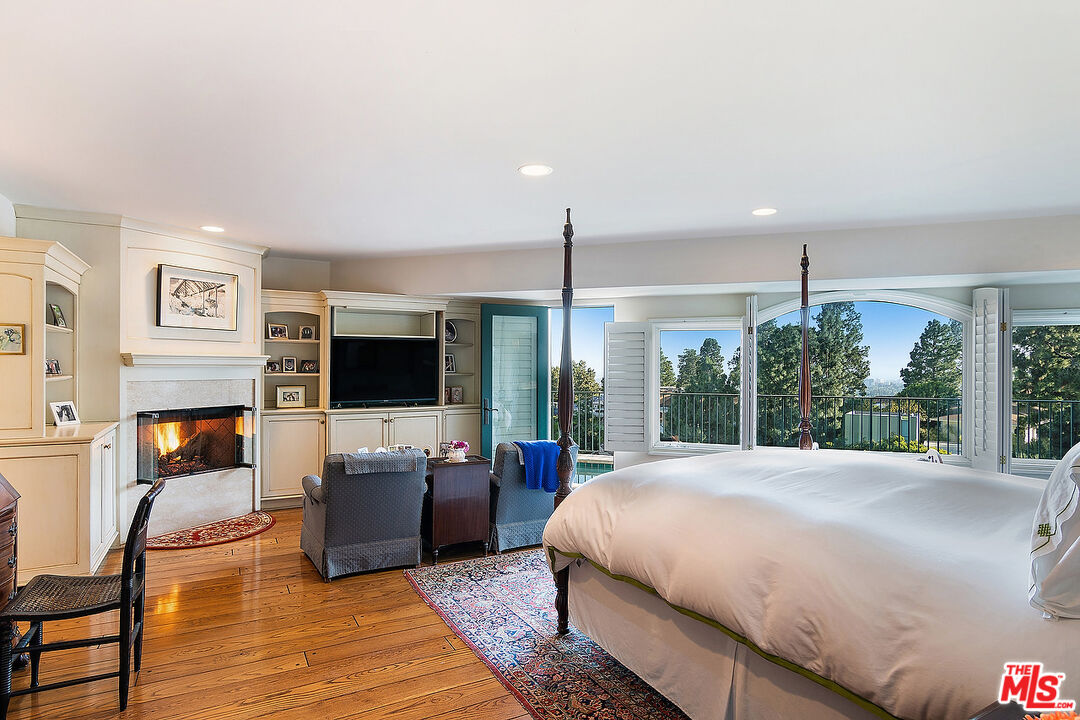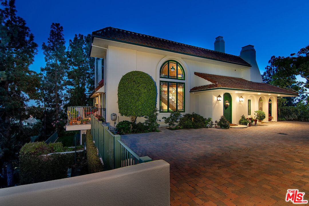 The quintessential private hideaway situated on an over 33,000 sq.ft. lot in Beverly Hills proper w/incredible city views. Enter through gates down a private driveway to the large motor court & 3-car garage. Step into the charming foyer leading into the open living room & adjoining dining area w/fireplace & walls of French doors overlooking the shimmering city views. The spacious country kitchen is complete with center island, professional appliances, & breakfast nook w/fp. Ascend the staircase to the lower level featuring a guest bdrm suite, office w/built-ins, & the tremendous master suite w/fp, dual baths, walk-in closet, & French doors leading to the sparkling lap pool & spa. The top floor offers great space for entertaining including family room w/fp, large built-in bar, & deck overlooking the breathtaking city lights. There is a fabulous detached guesthouse above the garage with private entrance, kitchenette, & bathroom. Quiet & serene living in the City of Beverly Hills!Interested in this Listing?