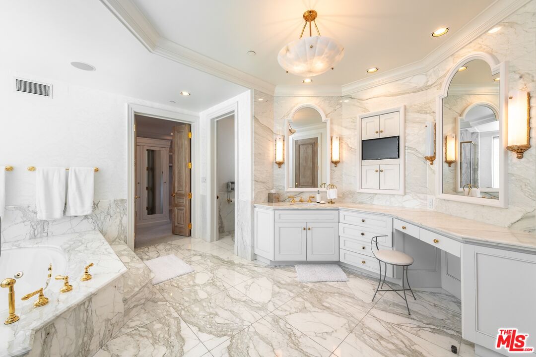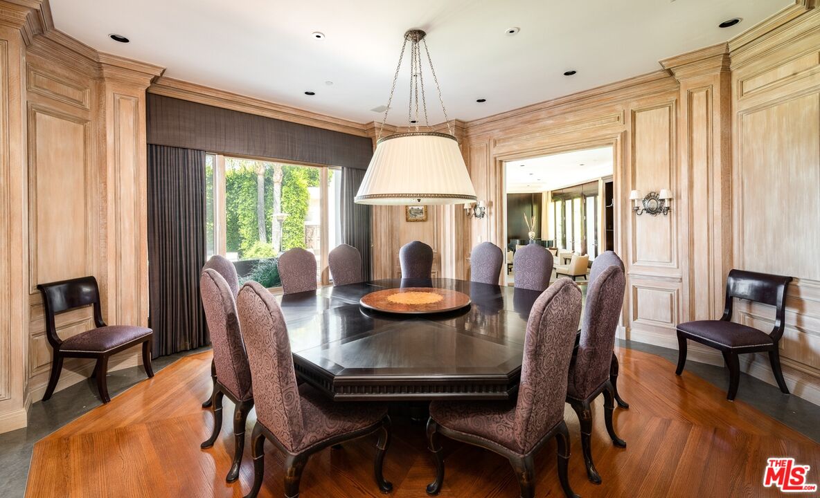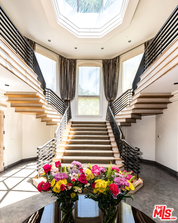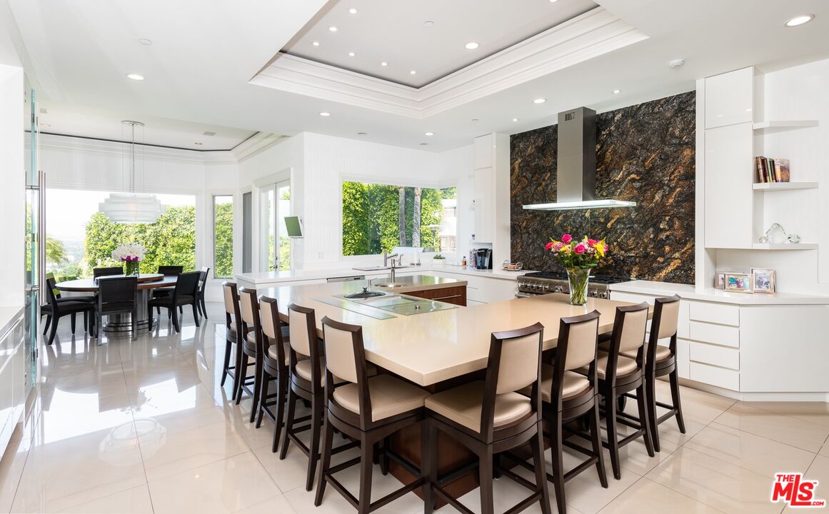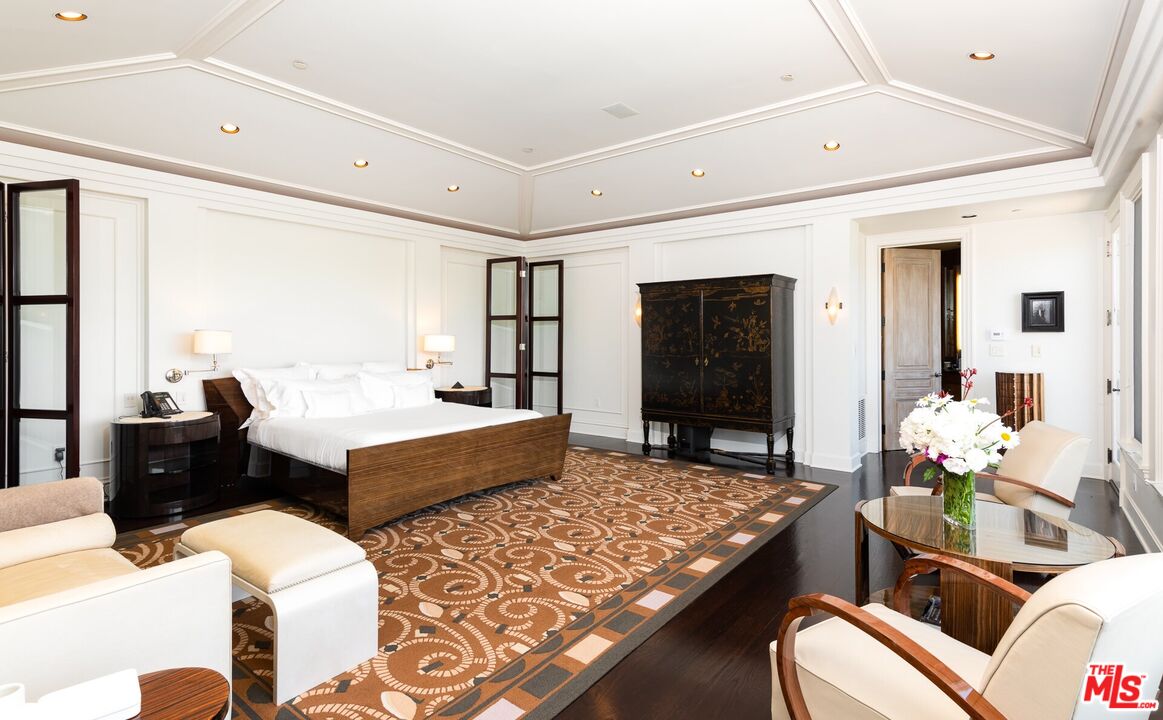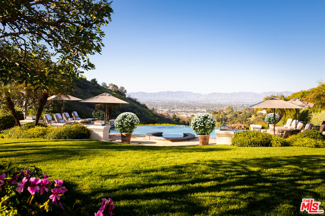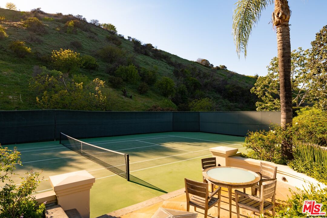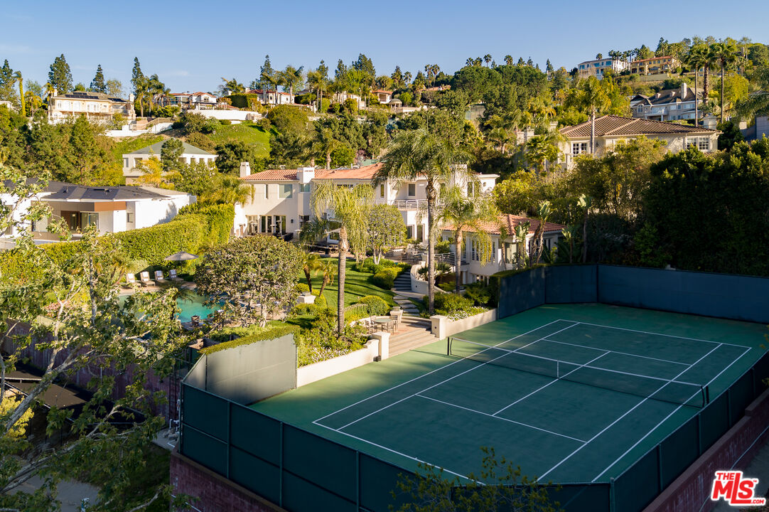 One of the few premier view properties in Mulholland Estates, this private tennis court art deco estate sits on 1.3 acres with spectacular city lights views and views of beautiful verdant hills . Located in one of the most coveted guard-gated communities, the home offers exceptional ceiling heights and perfect scale and elegance. This elegant art deco deco designer home offers grand formal living areas, a gourmet kitchen with separate prep space, and floor-to-ceiling glass doors open to an infinity pool, full-size tennis court, and expansive indoor outdoor entertaining areas. Additional highlights include a separate staff wing, gym, elevator, 10-car garage, and an entertainment level with a professional theater, game room, wine room, satellite kitchen, and offices. A detached two-story guesthouse completes this rare and refined offering.Interested in this Listing?