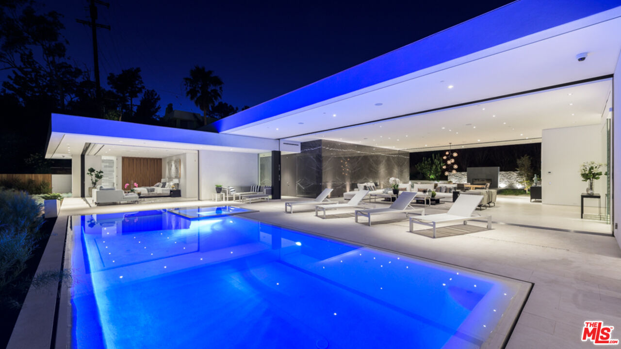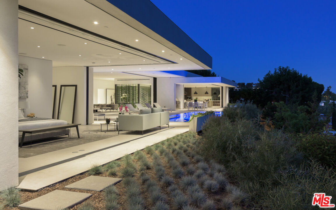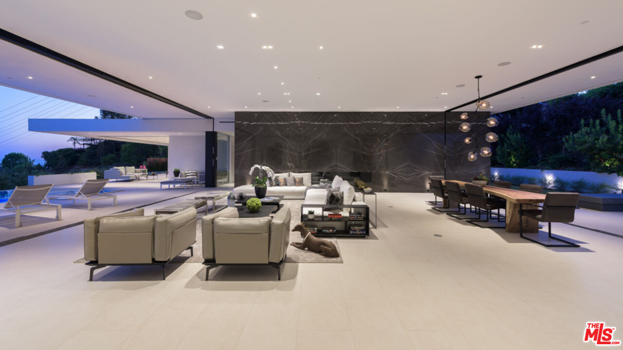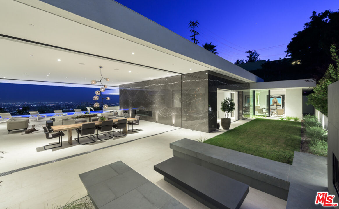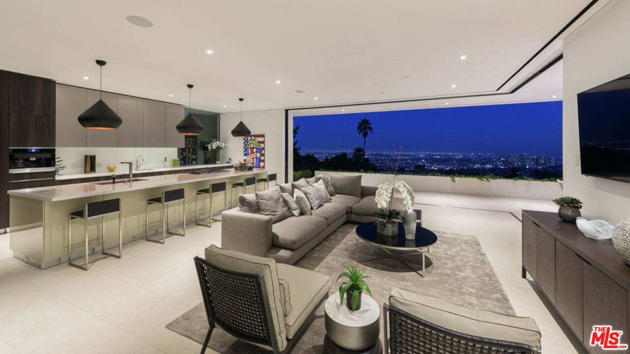10/10 Views in Prime Trousdale. Contemporary XTEN Designed home, spanning nearly 7,000 square over ONE STORY. Perfect layout blending indoor/outdoor living space, redefining what it looks like to entertain on top of the world- with views from DOWNTOWN to MALIBU. Walls of glass open with a single touch of a button. Using only the finest materials, the home features 5 beds/ 6 bath. Gated and secure motor court is walled off by a huge custom water feature that leads into a towering glass entry. Once inside, the open floor plan has soaring ceilings, custom nine-foot solid hardwood doors & nearly 12-foot tall Fleetwood walls of glass, which vanish into the walls are dazzling. Featuring a gorgeous movie theater, secondary FULL prep kitchen, Control 4 smart home & climate controlled 1,000 bottle glass wine cellar. Backyard has lush landscaping & an outdoor fireplace with built-in seating to warm up & gaze upon the endless views. A must see property at an incredible price. Pictures do not reflect current furniture- Shown to prequalified clients only.Interested in this Listing?