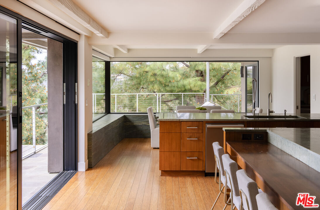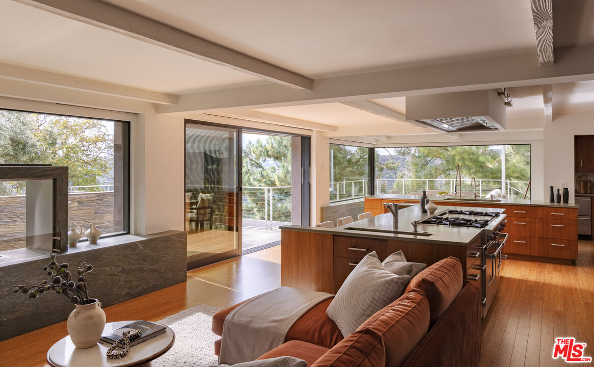 Perched in the prestigious enclave of Trousdale, this striking two-story mid-century estate seamlessly blends timeless architecture with breathtaking ocean and mountain views. Thoughtfully designed for both grand entertaining and intimate living, the residence boasts expansive interiors, a harmonious indoor-outdoor flow, and a gated motor court with a three-car garage. The main level features a sophisticated living room, formal dining area, private office, and a chef's kitchen outfitted with top-tier Miele and Wolf appliances. The impressive primary suite boasts dual bathrooms and walk-in closets, offering a serene retreat. Descending to the lower level, a casual family/media room and bar open onto an expansive backyard oasis. Enveloped by mature landscaping, this serene outdoor sanctuary offers covered and open-air patios, an oversized pool, and a tranquil meditation garden.Perfect for entertaining or intimate evenings. Close to Downtown Beverly Hills' renowned restaurants and boutiques.Interested in this Listing?
