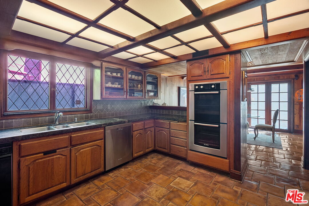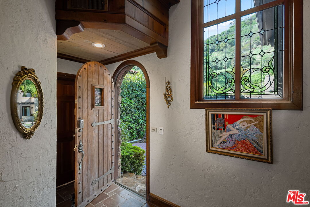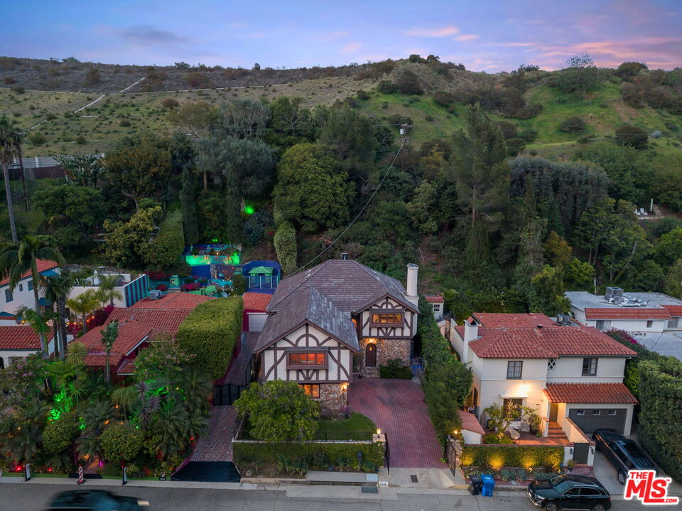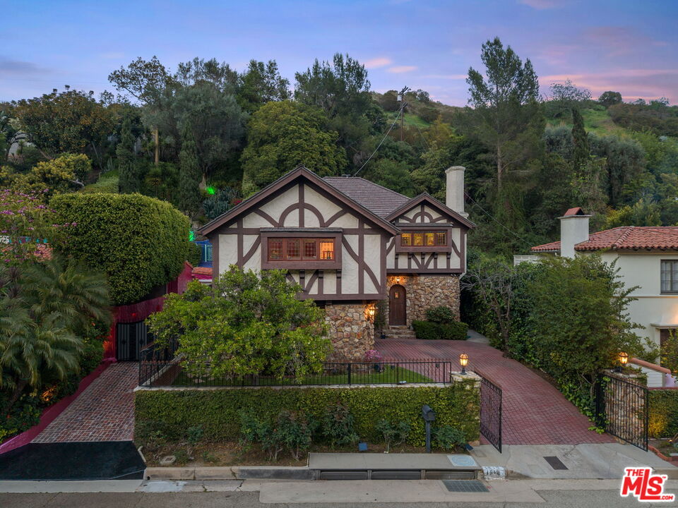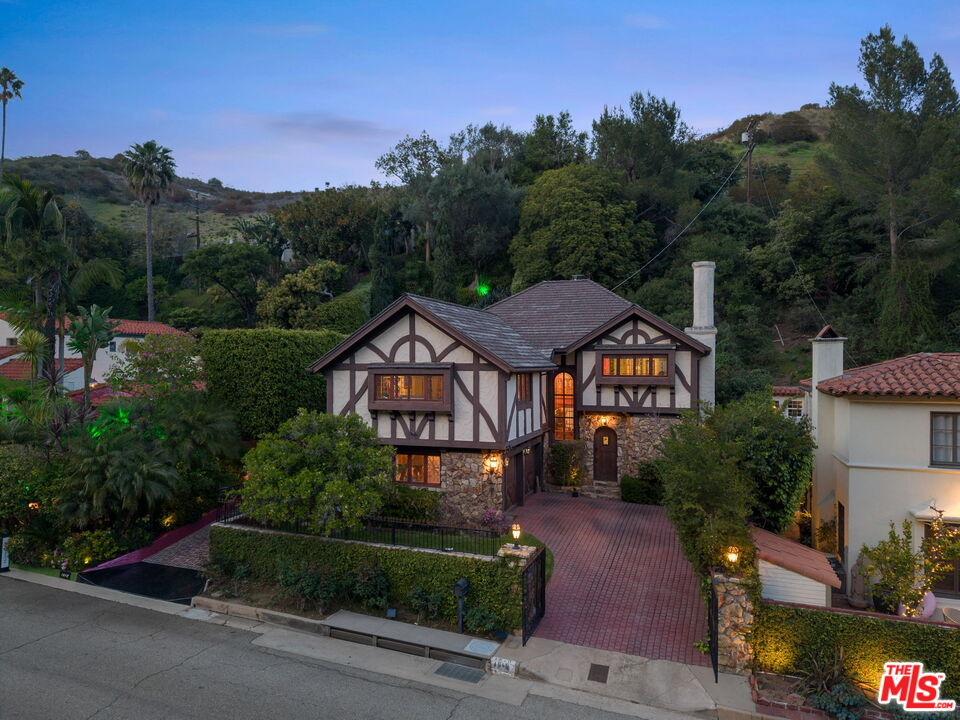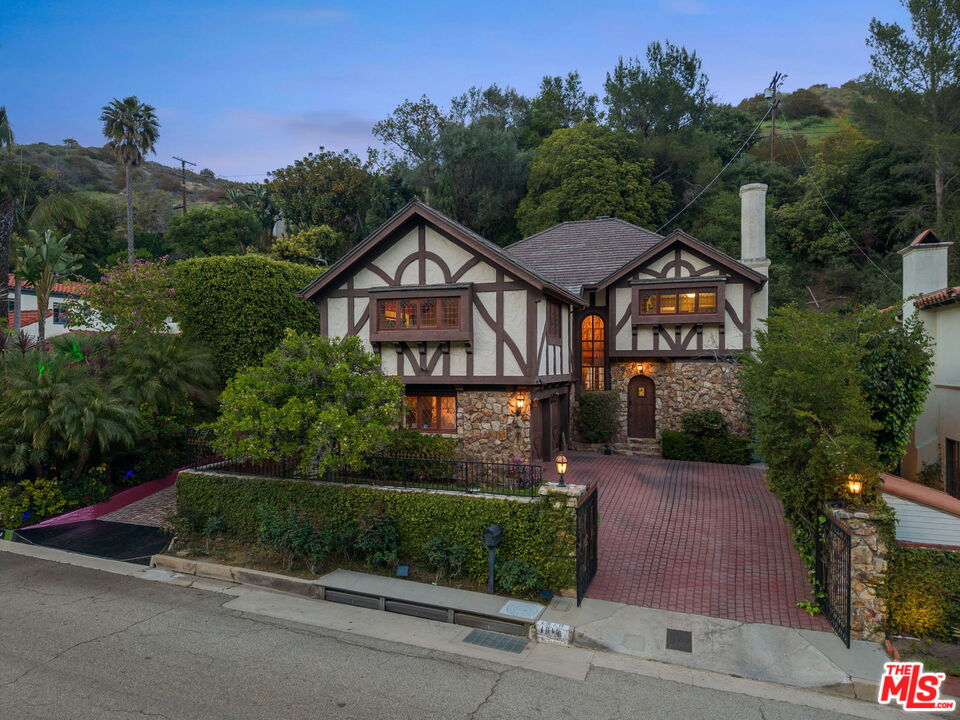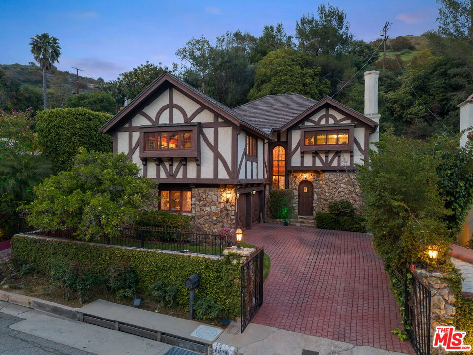 Welcome to 1610 N Beverly Drive, a storybook Tudor nestled in the heart of Beverly Hills Post Office where timeless elegance meets enchanting canyon living. Just minutes from the vibrant scene of Rodeo Drive and perched near the tranquil beauty of Franklin Canyon Reservoir, this stately 3 bedroom, 3 bath residence offers the perfect blend of charm, serenity, and centrality. From the moment you arrive, the home's curb appeal captivates with a stone clad exterior, classic Tudor lines, and a beautifully gated stone driveway. Step through the front door into an impressive foyer with soaring 20 foot ceilings, rich woodwork like the intricate carvings on the stairway, and original stained glass windows that bathe the space in warm, dappled light. The crown jewel of the home awaits on the second floor with a breathtaking living room featuring vaulted ceilings, vast scale, and a deep sense of character. It is a dramatic yet inviting space that feels as grand as it is intimate, ideal for both quiet evenings and unforgettable gatherings. Upstairs, the primary suite is its own private sanctuary with a spacious bedroom, relaxing lounge nook, walk in closets, and a refined en suite bath complete with soaking tub. Throughout the home, custom architectural details, rich hardwood floors, stunning woodwork, and a versatile layout with bonus spaces including a converted garage studio offer endless flexibility for today's lifestyle. Though the home maintains much of its original integrity, it has been lovingly and immaculately maintained by its current owners and stands as a true testament to enduring design. With multi level living, canyon views, and exquisite curb appeal, 1610 N Beverly Drive invites you to experience the rare balance of privacy, proximity, and unmistakable character.Interested in this Listing?