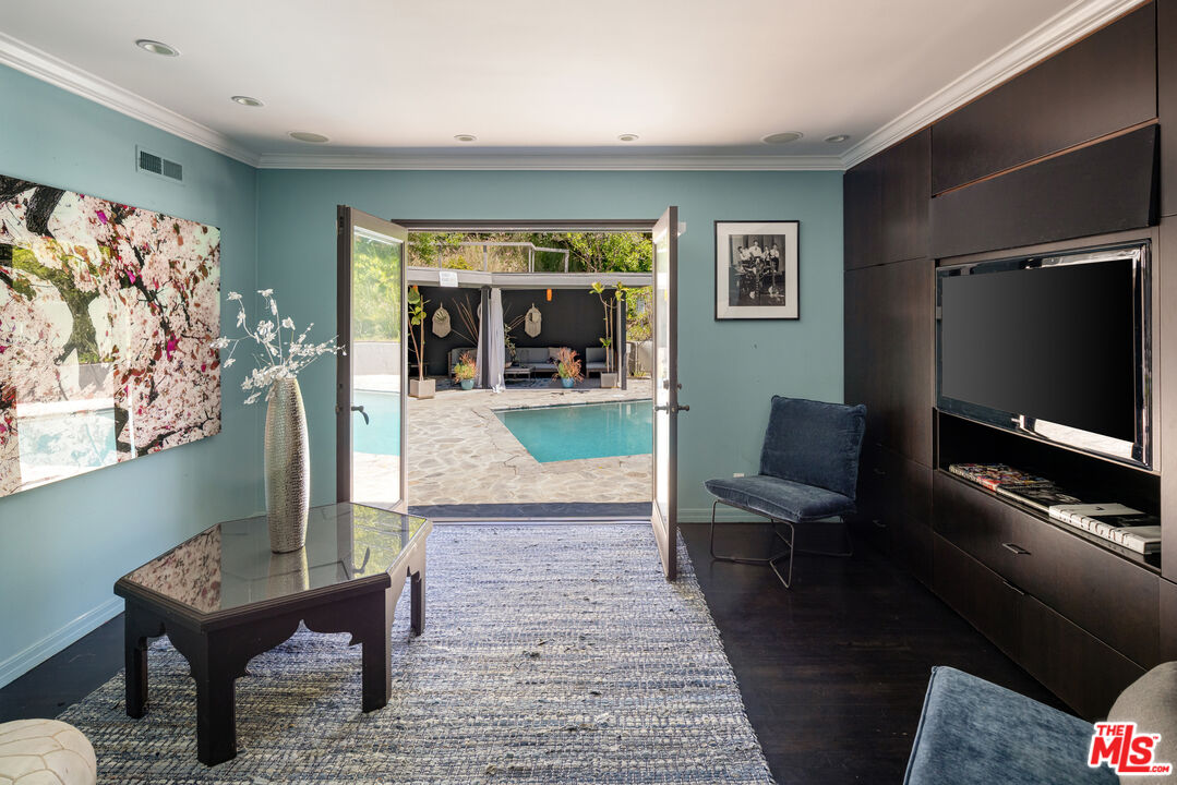 A beautifully reimagined mid-century ranch with timeless architectural lines, and huge flat backyard nestled in prime prestigious Beverly Hills Post Office. The home blends classic mid-century design with modern esthetics while still allowing for exciting potential further transformation. The expansive, light-filled floor plan flows seamlessly into a rare, large flat outdoor space completely private and framed by lush, mature landscaping. Perfect for both intimate gatherings and grand entertaining, the grounds feature a sparkling pool, in-ground spa, full cabana with bath, and an inviting fire pit lounge creating a true resort-like atmosphere.Inside, the 5-bedroom, 6.5-bath residence features a formal living room with a dramatic fireplace, a sophisticated dining room, a designer-curated kitchen with sunlit breakfast area, and a comfortable den/media lounge. The primary suite serves as a tranquil retreat with large walk-in closet and a spa-inspired bath. While the home is move-in ready and showcases timeless design, it also offers an exceptional opportunity for further customization or modernization ideal for the discerning buyer seeking to elevate this iconic property into a truly bespoke estate.Interested in this Listing?