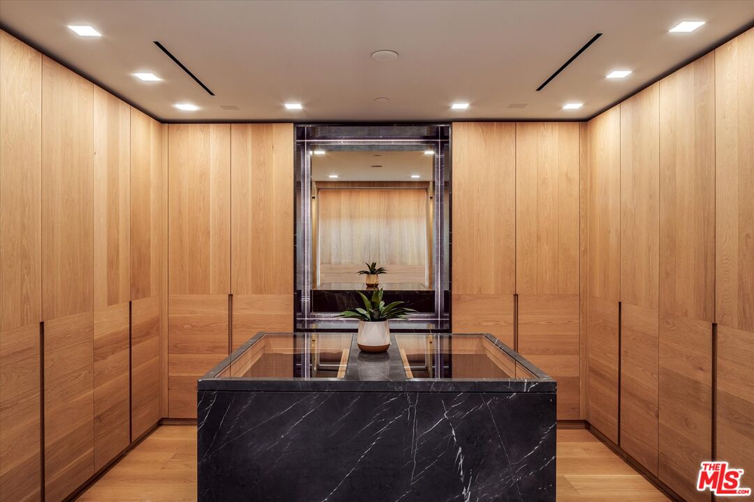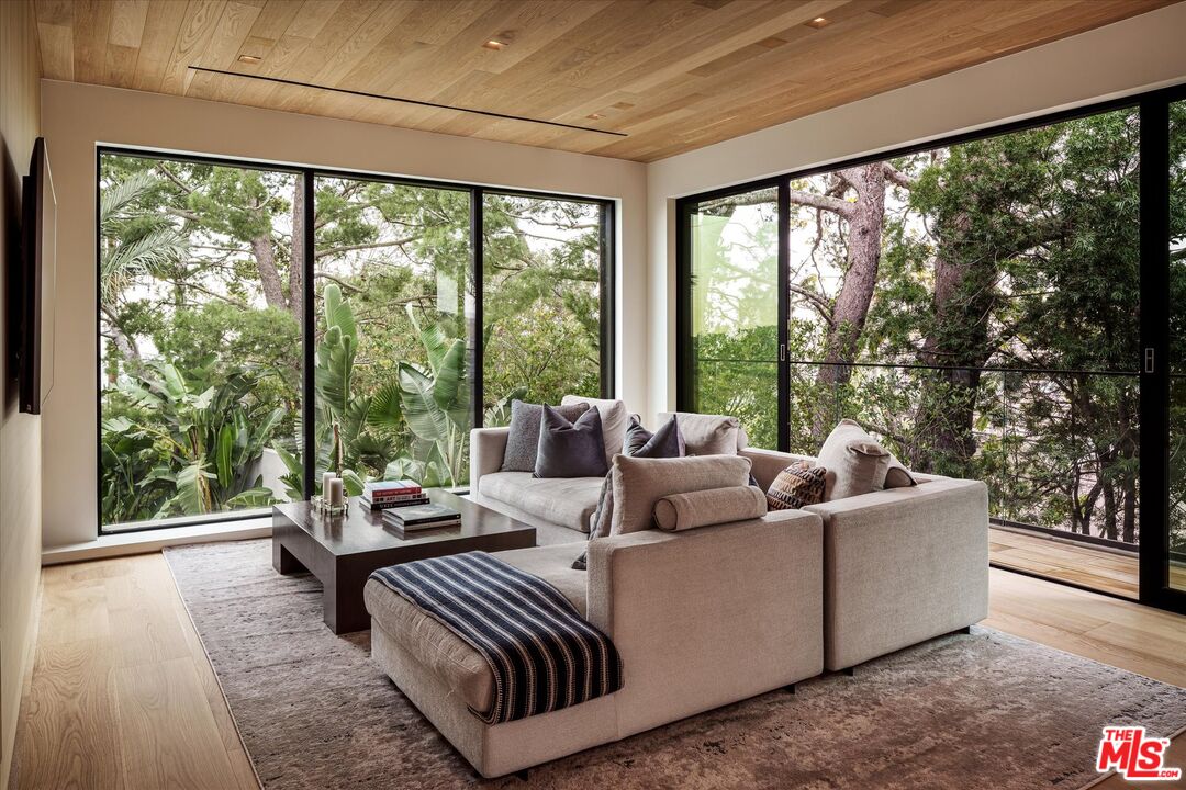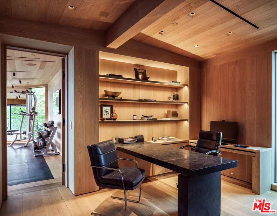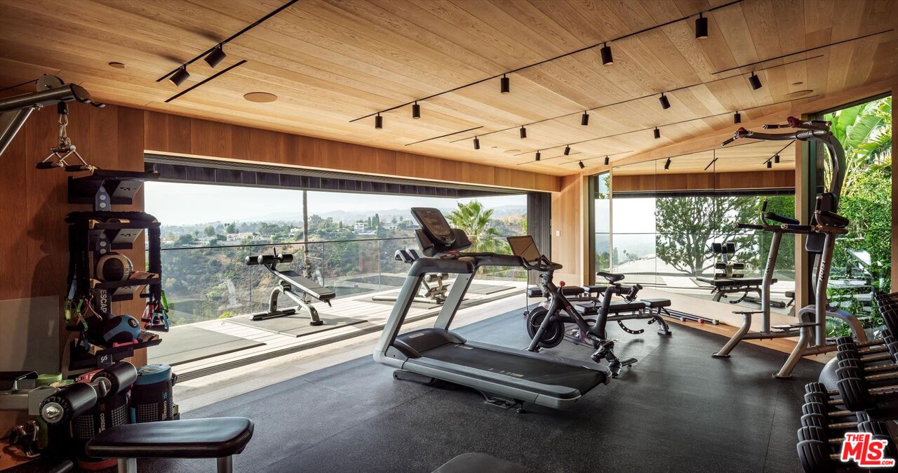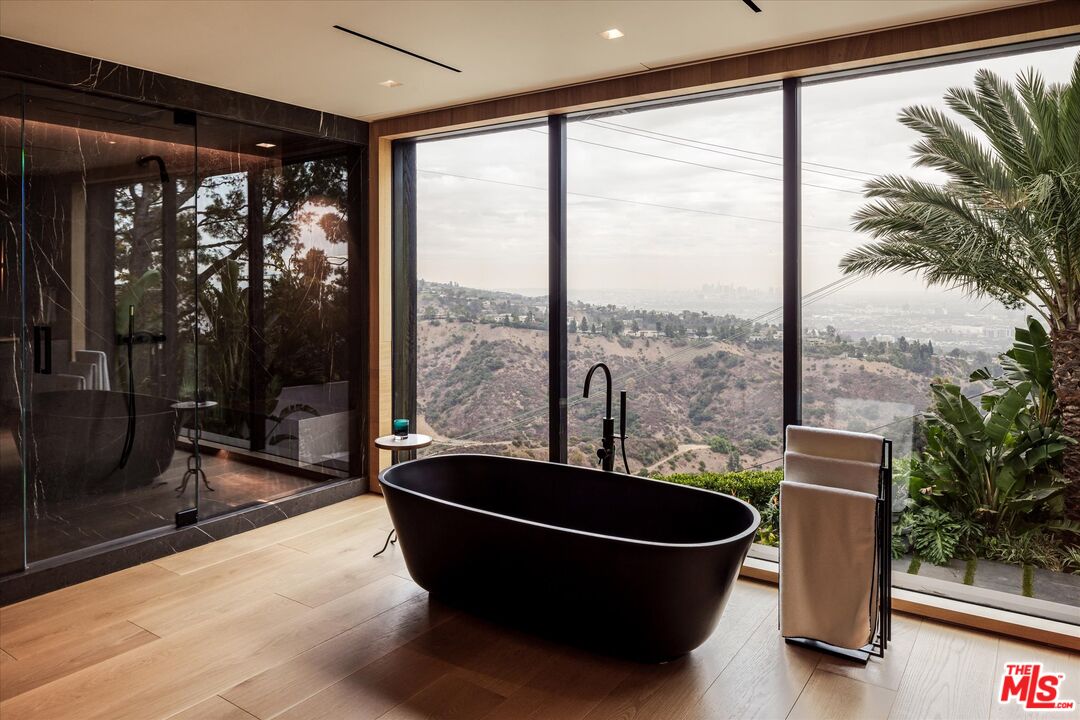 Nestled atop a private ridge in the heart of Beverly Hills, this exceptional residence by the renowned design firm Colab House offers sweeping, unobstructed views that stretch from the vibrant city skyline to the tranquil, rolling hills beyond. Inspired by the iconic Upper House Hotel in Hong Kong, this property seamlessly blends contemporary elegance with a serene sanctuary, tucked behind gates and verdant hedges to ensure the utmost privacy. The striking oak exterior opens to an expansive interior with 20-foot ceilings that flow between living spaces and the outdoors. A chef's kitchen with top-tier appliances, a spacious family room, and elegant guest accommodations are complemented by an impressive bar and dining area. Upstairs, the primary suite features a walk-in closet, sitting area, and a luxurious bathroom with panoramic views. A fully-equipped gym, office, and additional guest suite complete the second level. The backyard is a true escape with a vast lawn, sunken fire pit, infinity pool, and hot tub, all set against a backdrop of breathtaking sunsets. Fully integrated with Savant home automation, this home offers the ultimate in modern luxury.Interested in this Listing?