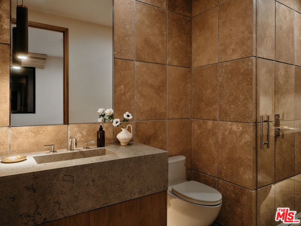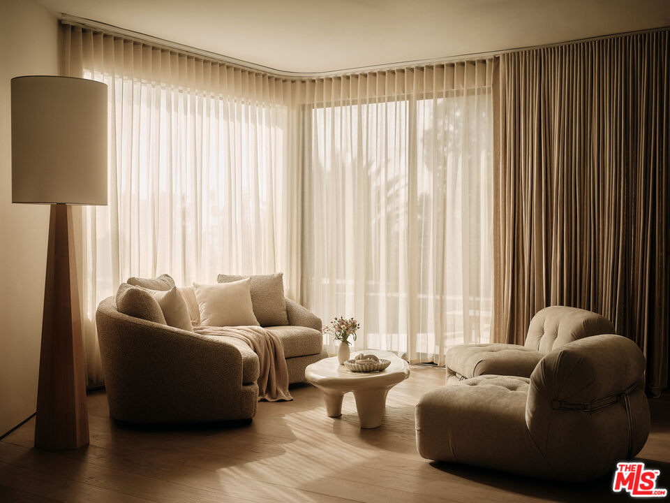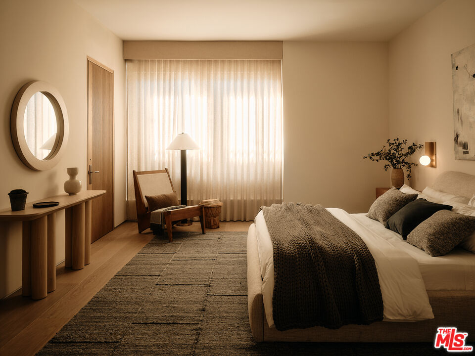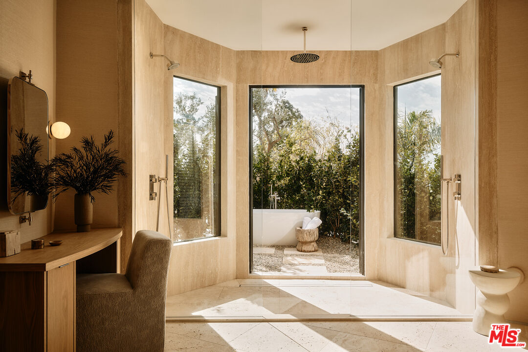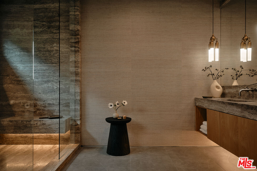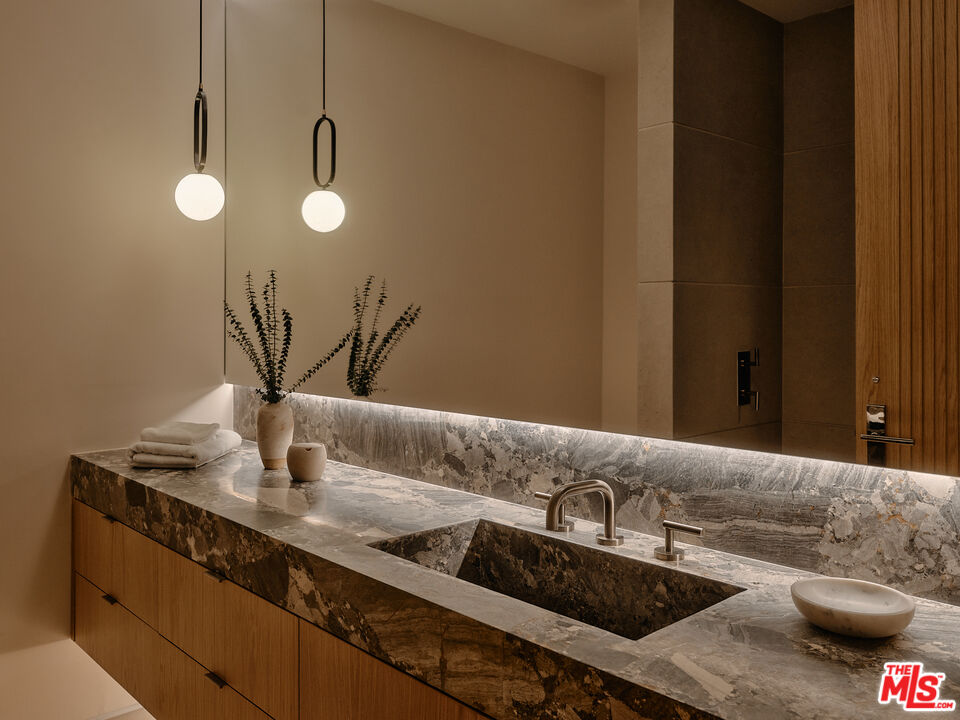 An organic, modern gem reimagining Ibiza living. A rare offering in one of the city's coveted Trousdale streets. Perched on a promontory, this exceptional residence blends seamlessly with its natural surroundings. Earthy tones and natural materials, including richly toned woods, marble, and travertine, create a warm and sophisticated atmosphere throughout. A private gated entrance opens to a long driveway, leading to a motor court framed by mature olive trees. The grand 12-foot-tall front door sets the stage for the architectural brilliance found within. Spanning 6,309sqft, the open floor plan flows effortlessly through the main living areas. The living and dining rooms are elegantly divided by a striking double-sided fireplace, while a library den connects seamlessly with the gourmet kitchen and outdoor spaces. The backyard is a true showstopper, extending horizontally to link the main public rooms and primary suite. An oversized pool, expansive terrace, and a large yard offer breathtaking panoramic views of the Santa Monica Mountains, Ocean and city skyline. Features include six bedrooms, nine bathrooms, and impeccable design. Experience unparalleled beauty, privacy, and elegance. Shown only to prequalified buyers.Interested in this Listing?