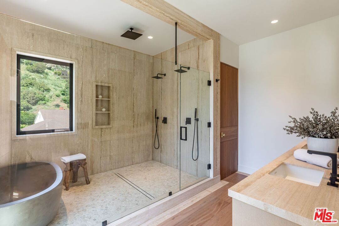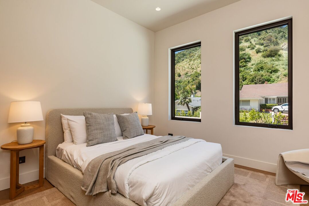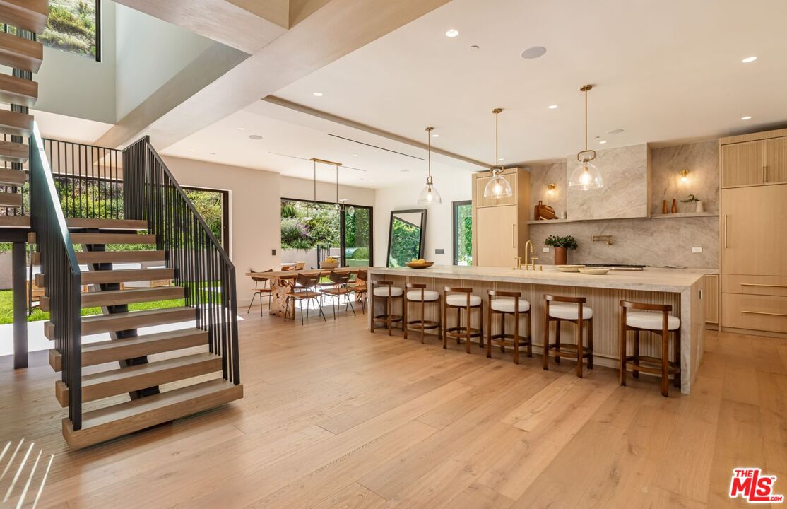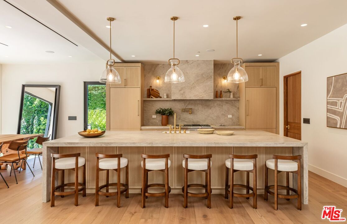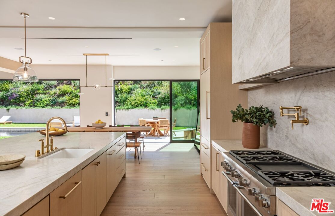 Discover ultimate luxury in this newly built European transitional home, where impeccable craftsmanship, custom finishes, and sophisticated design converge to create a truly exceptional residence. From the moment you enter through the statement pivoting front door, you're welcomed into a bright, airy space thoughtfully designed for both entertaining and everyday living. Expansive Fleetwood floor-to-ceiling pocket doors seamlessly blend indoor and outdoor living, bathing the interior in natural light and inviting in tranquil canyon breezes. At the heart of the home, the chef's kitchen features a striking 12-foot Taj Mahal quartzite island, professional Thermador appliances, custom cabinetry, and a full butler's pantry with a double oven, perfectly suited for culinary excellence. The open floorplan is unified by wide-plank European oak floors and a floating oak staircase, enhancing both flow and functionality. Four spacious en suite bedrooms offer custom walk-in closets and generous private decks with unobstructed canyon views. Set on a meticulously landscaped lot with mature olive trees, the exterior is designed for luxury and leisure. Enjoy multiple outdoor entertaining areas including a resort-style pool and spa, fully equipped outdoor kitchen, fire pit lounge, al fresco dining, and parking for up to six vehicles. A rare offering that harmonizes high-end materials, curated designer elements, and timeless elegance, this is more than a home, it's a lifestyle!Interested in this Listing?
