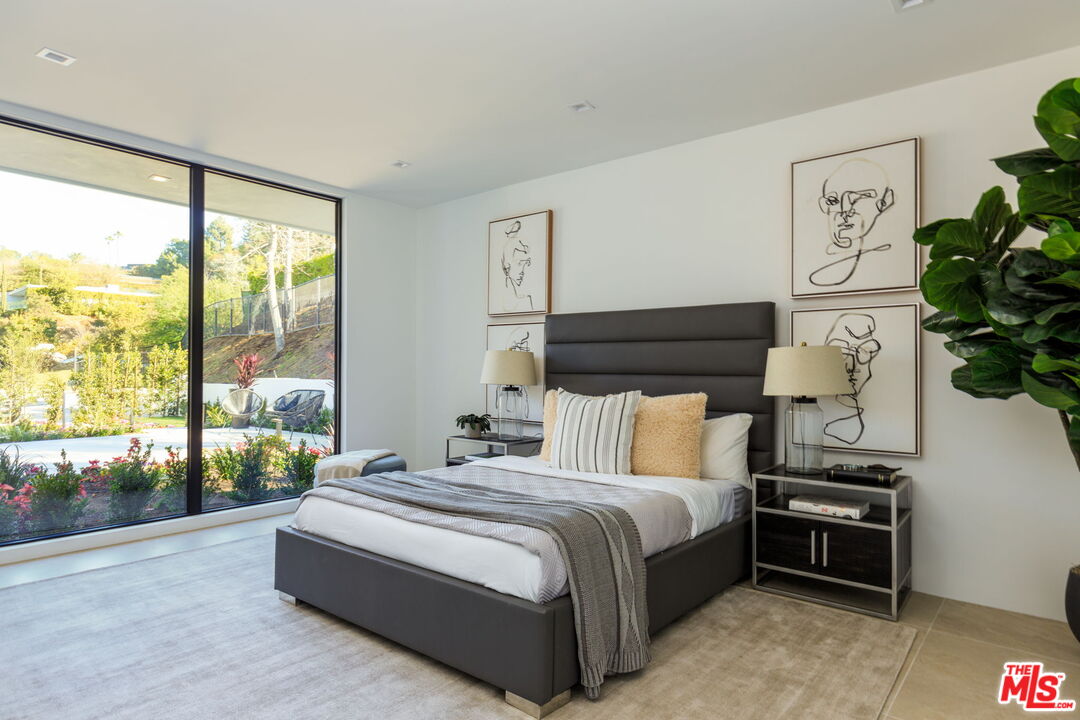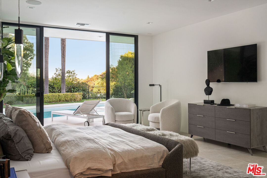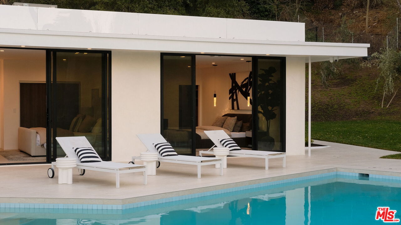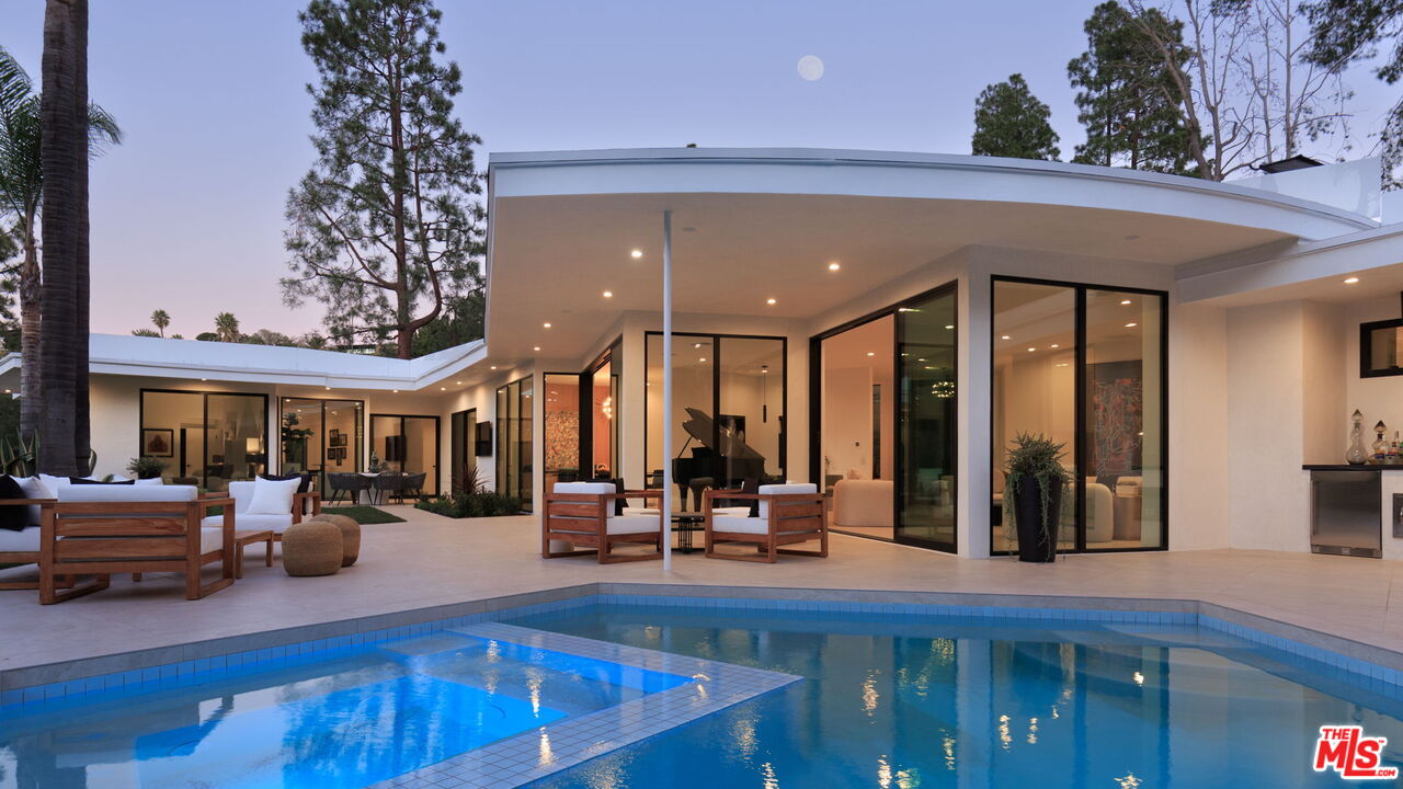 Welcome to this stunning 5 bedroom/6 bath Mid-Century home in Beverly Hills' coveted Trousdale Estates. Situated on nearly half an acre of flat land, you'll discover the quintessential Trousdale layout with walls of glass showcasing the over-sized pool and twinkling canyon lights. Pull behind the gate, and you'll feel worlds away from LA. Enter the foyer, and you'll immediately be drawn into the grand living room with statement fireplace, a sunken bar and an adjacent formal dining room. The doors open to provide seamless access to the expansive outdoor patio with flexible seating areas, an outdoor dining area and firepit. The large, original pool has been newly re-finished and is ready for a leisurely afternoon dip or a quick round of laps. Beyond the pool sits an expansive lawn. Big enough for a game of football or soccer, and serene enough for an afternoon yoga session in the shade of a structural oak tree and mature palms in a park-like setting. Three bedrooms sit at the back of the property. The primary bedroom anchors the home, offering dual closets and an en-suite bathroom with soaking tub. Two additional bedrooms and a large office with patio round out the rear of the home. Afternoon sun pours into the chef's kitchen with island seating and an over-sized breakfast nook. You'll also find an additional bedroom perfect for an au pair or in-law. Beyond the dining nook lies a large family or game room plus an additional bedroom perfect for guests. Complete with a separate entrance this area could also be utilized as a studio space or private home office. Originally built in 1960, this home was fully renovated in meticulous detail over the last year-plus. Its versatile layout offers just the right home for a wide range of buyers.Interested in this Listing?