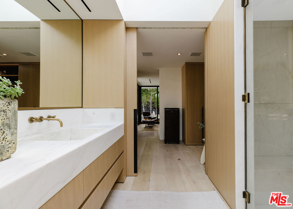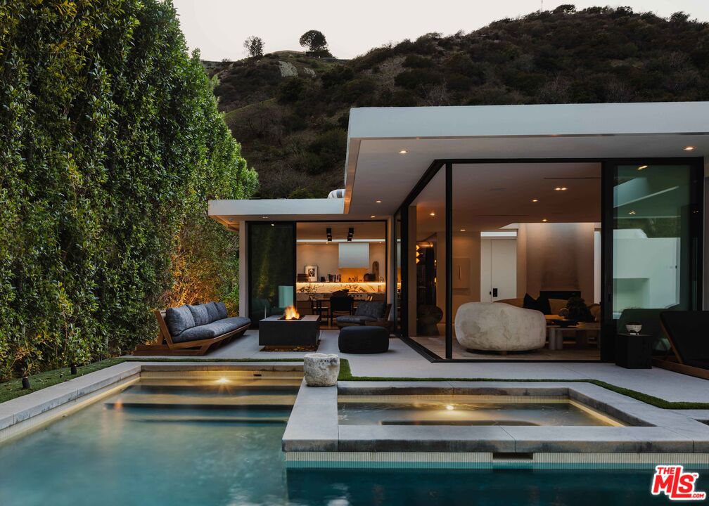 Tucked away just north of Sunset and the iconic Beverly Hills Hotel, 1952 North Beverly Drive is a sleek, single-story home that nails the balance between high-end design and laid-back California living. Designed by Yoram LePair (a Gehry Partners alum) and lit to perfection by Mark Raissen (Sunset Tower Bar, San Vicente Bungalows), the home is all about clean lines, tons of natural light, and indoor-outdoor flow. You'll find walls of glass, gorgeous Rift Oak paneling, and wide French white oak floors throughout. The open kitchen and dining area are decked out with top-of-the-line Sub-Zero, Wolf, and Miele appliances, a wine fridge for 300 bottles, and a wet bar with Saint Laurent marble and blackened steel accents. The formal living room looks out over the saltwater pool and hillside, making it perfect for entertaining or relaxing in total peace. The primary suite is spacious with an oversized walk-in closet, a luxurious stone-covered bathroom, and sleek pocket doors for added privacy. There's also a second bedroom currently used as a cozy den, with a hidden full bath tucked behind beautiful oak paneling. Outside feels like a boutique resort - there's a firepit lounge with teak sofas, a sparkling pool and spa with Japanese tile, another outdoor fireplace, and a built-in sound system hidden in the landscaping. Everything's automated with Control4, JOSH AI, and Lutron, and the windows and skylights are custom by Metal Window Corp. The permitted ADU (with its own address at 1954 North Beverly) is the ultimate guest suite with its own chic bathroom, refrigerated drawers, and custom closet. Plus, there's a separate laundry/tech room with extra wine storage and space for all your gear. The front of the home is super understated, with native landscaping by Elysian Landscapes and a custom steel gate that keeps everything private while giving zero clue to the stunning detail inside.Interested in this Listing?