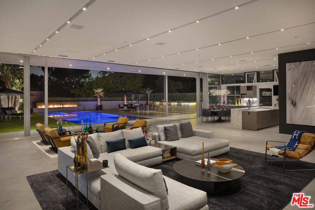 In the heart of prestigious Trousdale Estates, this remarkable residence reimagines resort living with the spirit of a private Balinese sanctuary. Set on an expansive 19,977-square-foot lot, the home unfolds as a zen-inspired contemporary marvel, where organic textures, voluminous proportions, and masterful craftsmanship converge. Upon arrival, a grand entryway leads to an elongated gallery, creating a striking prelude to the dramatic open floor plan beyond. Walls of glass wrap the living, dining, media, and kitchen spaces, blurring the boundary between interior and exterior with 100 feet of automated Fleetwood sliding panels. Sunlight floods every corner, enhancing the sense of openness and drawing focus to the high ceilings and carefully layered materials that give the home its rich, immersive warmth. The kitchen, designed by Porcelanosa and Miele, overlooks the outdoor living areas and transitions effortlessly to a fully appointed exterior kitchendesigned for elevated gatherings under the sky. The primary suite offers a private retreat within the retreat, anchored by a sculptural stone wall and fireplace, and opening to a secluded deck with its own fire feature overlooking the pond and expansive gardens. Every element of the landscape and architecture feels intentional, curated to create a continuous dialogue between nature and structure. As the glass walls glide away, the home spills into a Balinese-inspired oasis, where a zero-edge infinity pool appears to float into the interiors, and a large koi pond, framed by a cascading waterfall and fire pit, amplifies the atmosphere of tranquil luxury. With five bedrooms and six baths, the residence offers the rare combination of immersive privacy and proximity to world-class dining and shopping, just moments from the heart of Beverly Hills yet tucked into the serene elevation of Trousdale.Interested in this Listing?