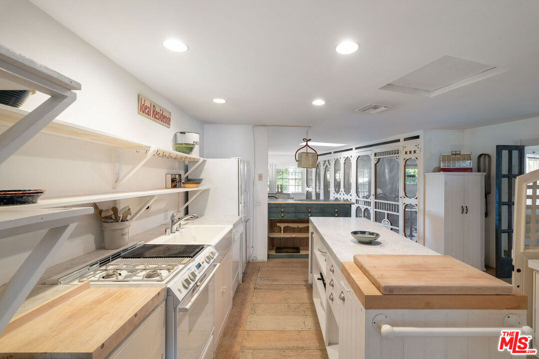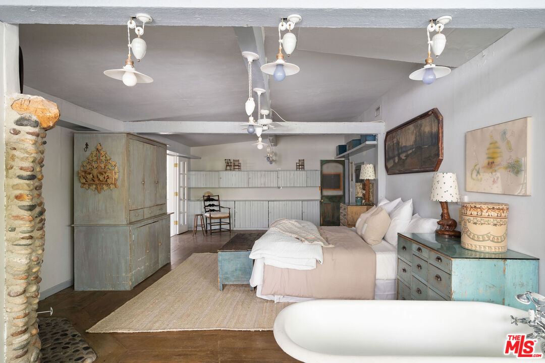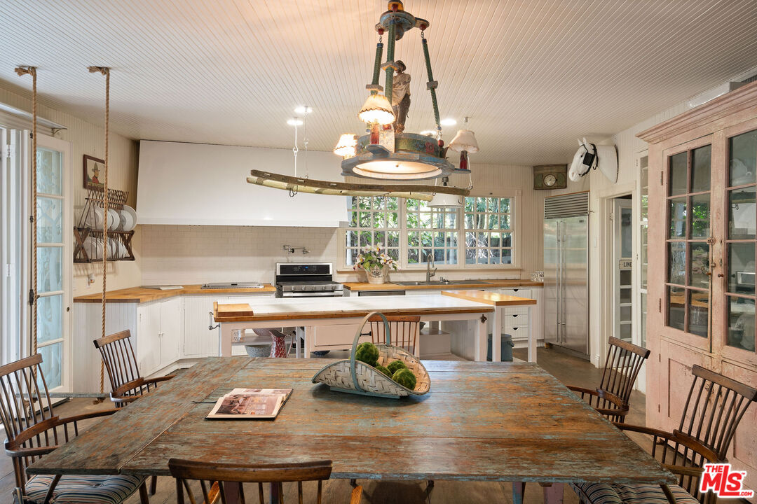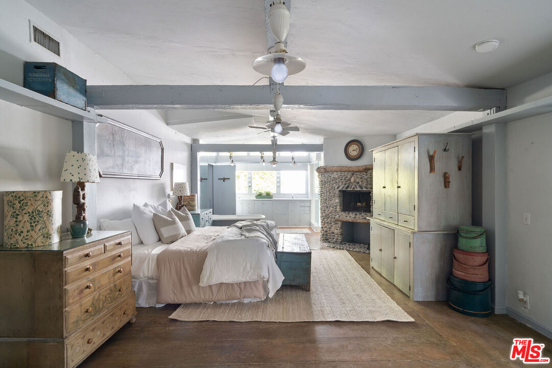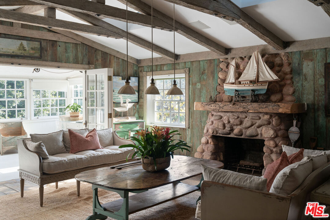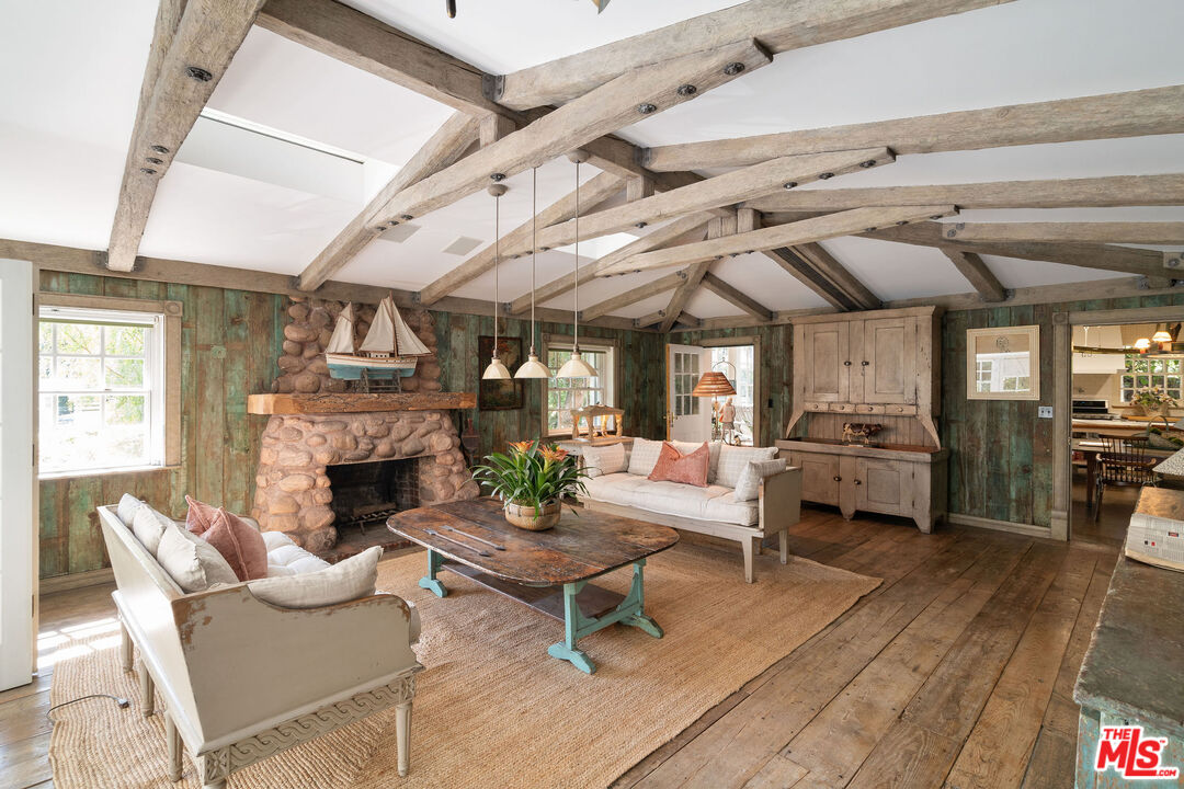Beautifully Updated Beverly Hills Home with Guest Suites & Income Potential. Welcome to this inviting Beverly Hills retreat, rich with classic character and thoughtful design. Inside, you'll find wide plank wood floors, exposed beams, a cozy stone fireplace, and warm, earthy tones that make the space feel both stylish and inviting. The kitchen is a dream for anyone who loves to cook or entertain, with a big island topped in wood and marble, built-in cooktops, and a roomy walk-in pantry. Off the kitchen, double doors open up to a sunny garden room with peaceful views of the lush backyard the perfect spot to relax. The primary bedroom feels like a retreat, complete with its own fireplace, wood floors, beamed ceilings, and a bright en-suite bathroom. Outside is a covered patio that runs along the side of the home, ideal for morning coffee or winding down at the end of the day. Upstairs, there are two large bedrooms, each with its own balcony and kitchenette great for guests, in-laws, or even as rental suites. One even has a cool bar-style counter and a big statement window. Downstairs, there's a separate unit with a full kitchen, giving you even more options to host or rent out. Whether you want to live in the main home and rent out the extra spaces or just enjoy it all for yourself, this property offers a rare mix of comfort, character, and income potential all in one of the best locations in Beverly Hills. Don't miss this special opportunity!Interested in this Listing?