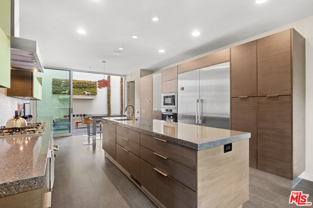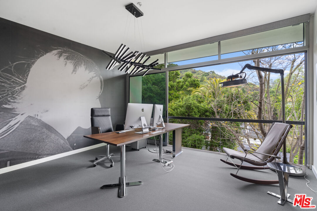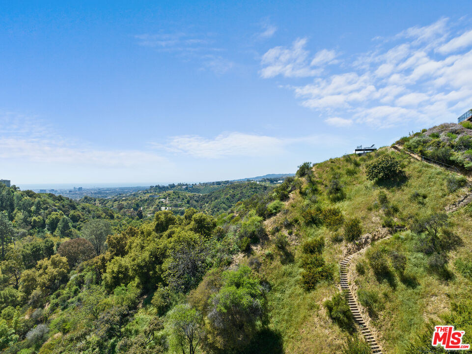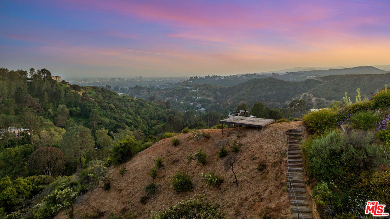 This secluded modern residence, crafted by renowned architect Steven Ehrlich after time spent in Africa with interiors by Mark Brunetz, offers unparalleled privacy at the end of a gated long driveway while surrounded by lush greenery. Floor-to-ceiling windows flood the living spaces with natural light and treetop views of the surrounding hills. The main level features a grand living room with a magnificent Murano glass chandelier, a functional fireplace, a massive family room with an adjacent crocodile leather imprint walled powder room, and a formal dining room. The custom kitchen boasts top-of-the-line Miele stainless steel appliances, Gaggenau and Fisher & Paykel, and an oversized island for casual dining. Additionally, the residence features a motorcourt for convenient parking and easy access to the home. Upstairs, the primary suite offers automatic shades along with blackout curtains, a TV that elegantly descends from the ceiling, as well as a walk-in closet with built-in walls. A spa-like en-suite bathroom adjoins with exquisite Bisazza tilework which cascades from light to dark as you walk through the room, plus a spa bathtub, steam shower and an in-wall Ariston espresso maker. The outdoor space includes a heated spa and pool with outdoor entertaining areas and a viewing deck that offers panoramic views from the top of the hill behind the home connected by a charming staircase. Three guest bedrooms, one with an en-suite bath, provide ample accommodation, while the additional guest bedrooms share a bathroom complete with both a shower and a bathtub. Underneath, a versatile space awaits, with a room equipped with a bathroom and shower which has easy access to the pool and can serve as a workout room or workplace. With meticulous attention to detail and modern conveniences throughout, this exceptional residence epitomizes luxury living in a serene oasis.Interested in this Listing?