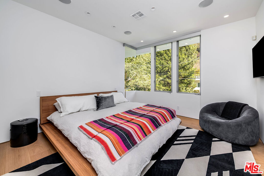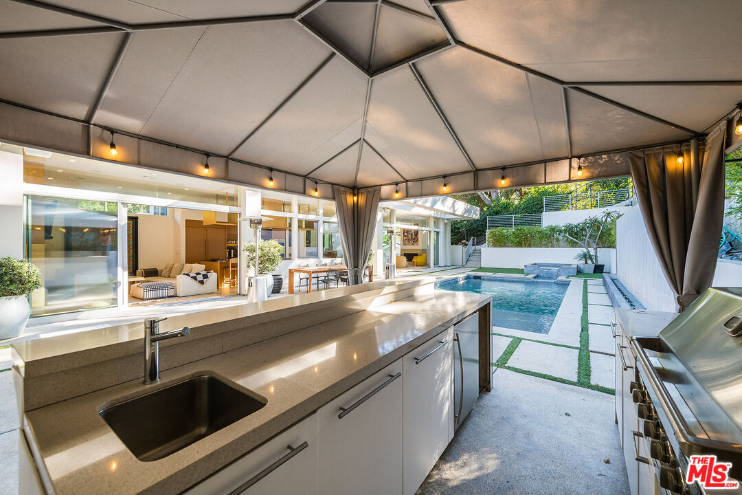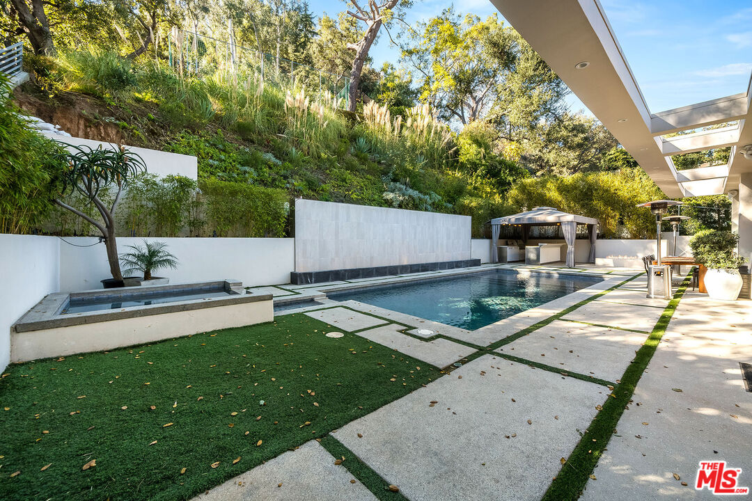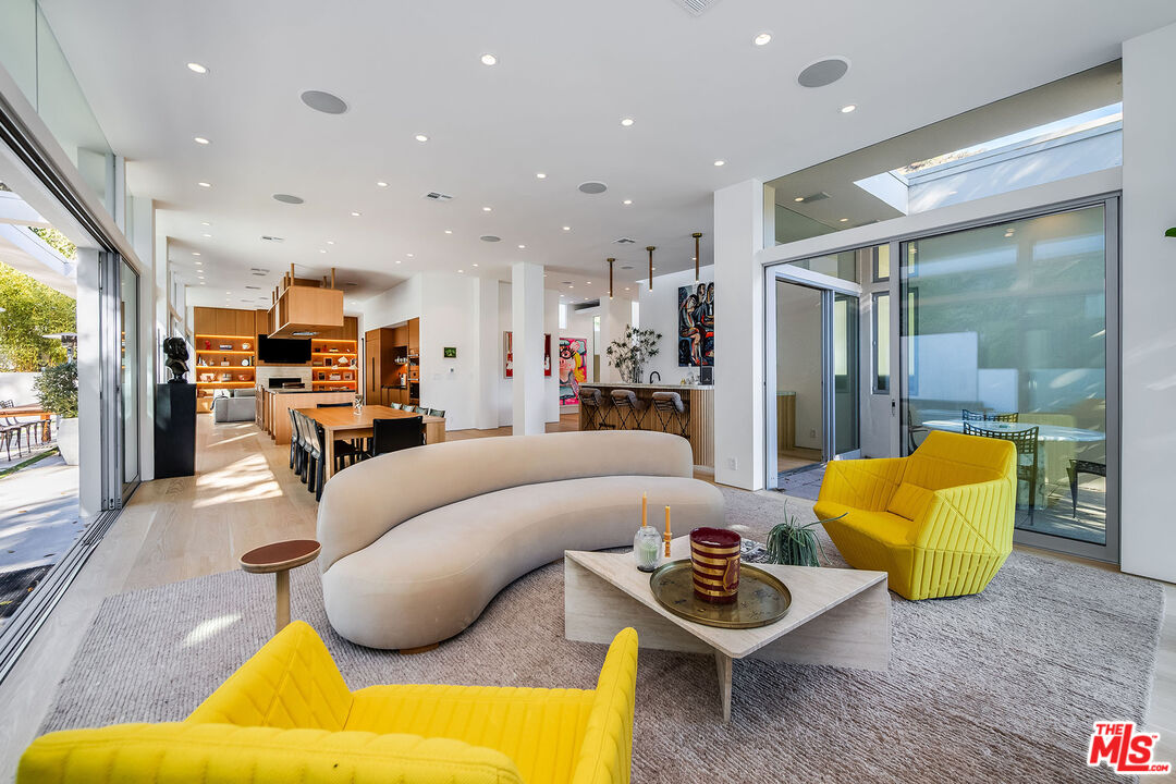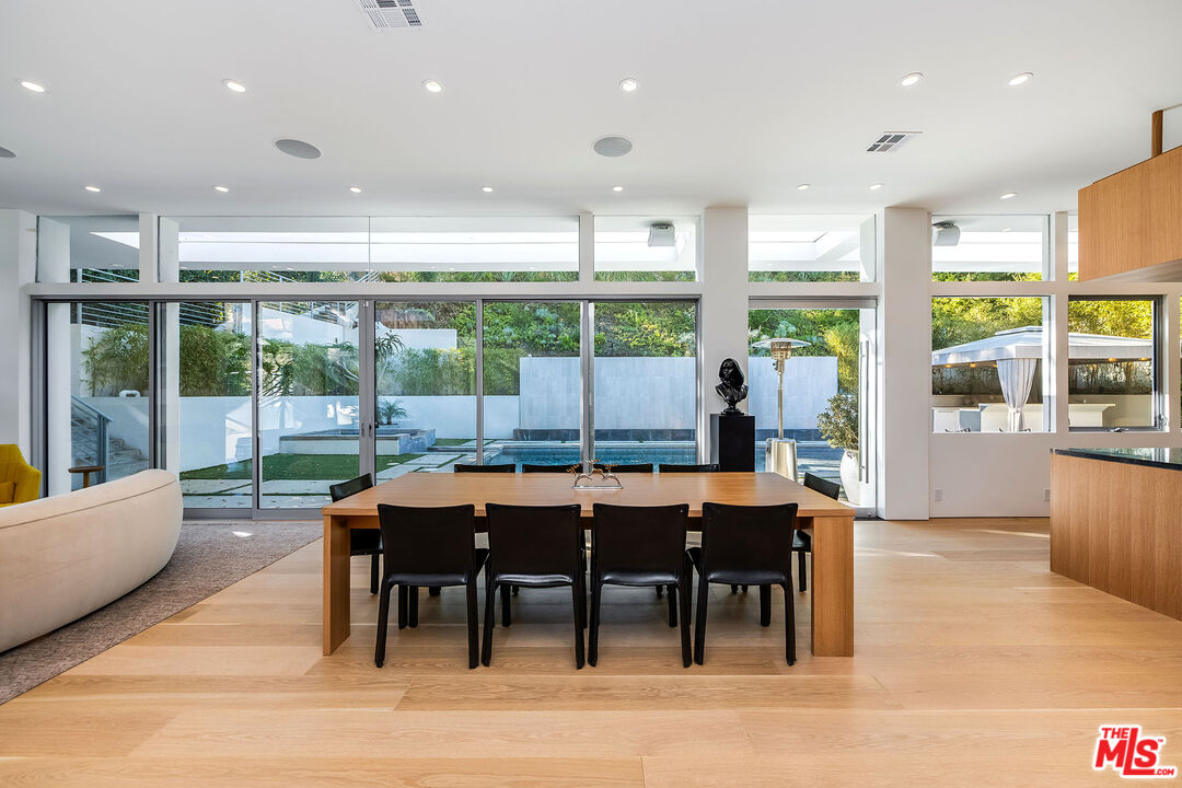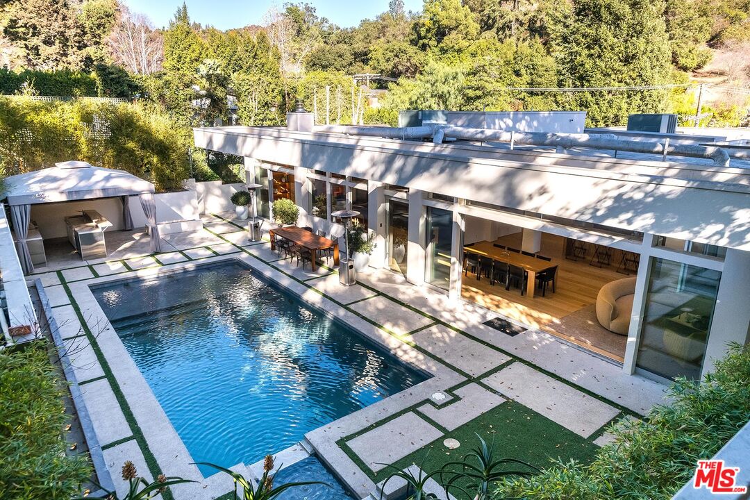 Stunning Contemporary on lower Bowmont Drive, just minutes from the heart of Beverly Hills. This fabulous home boasts high ceilings, gorgeous finishes with no expense spared, floor to ceiling windows and doors throughout that welcome bright light & open to the wonderful exterior space. Just remodeled fabulous open chef's kitchen w/large island, top-of-the line appliances w/double refrigerator/freezer & double ovens. Kitchen opens to the family rm. Great open living & dining space w/lit bar w/2 additional dishwashers & ice maker. Incredible space for entertaining. Living rm walls of sliding glass open to the spectacular pool, spa & deck w/built- in BBQ & additional multiple levels of decks. Wonderful master suite w/private deck, fireplace, walk-in closet & spa-like bath. 2 additional bdrm suites & 4th bdrm suite w/built-in bookcases & private patio. Upper level flat yard space for half court basketball, play area for kids or a possible pickle ball court. This home has been stunningly remodeled and is totally turn key, completely private & secure. This home can be purchased with most of the furniture.Interested in this Listing?